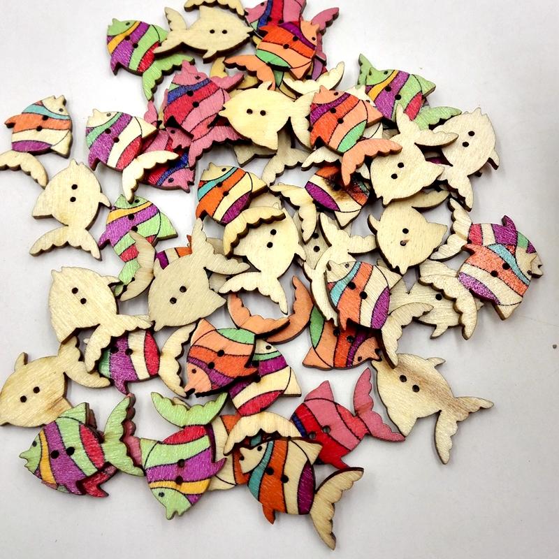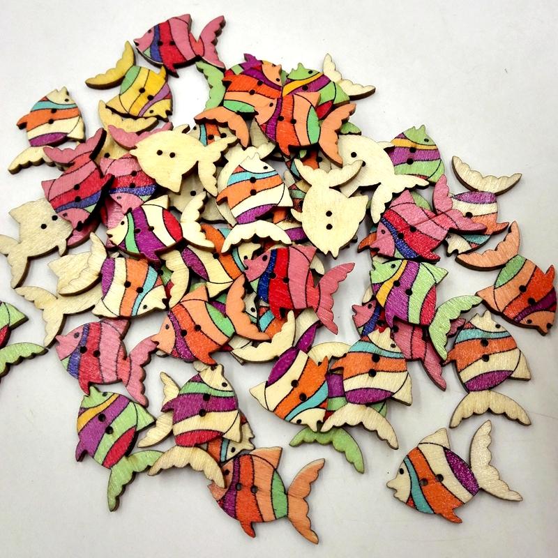 50pcs Colorful Fish Wooden Buttons Embellishment Scrapbooking Craft DIY