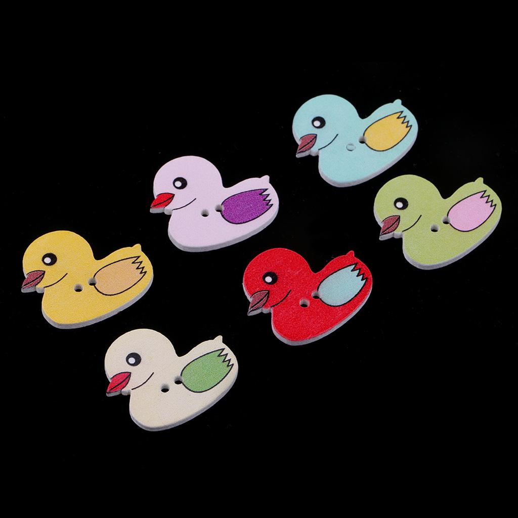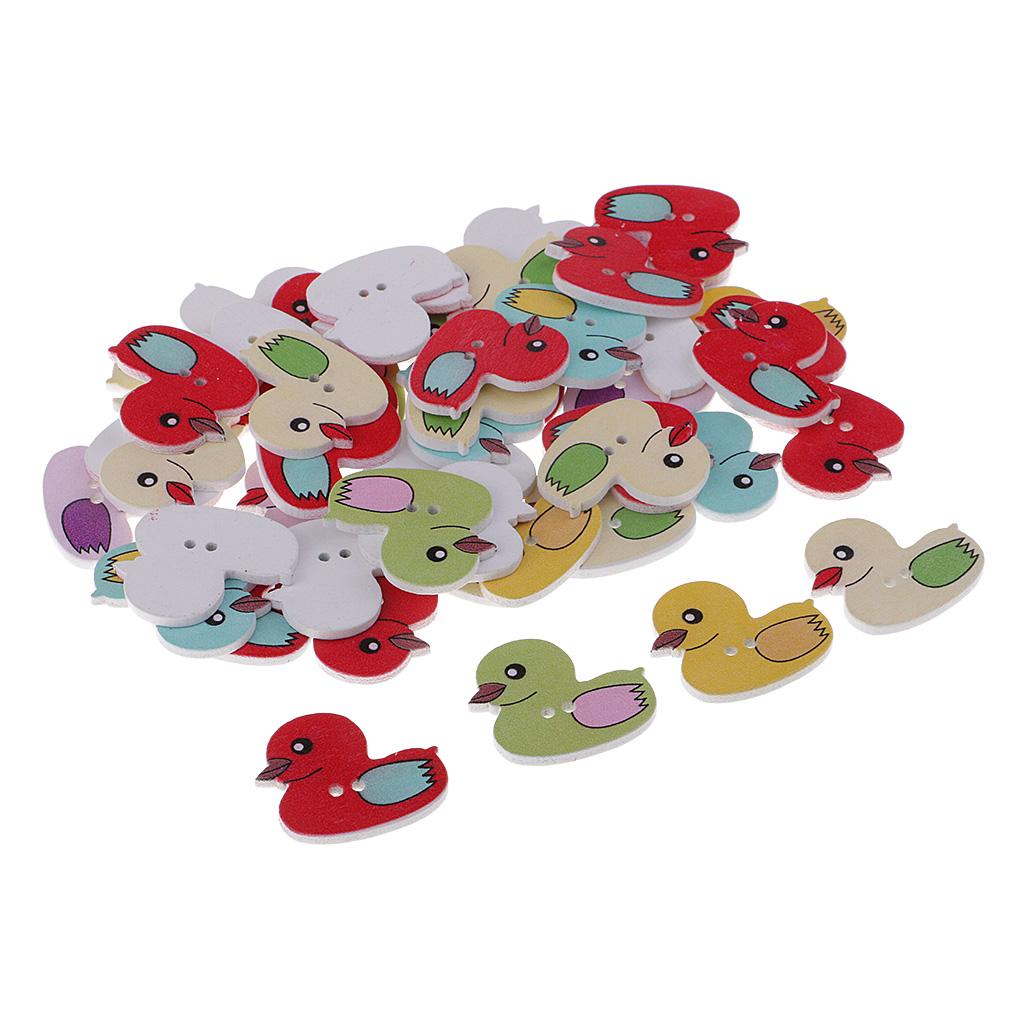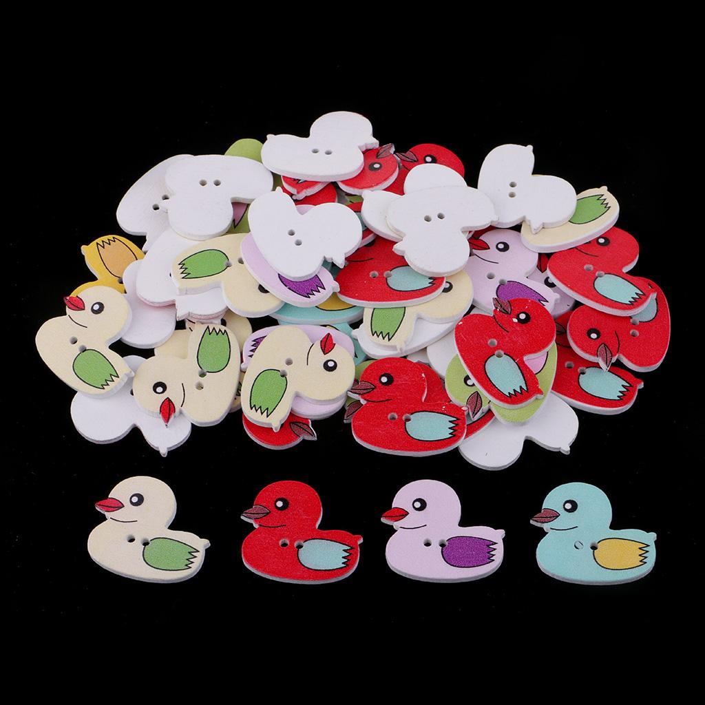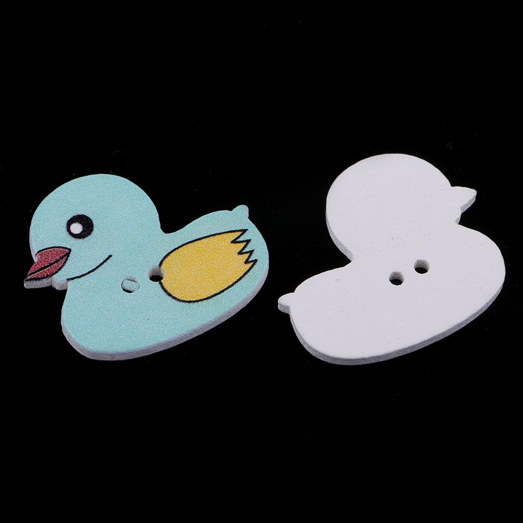 50 Pieces Cartoon Duck Wooden Buttons