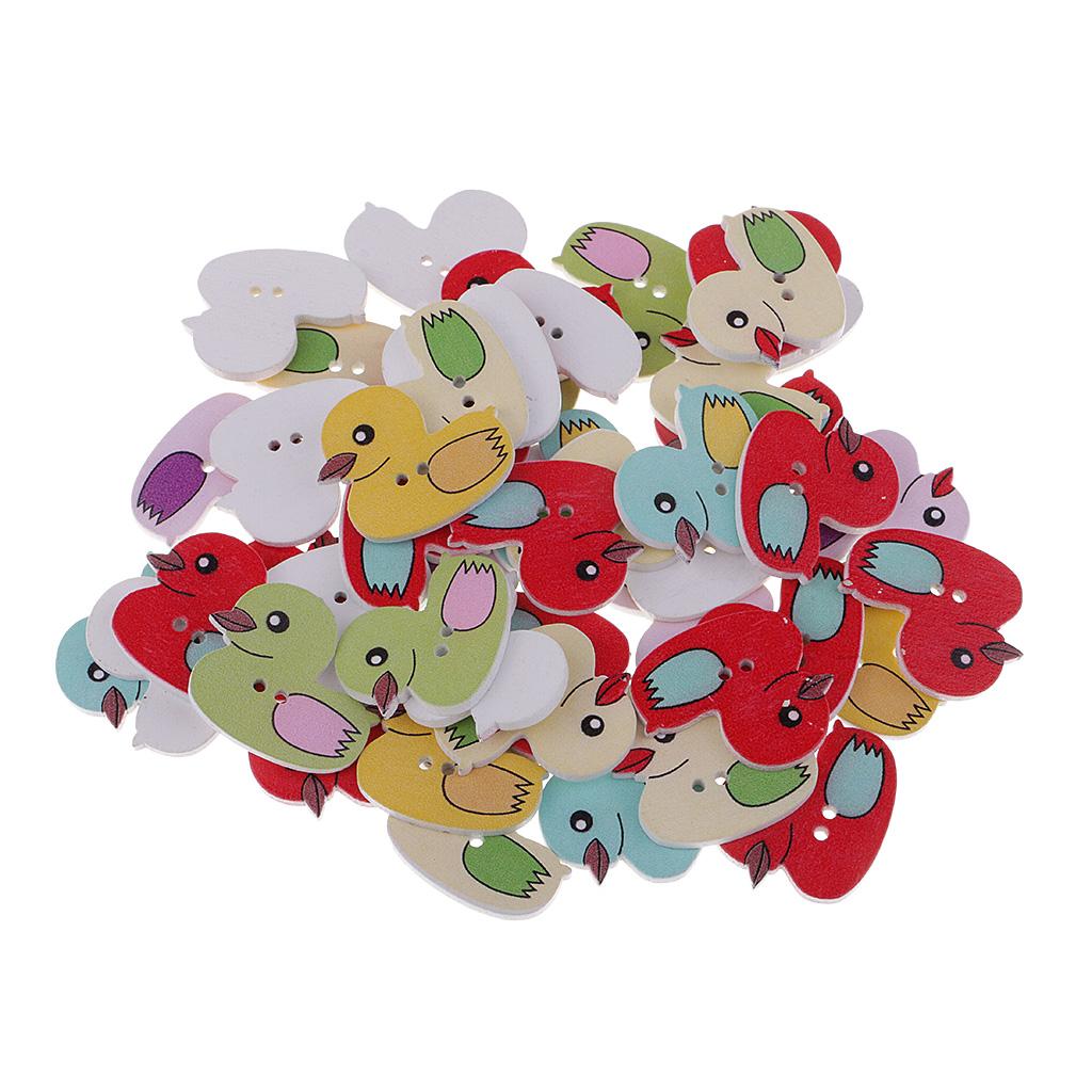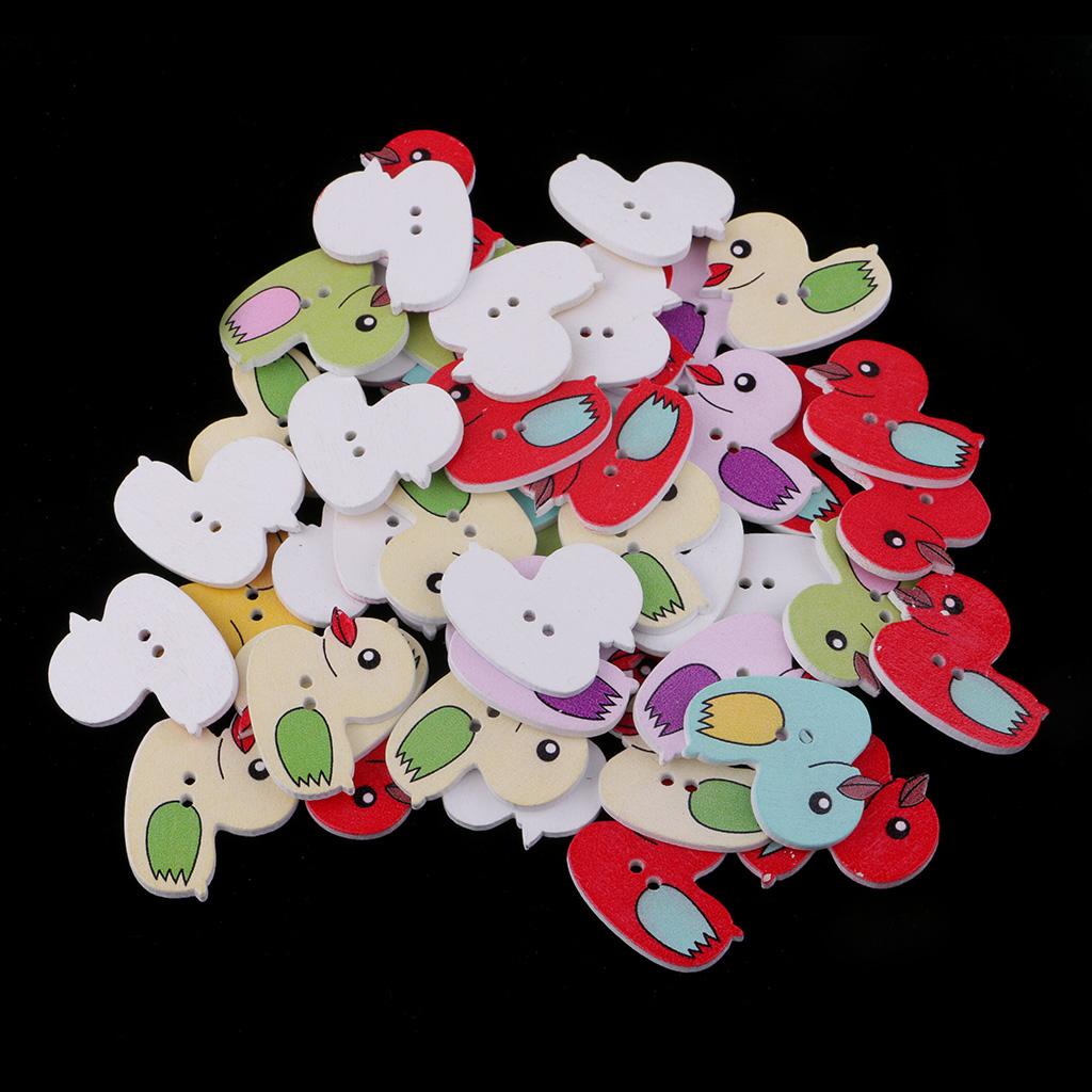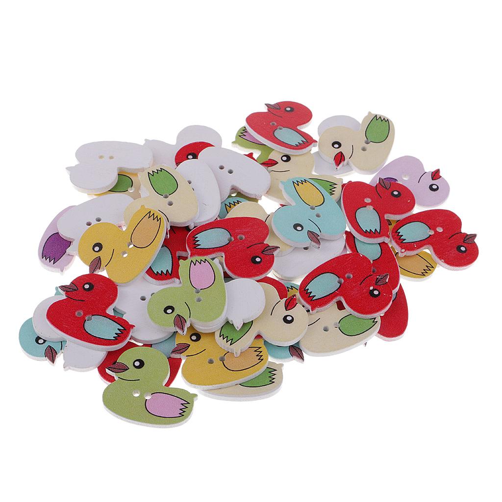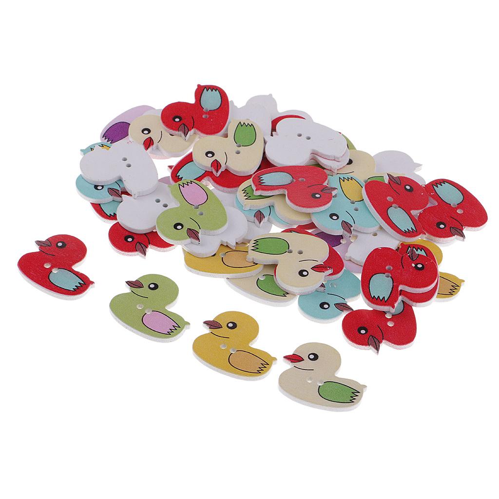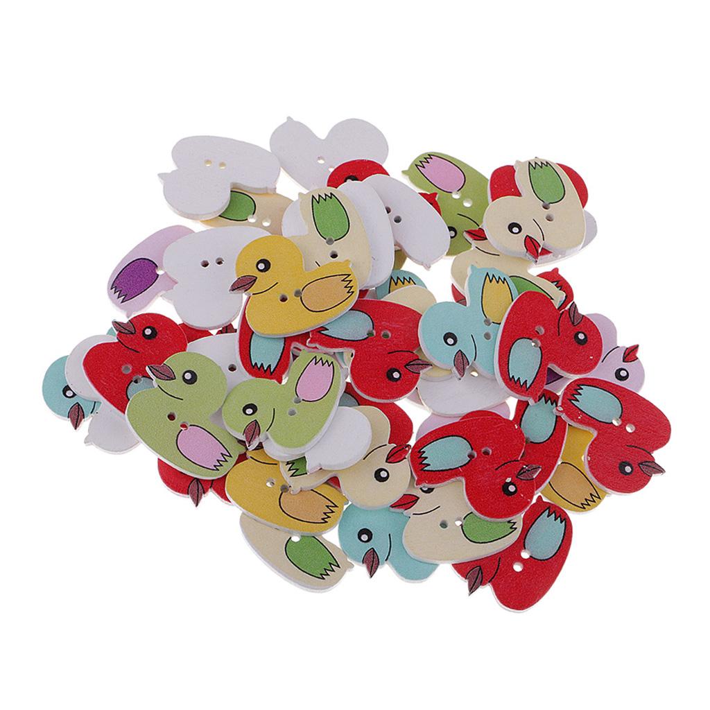 50 Pieces Cartoon Duck Wooden Buttons