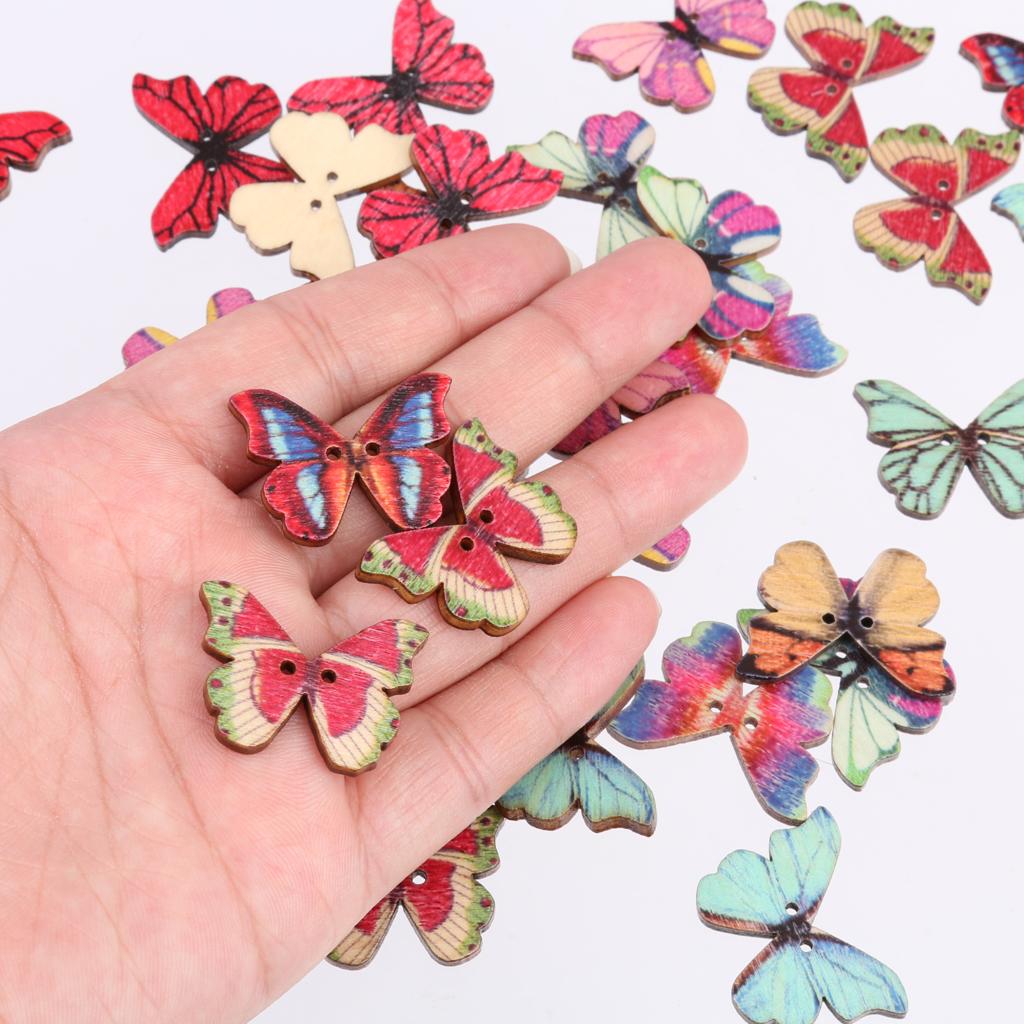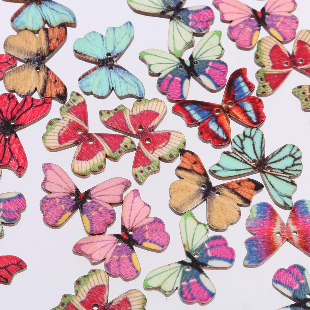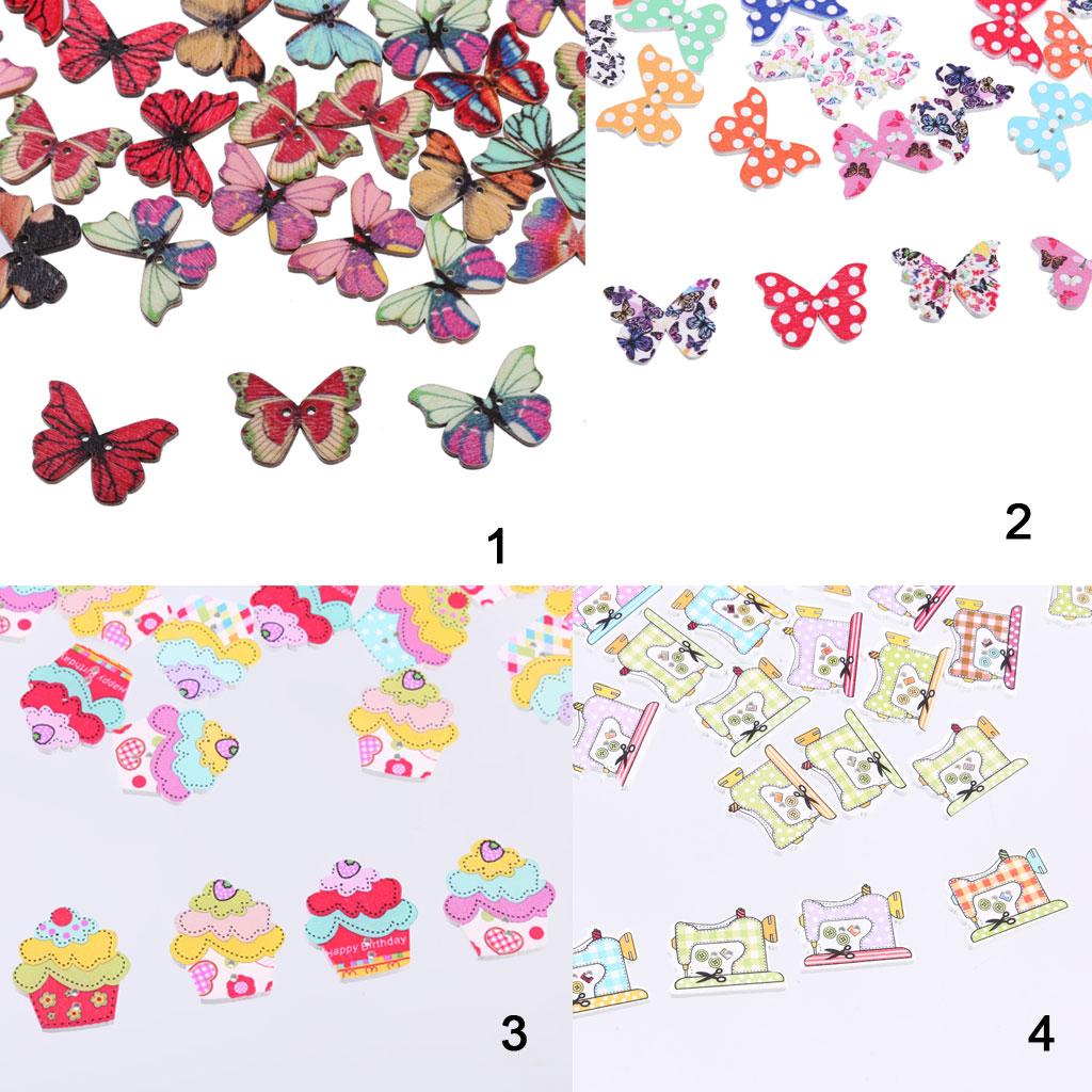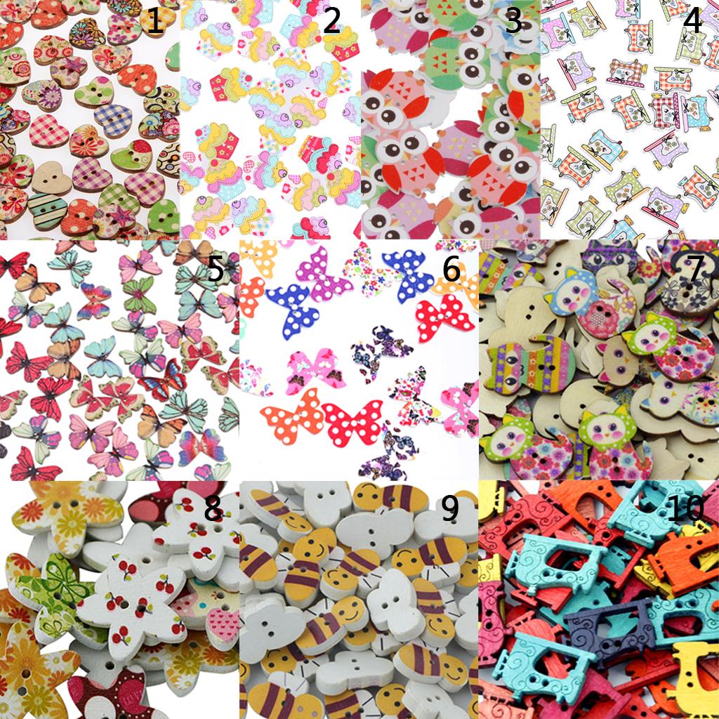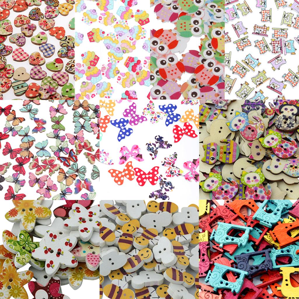 50pcs Mixed Shape Drawing Colored Wooden Buttons for Sewing DIY Craft