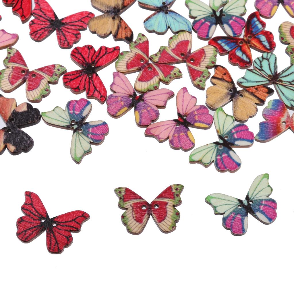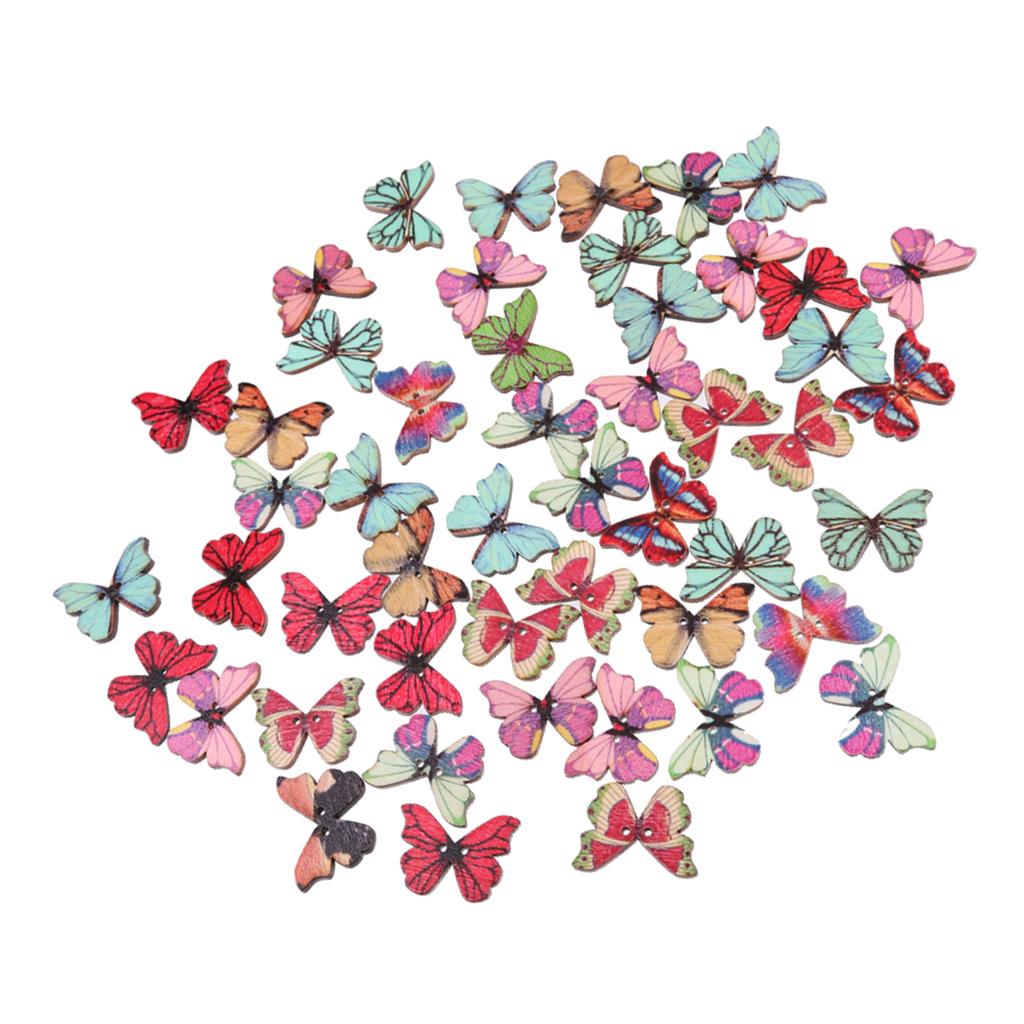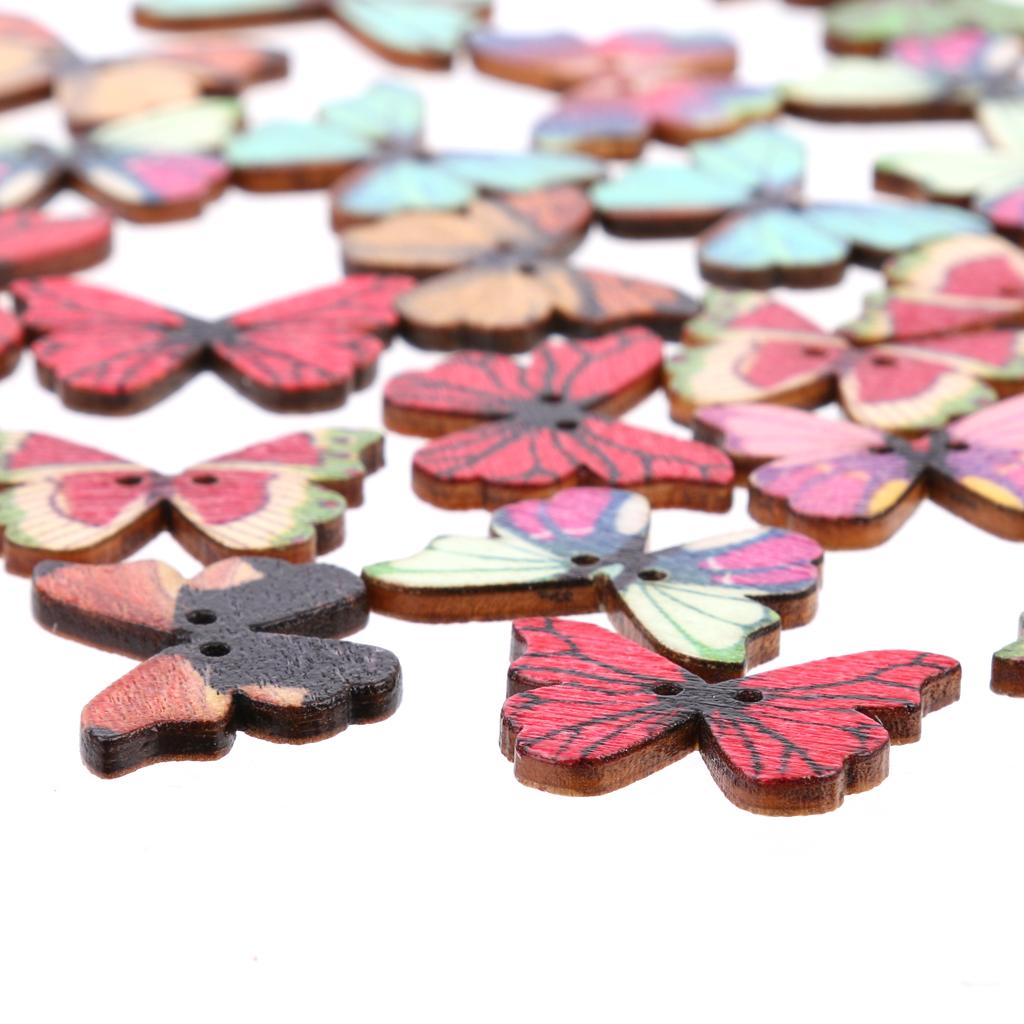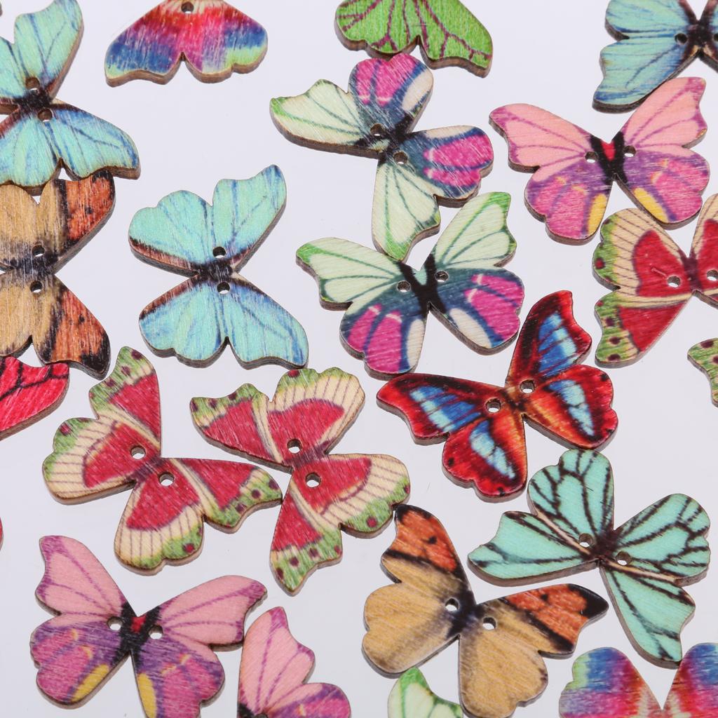50pcs Mixed Shape Drawing Colored Wooden Buttons for Sewing DIY Craft