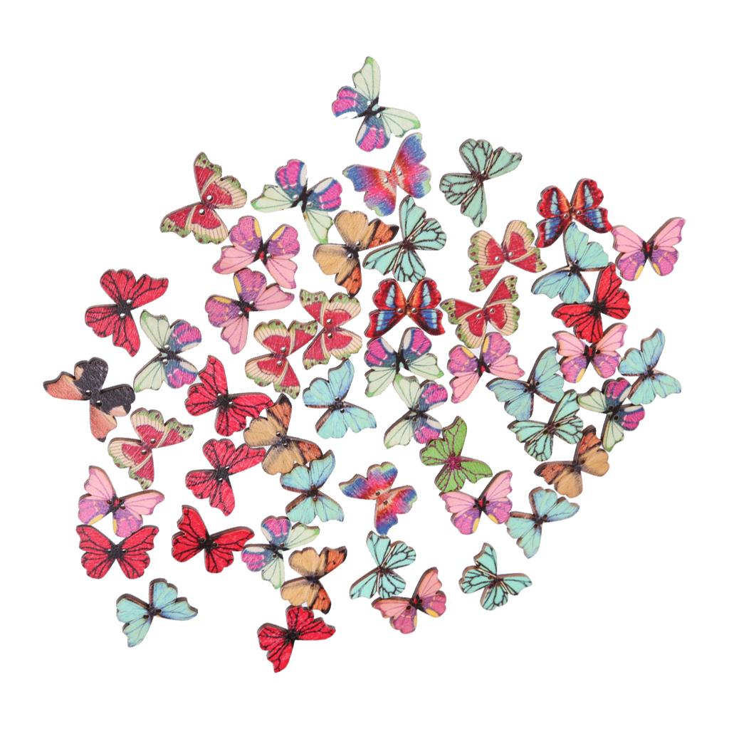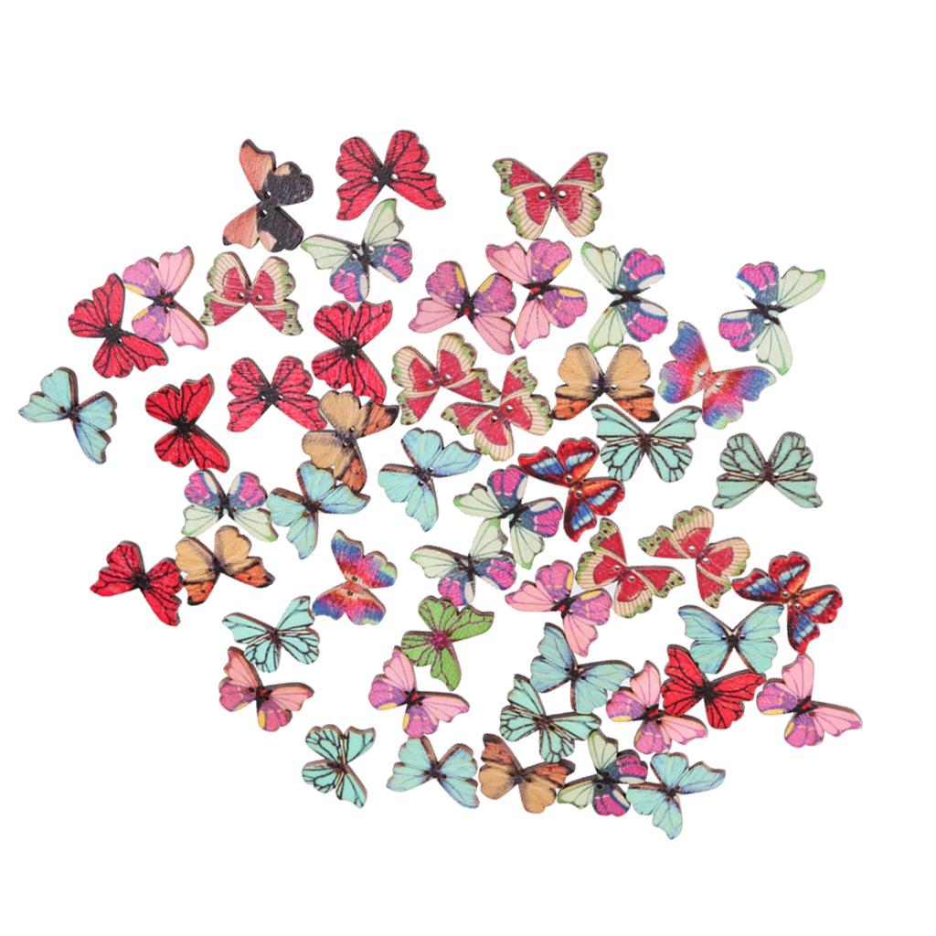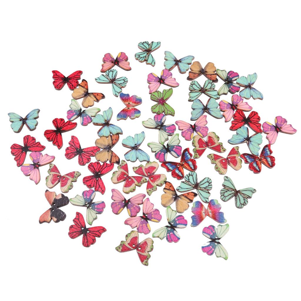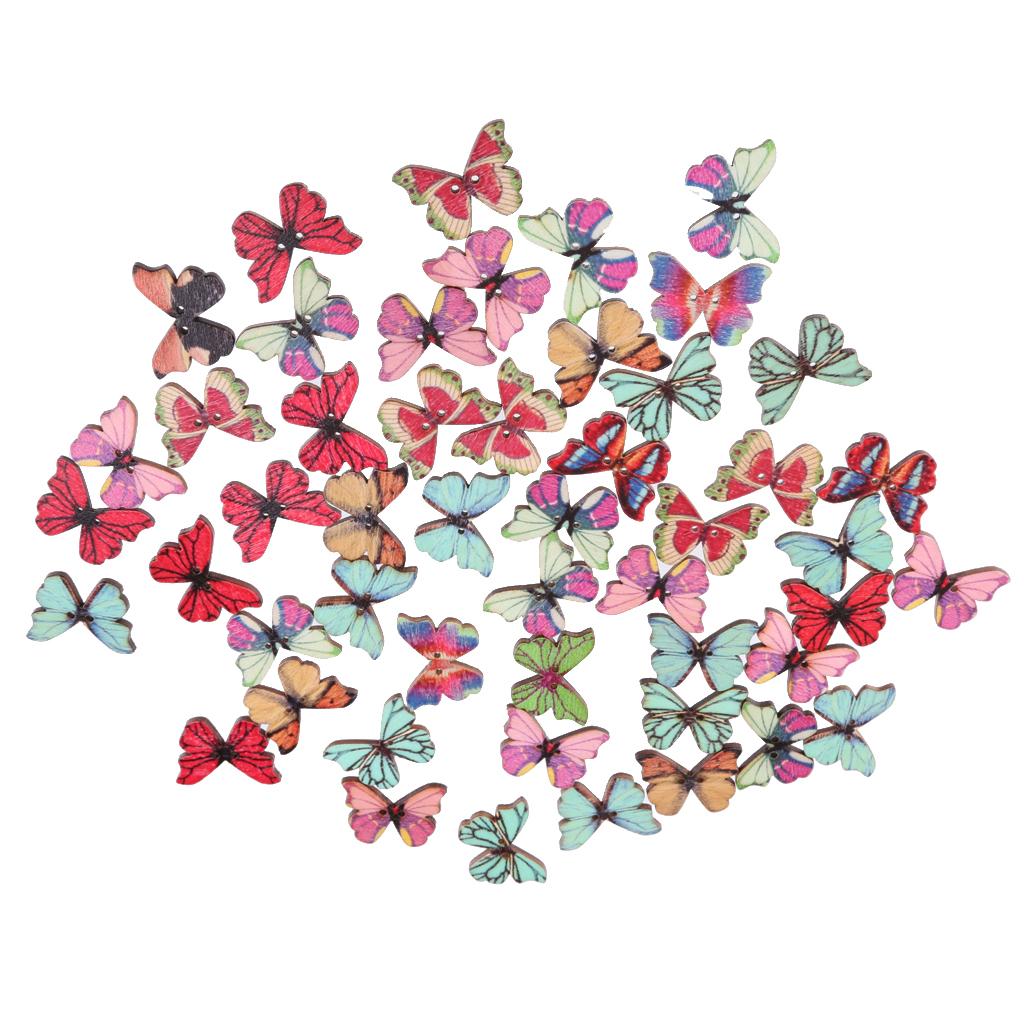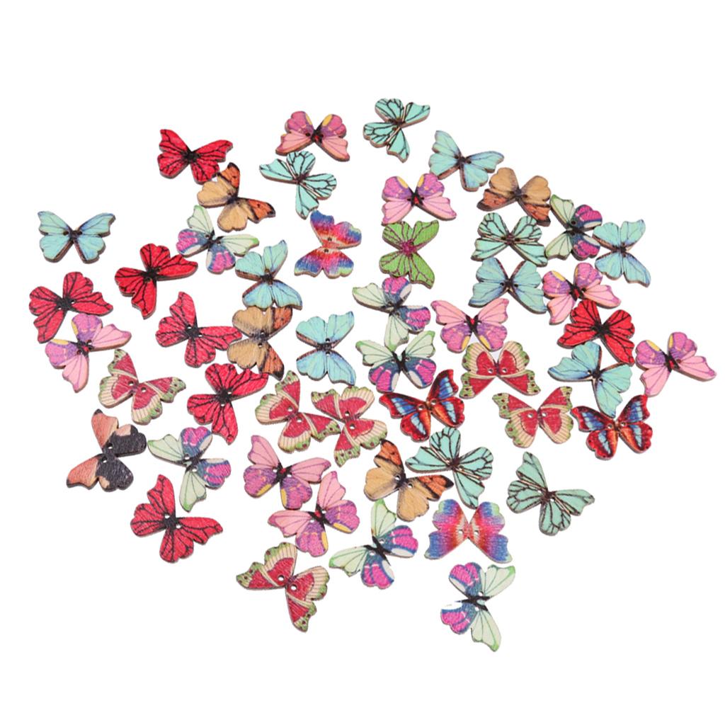 50pcs Mixed Shape Drawing Colored Wooden Buttons for Sewing DIY Craft