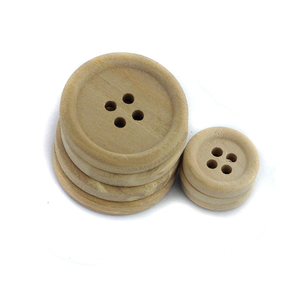 50Pcs Mixed Size Natural Wooden Round Buttons for Sewing Crafting