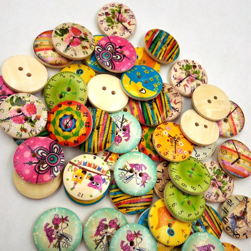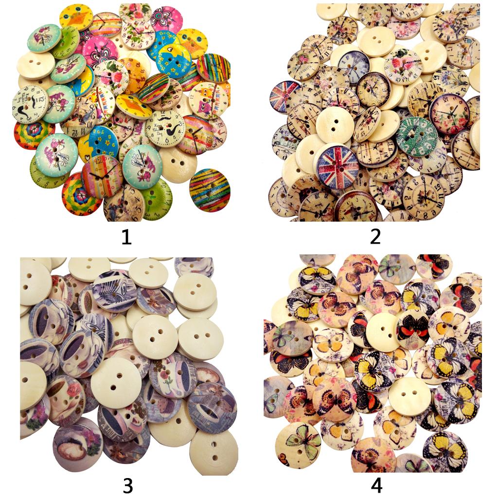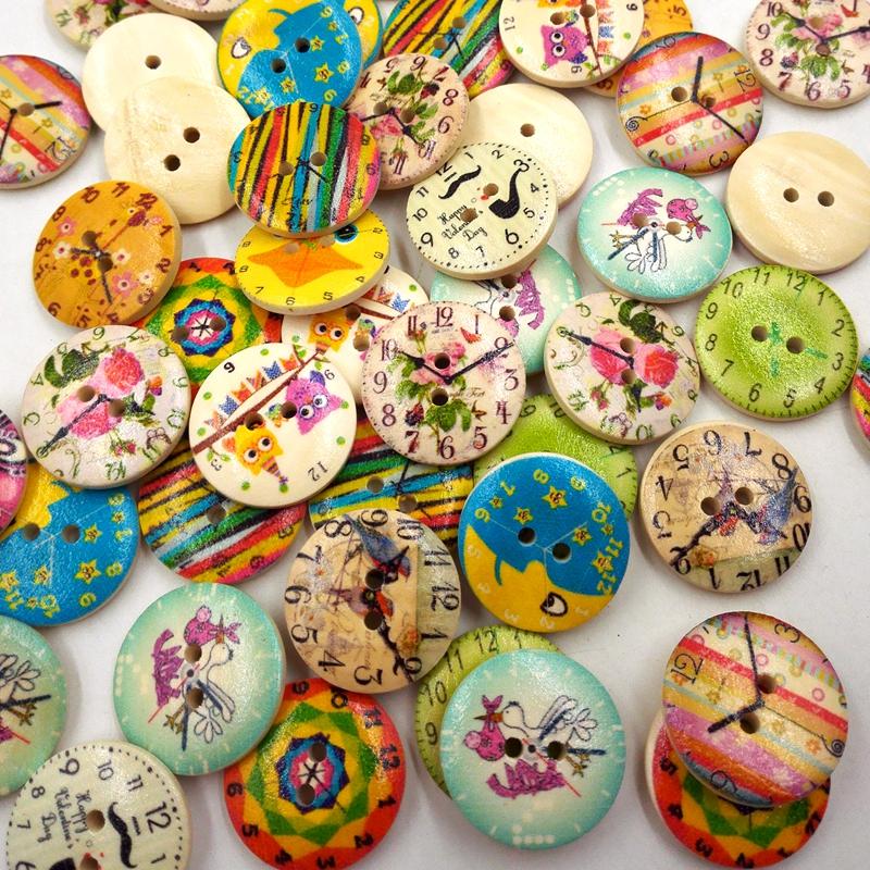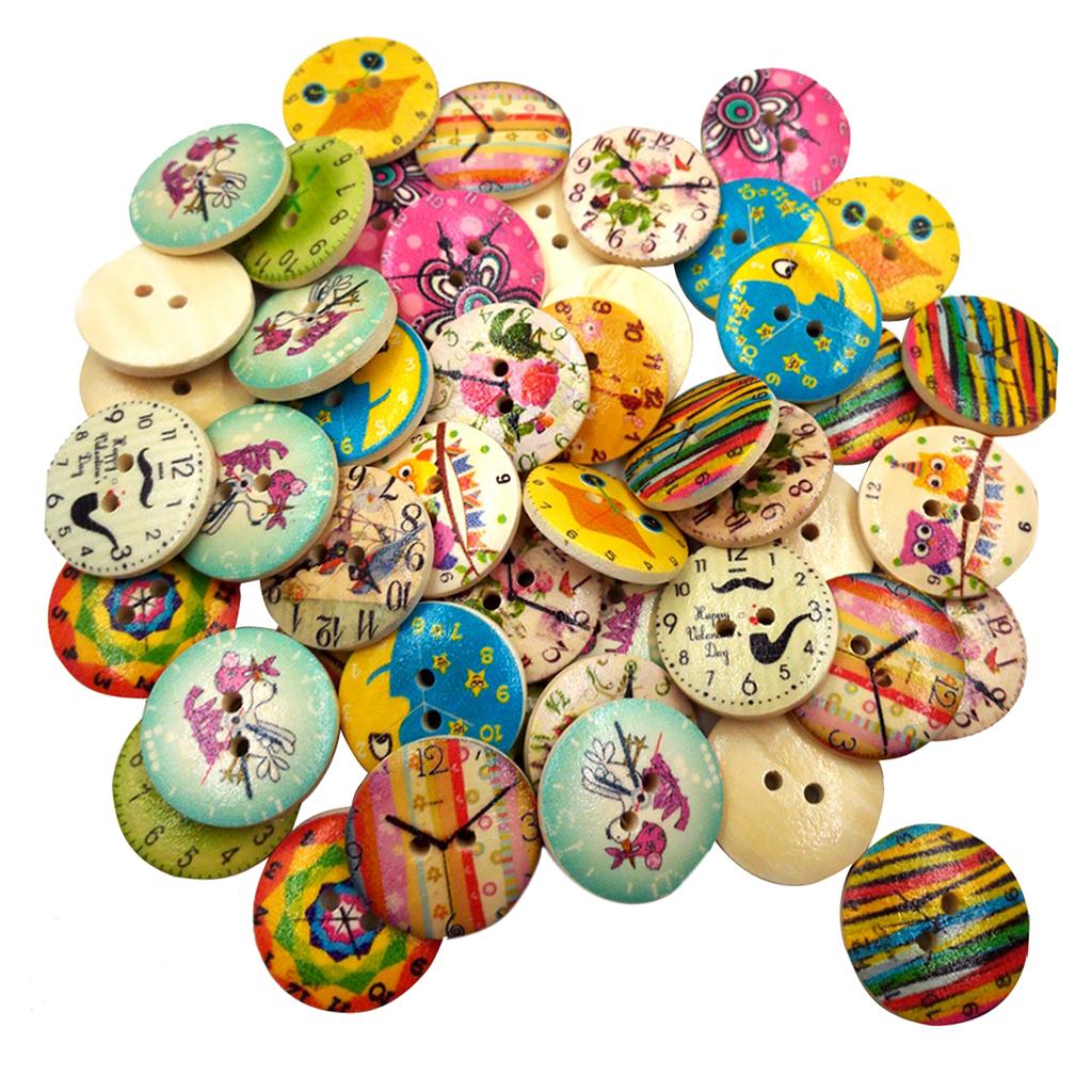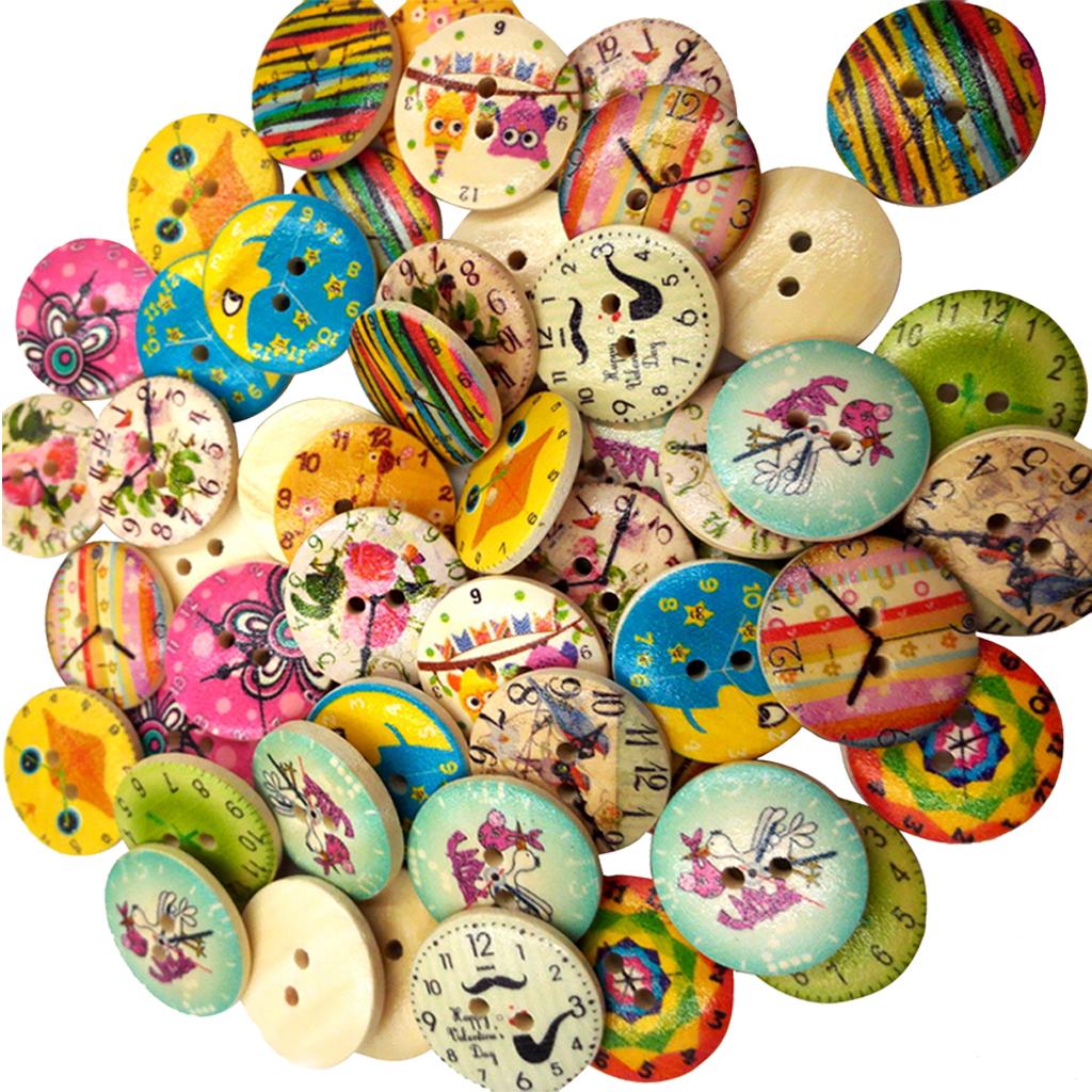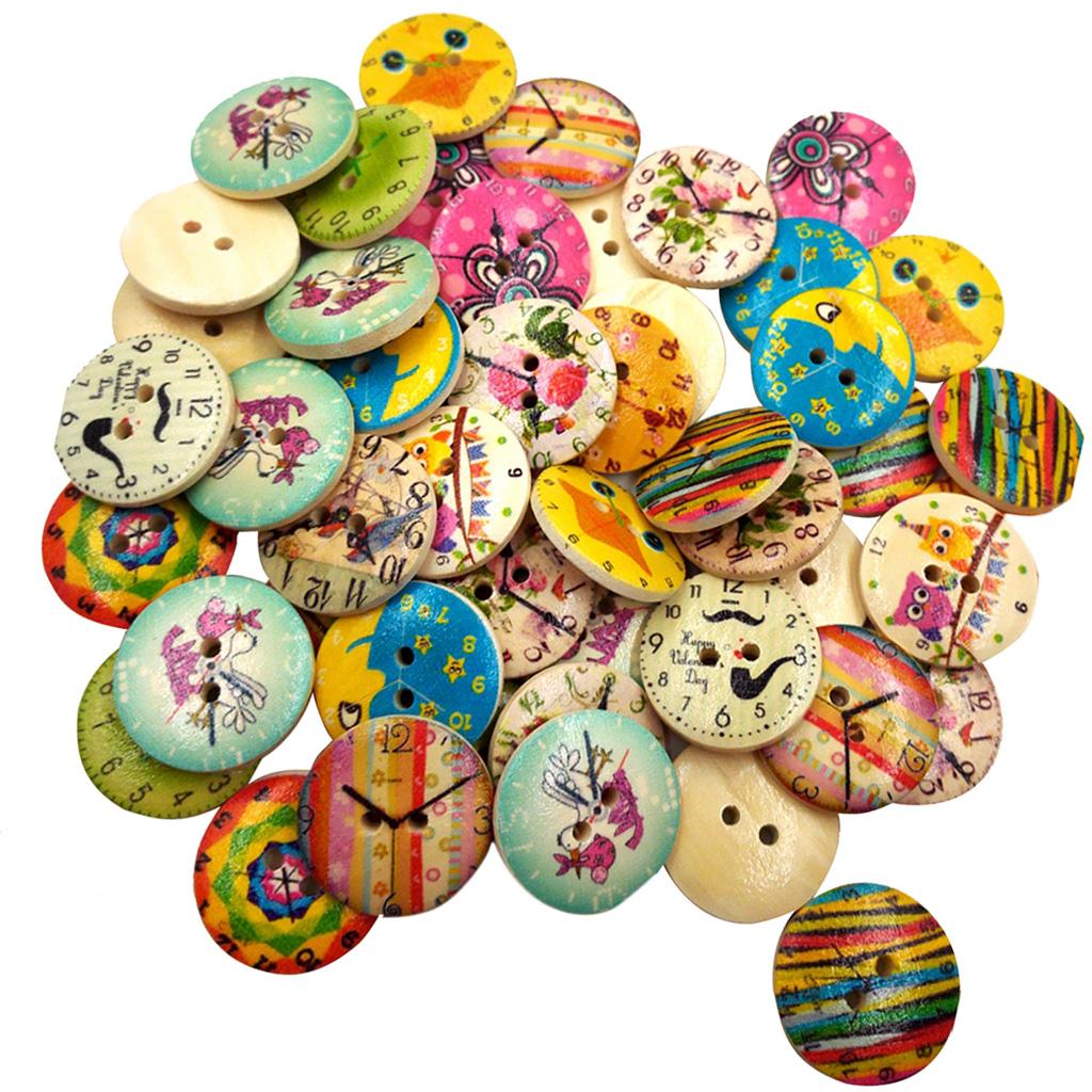 50Pcs Printed Round 2 Holes Wooden Buttons for Sewing Crafting 20mm