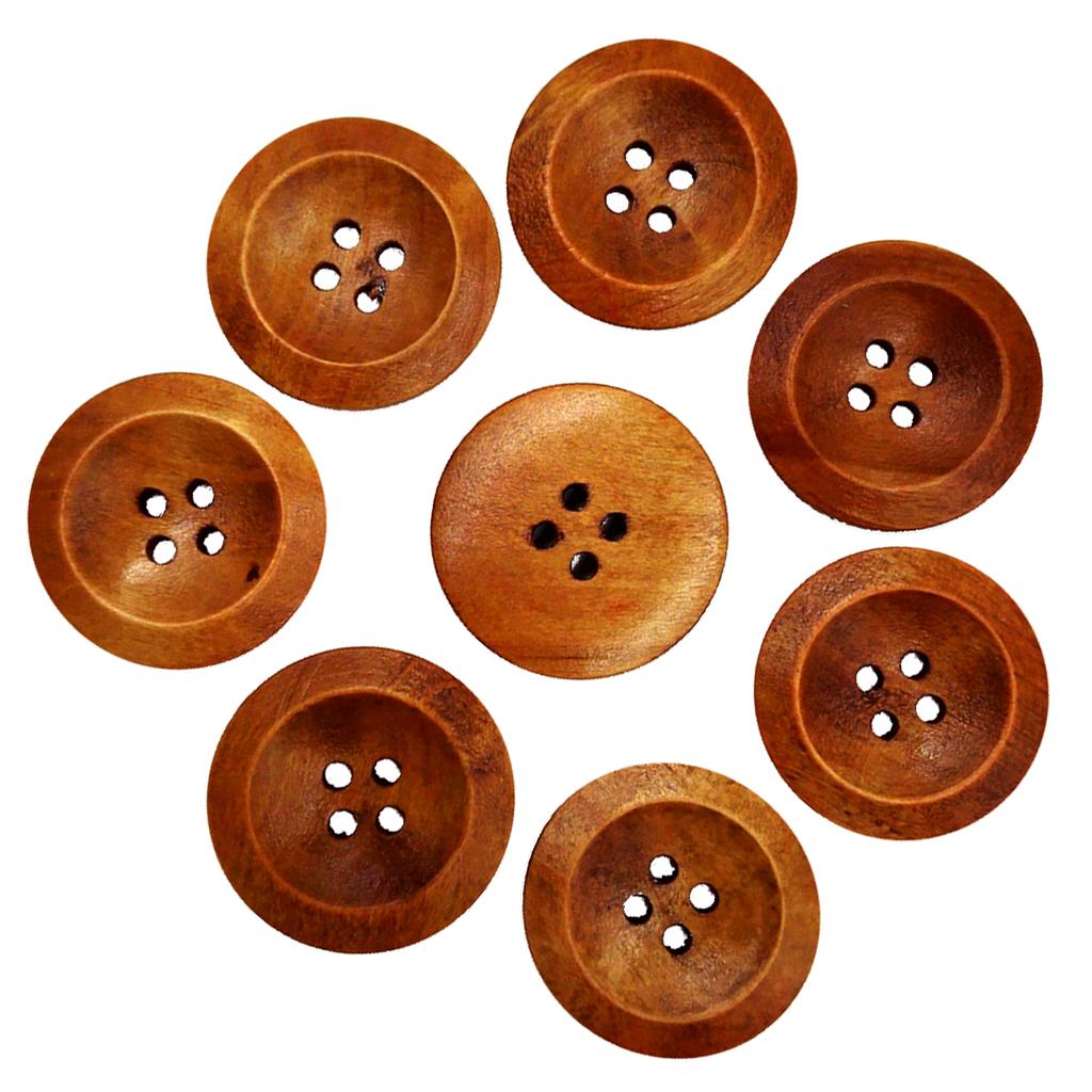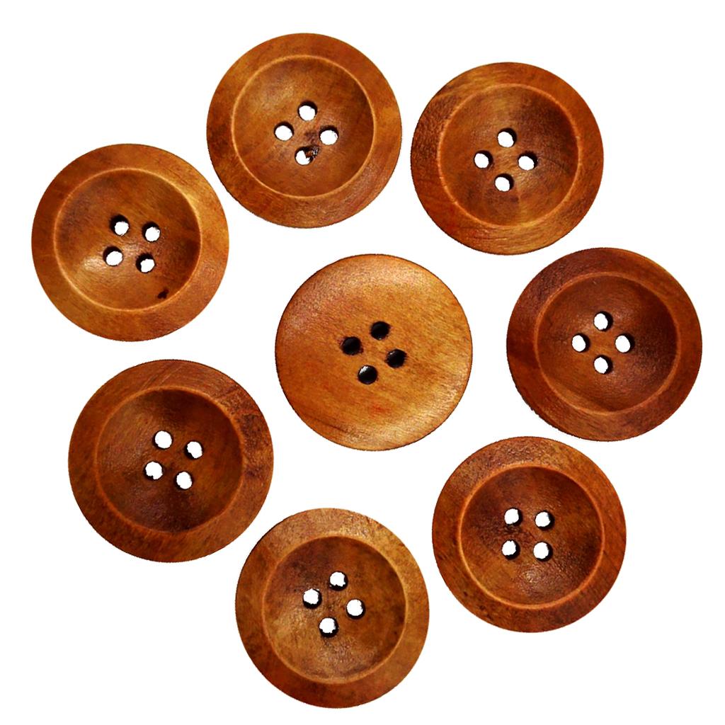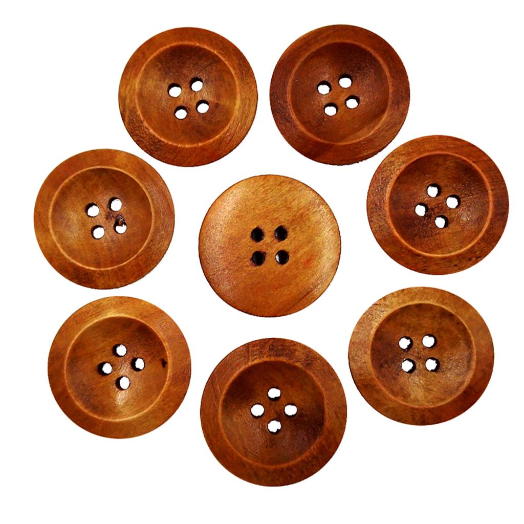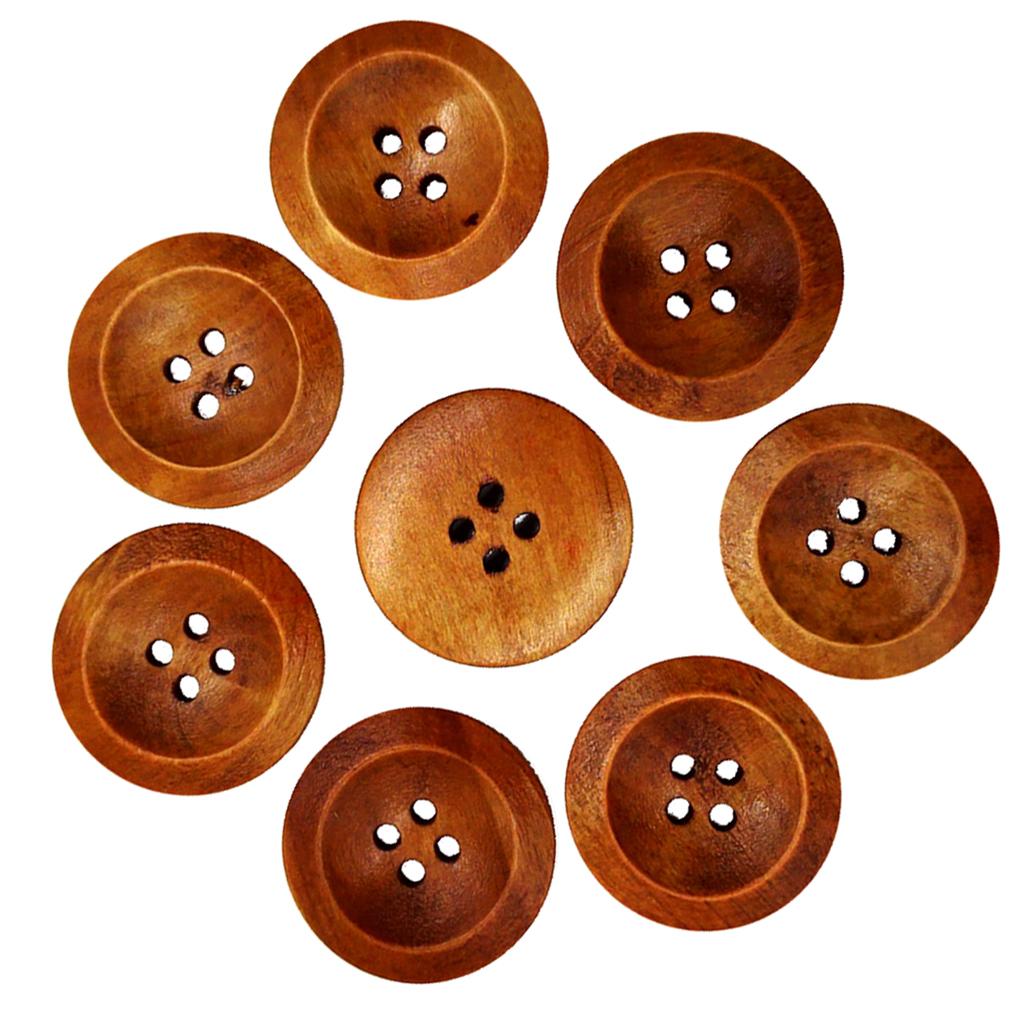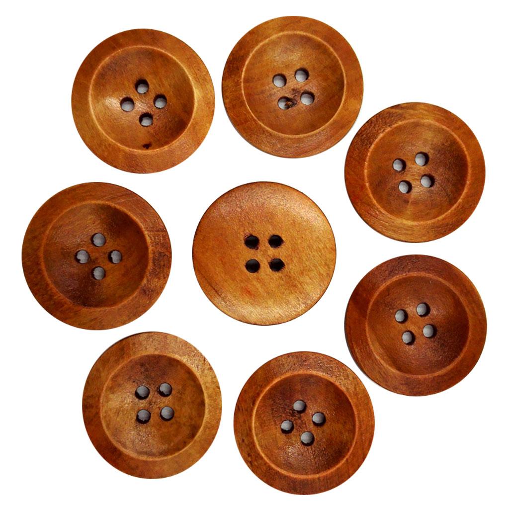 50Pcs Wooden Round Buttons with 4 Holes Sewing Craft Coffee