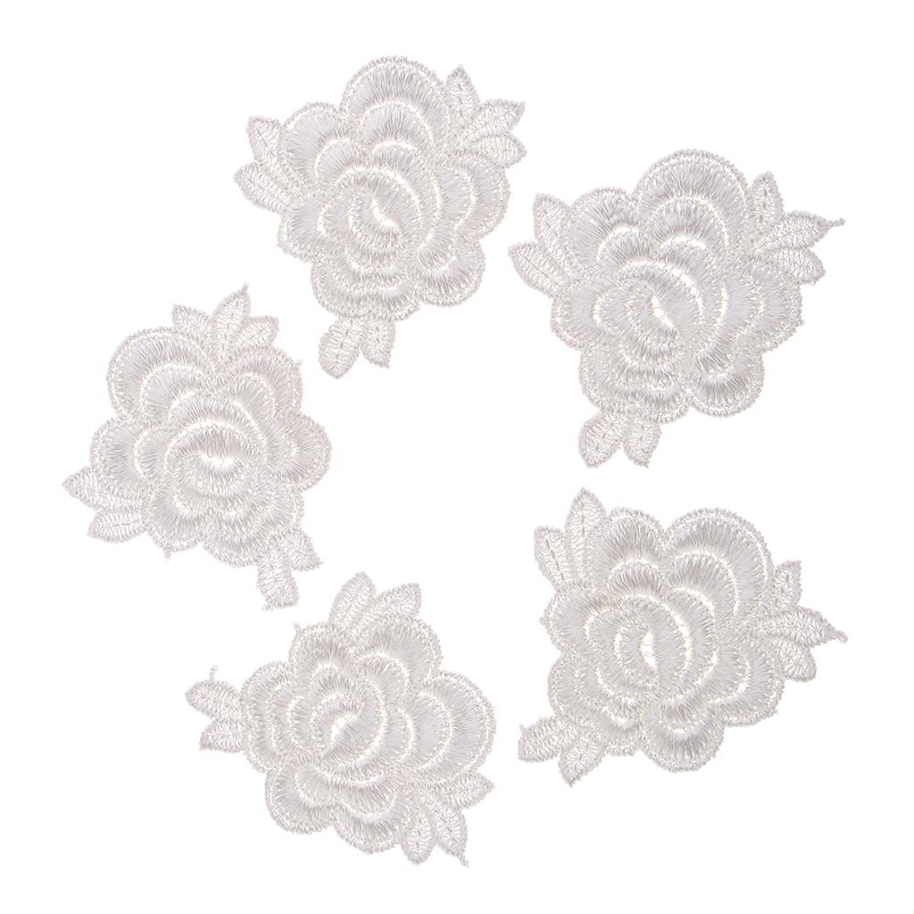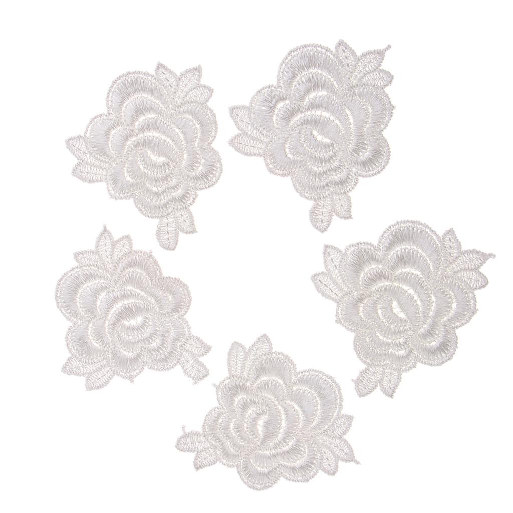 5pcs Elegant Lace Rose Flower DIY Sew Stickers Embroidery Patches Cloth Repair The Hole Stick White Flower