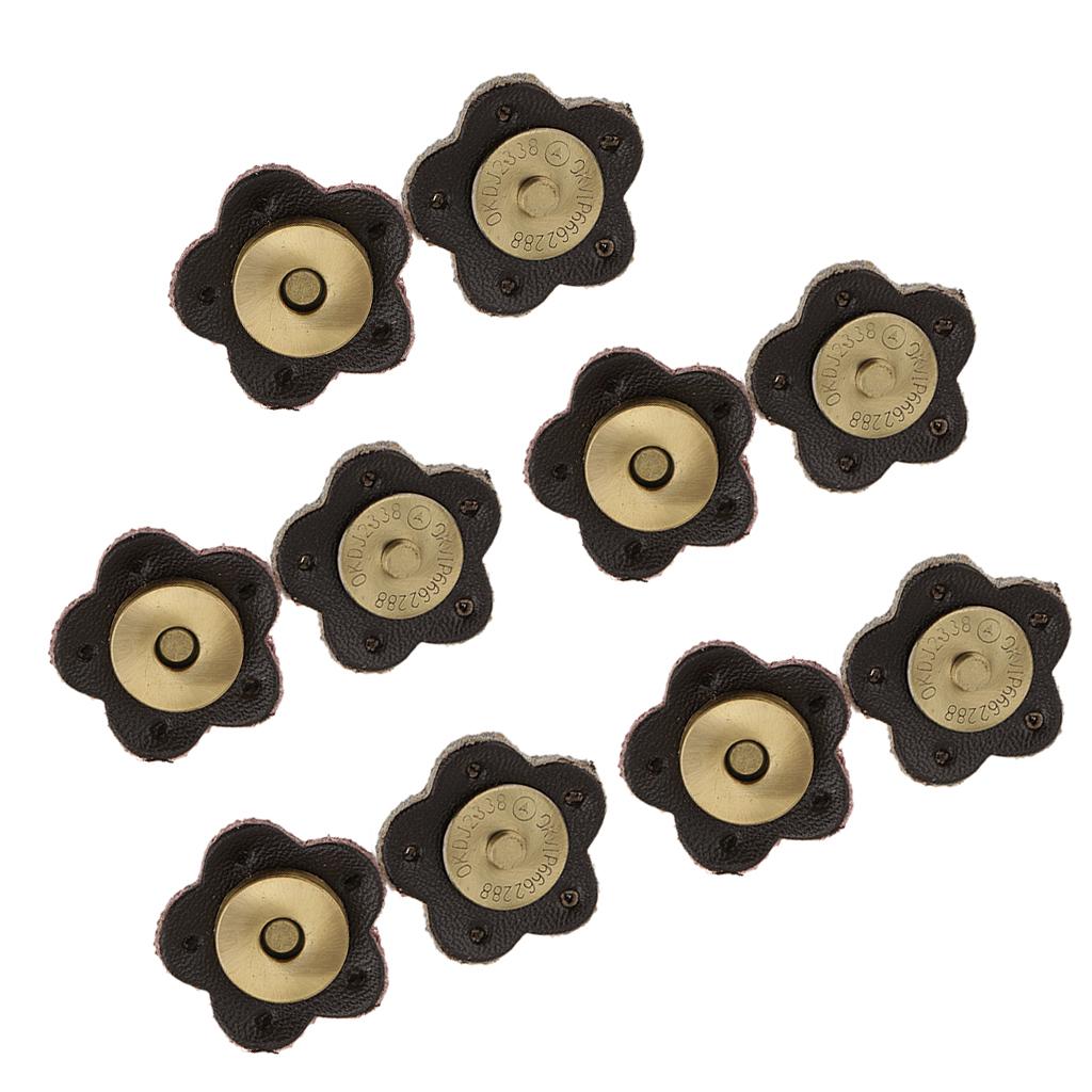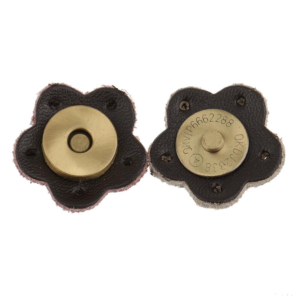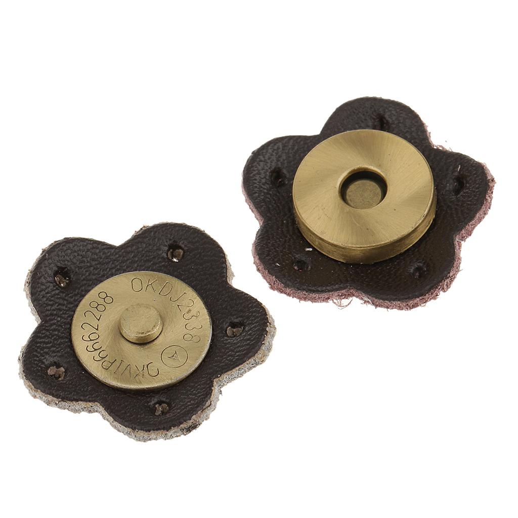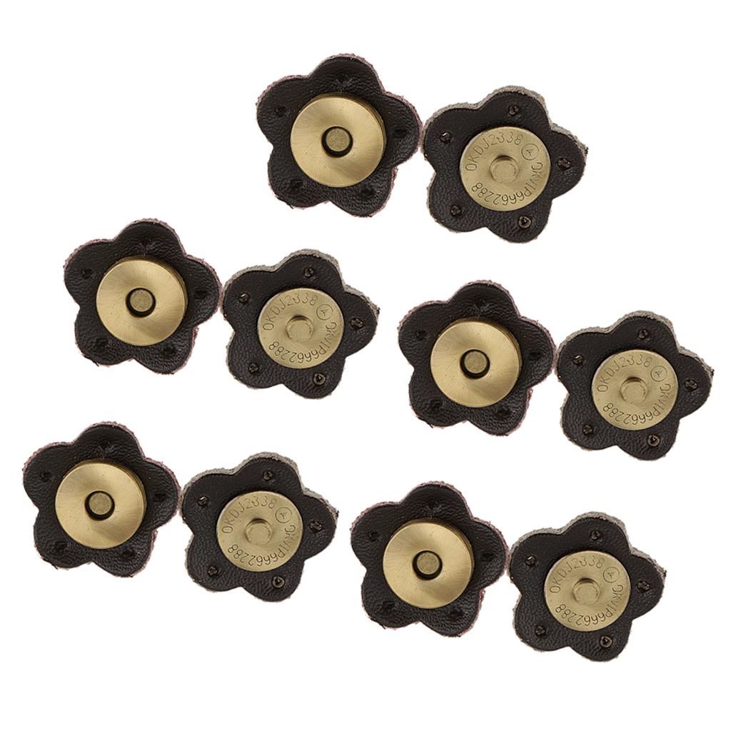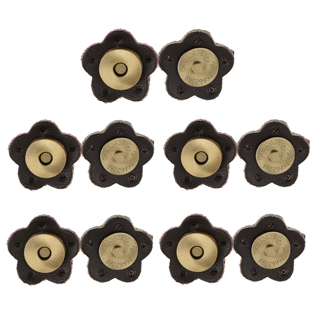 5Pieces Set Flower Leather Magnetic Snap Buckles Bag Fastener Sew DIY Coffee