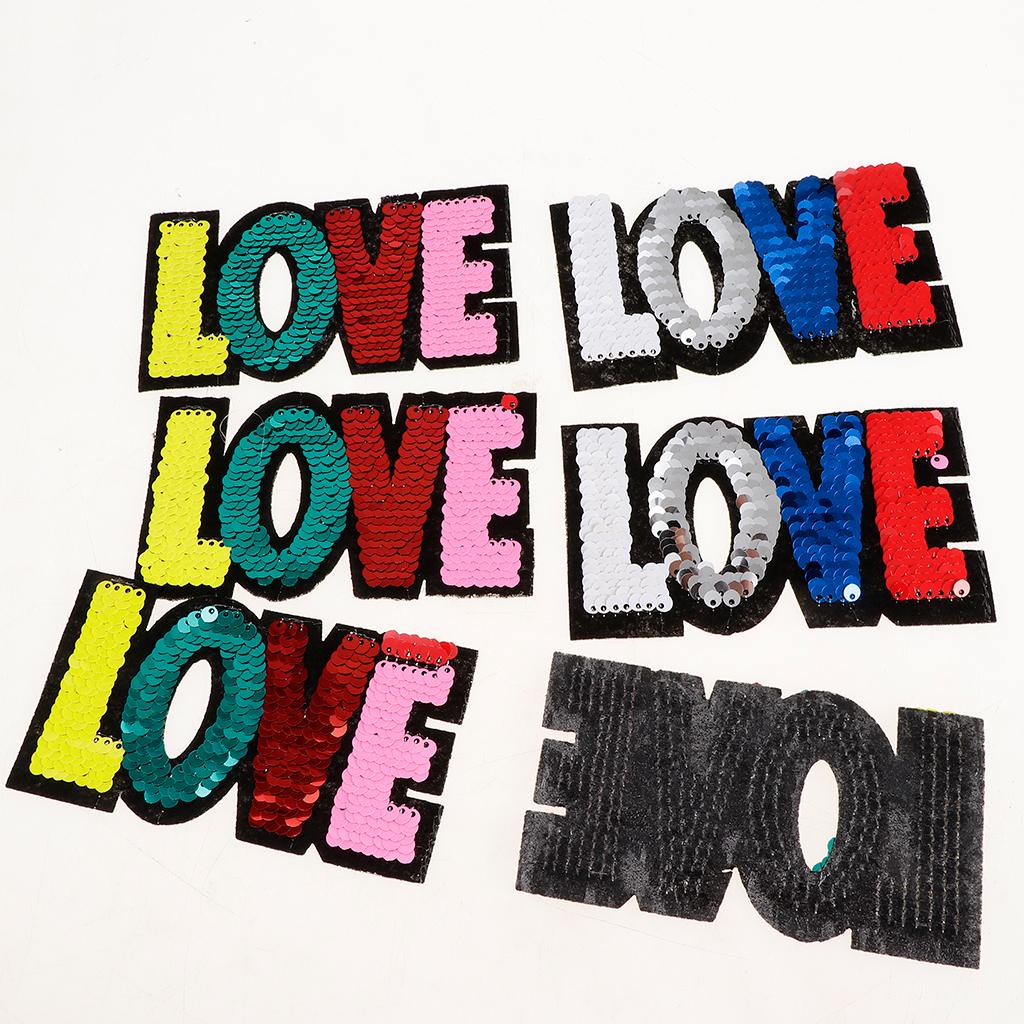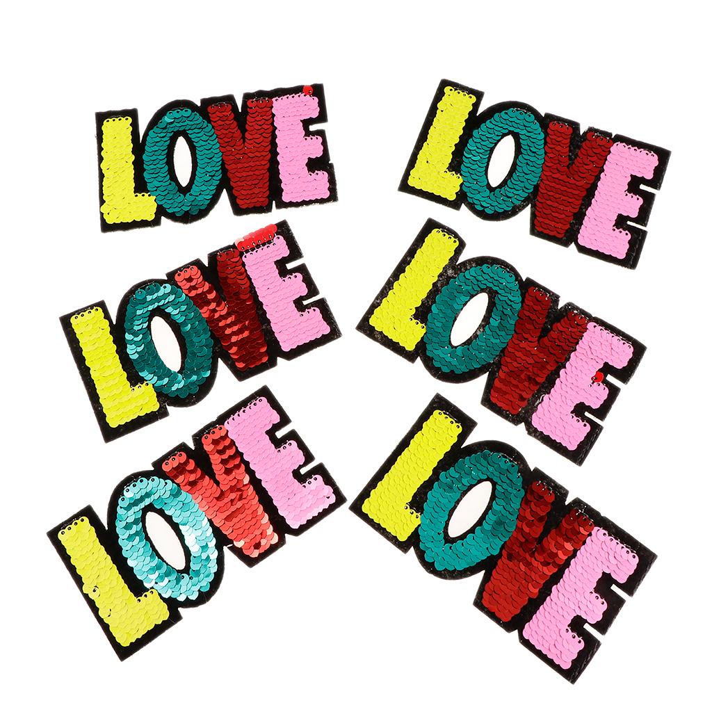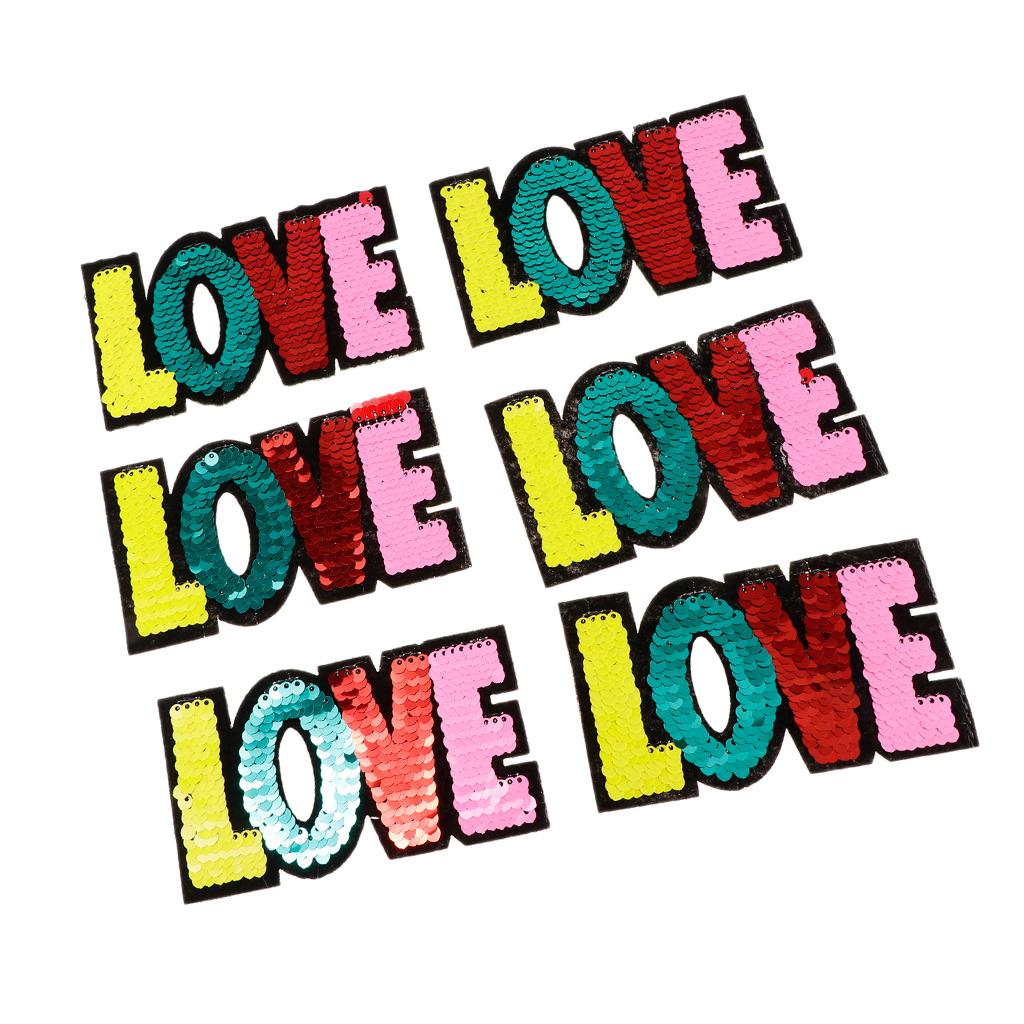 6pcs Colorful LOVE Sequins Embroidery Patch Clothes Applique Sticker DIY