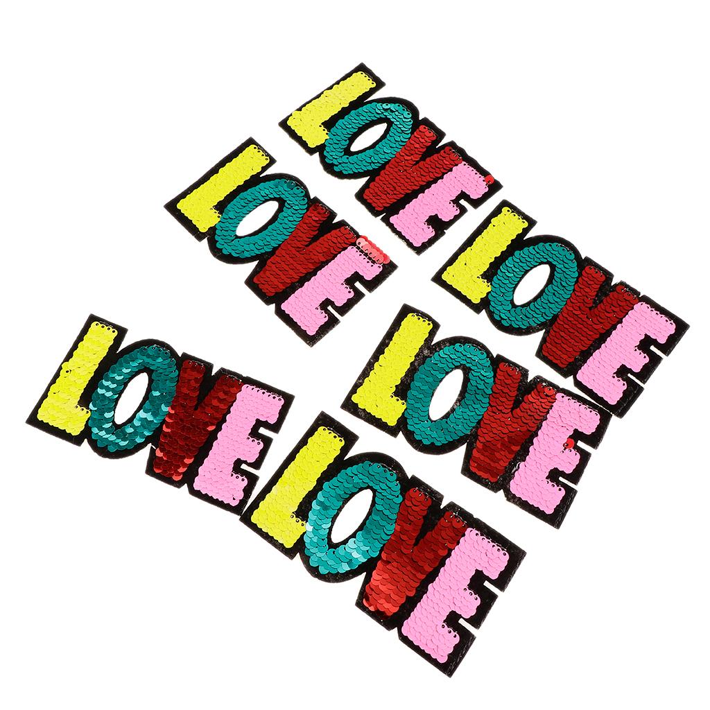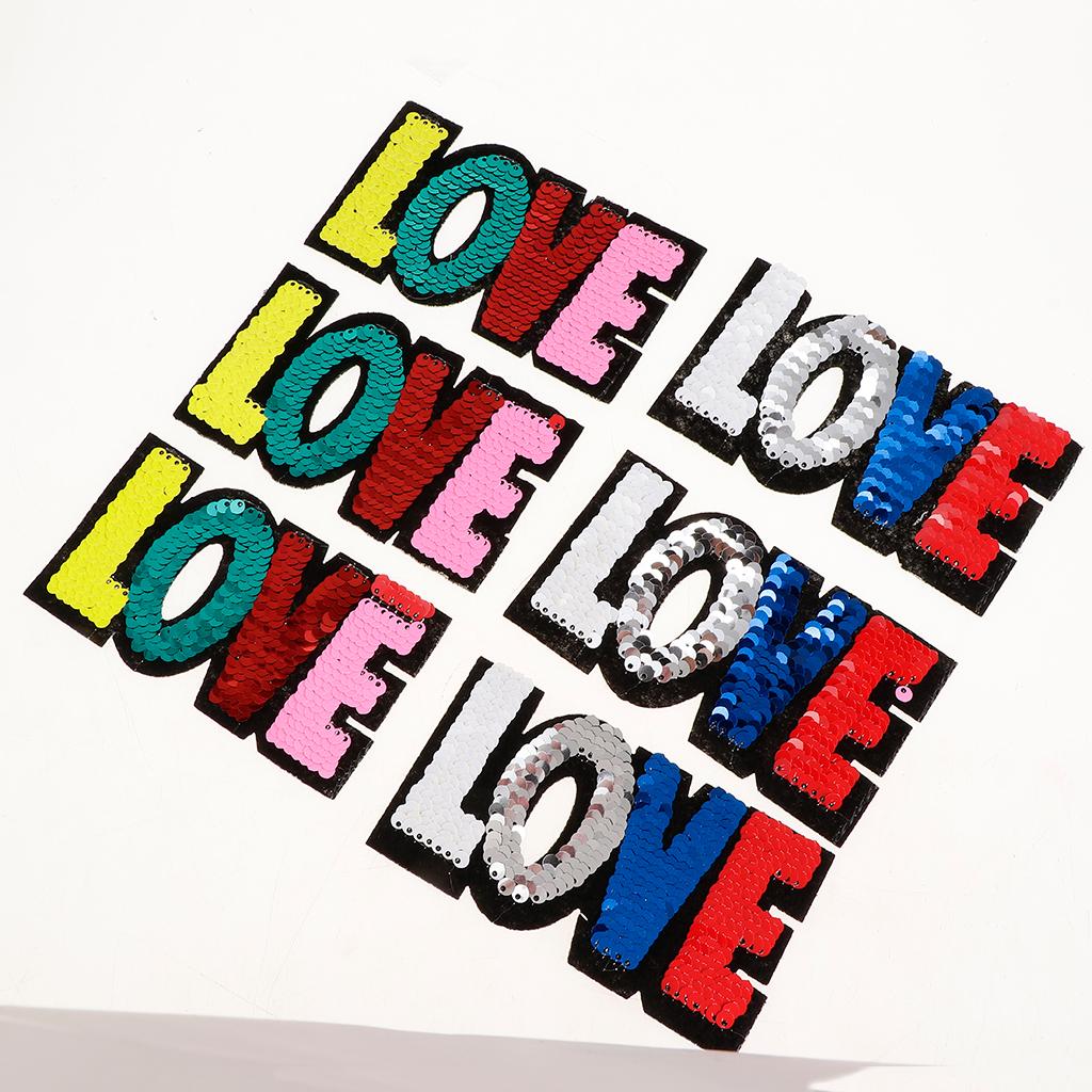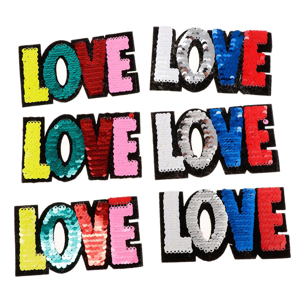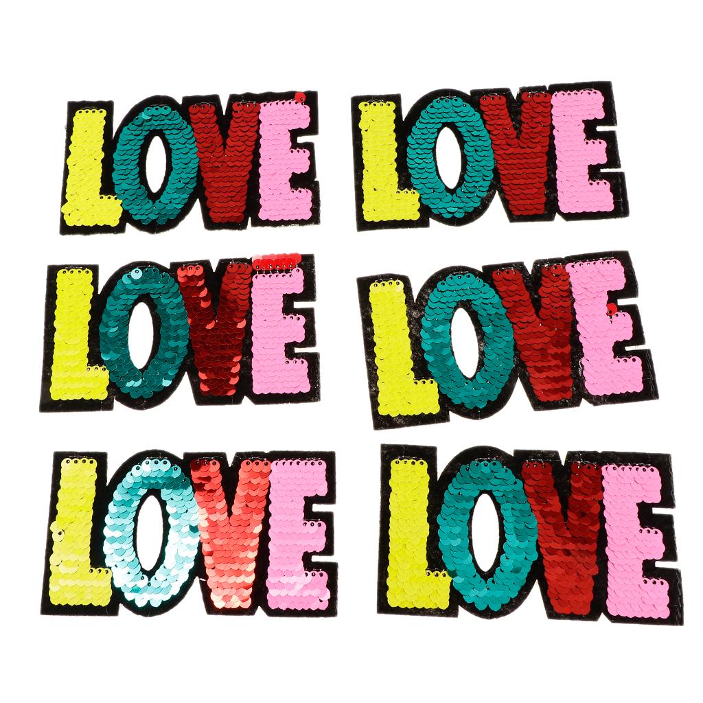 6pcs Colorful LOVE Sequins Embroidery Patch Clothes Applique Sticker DIY