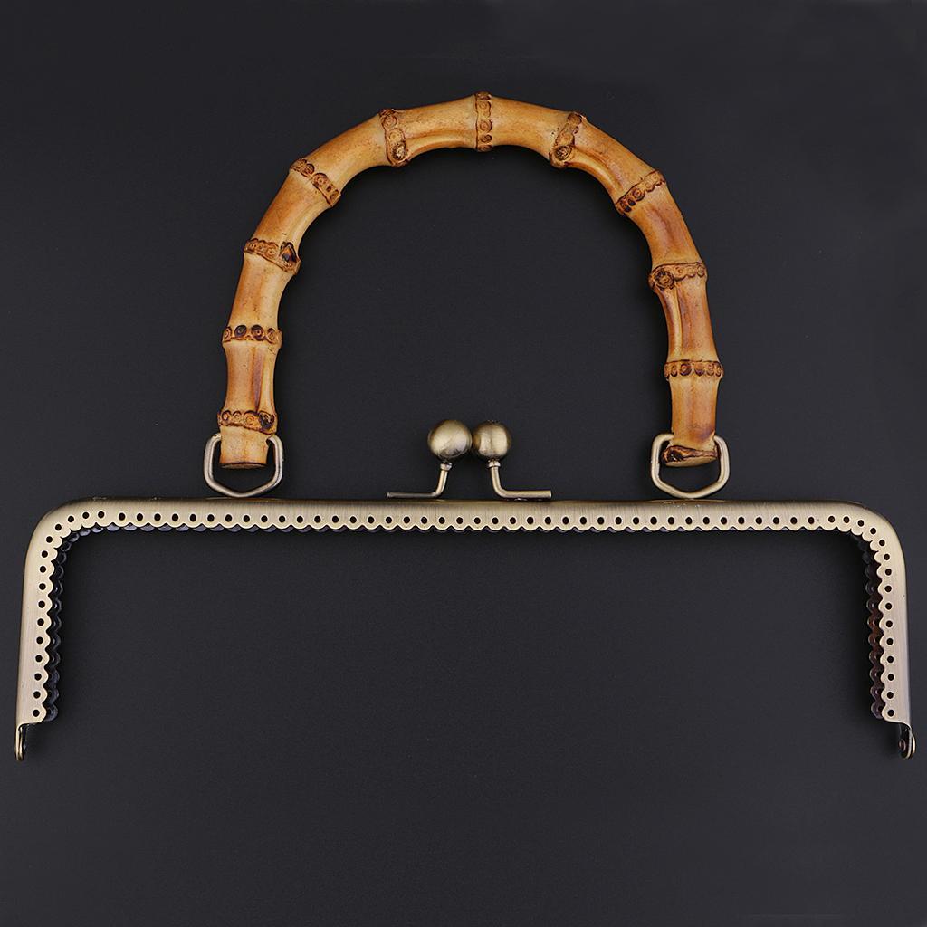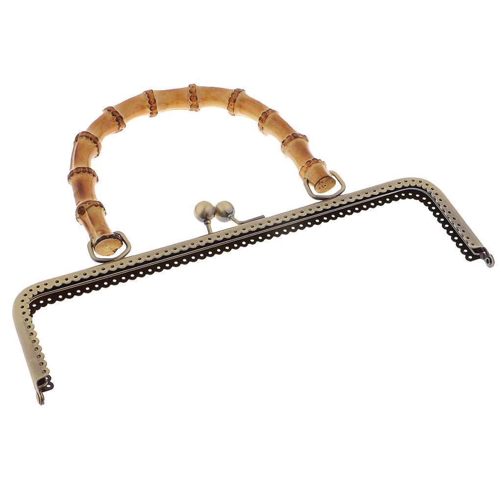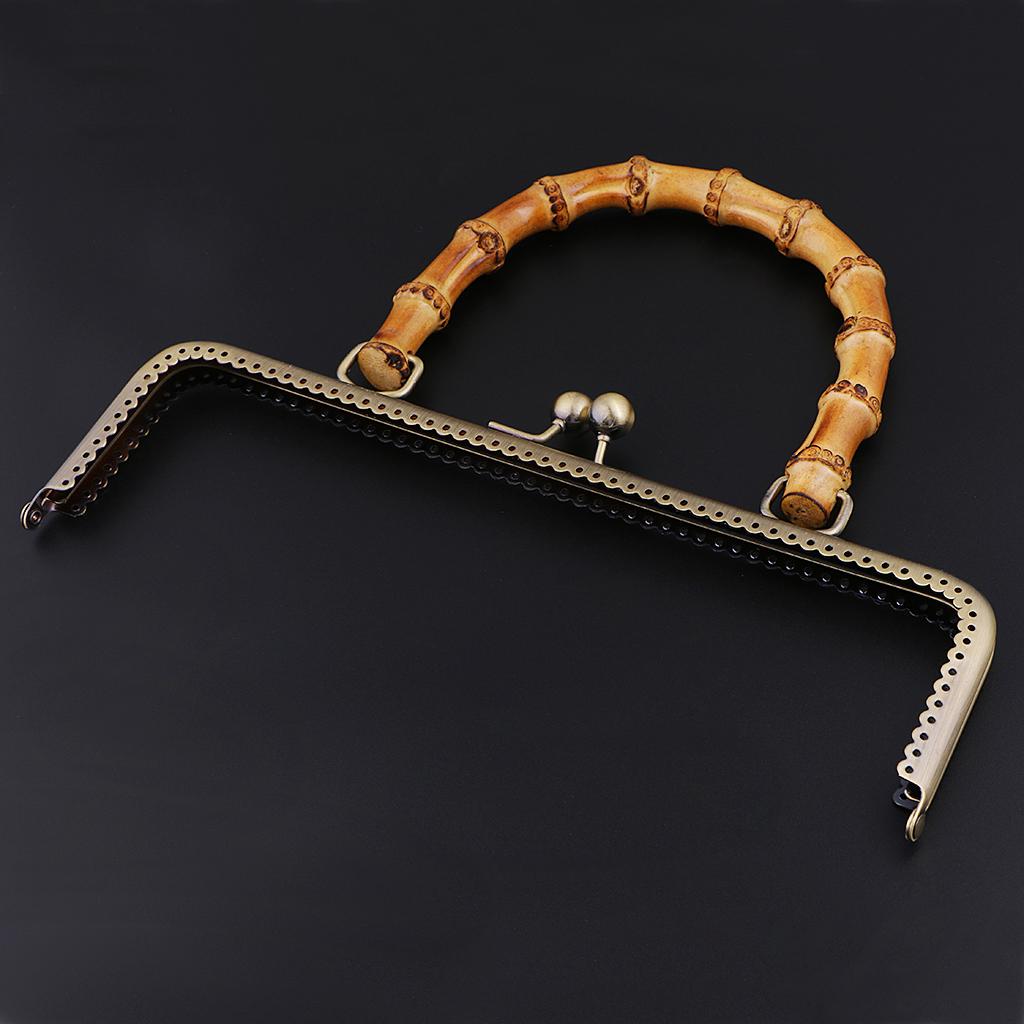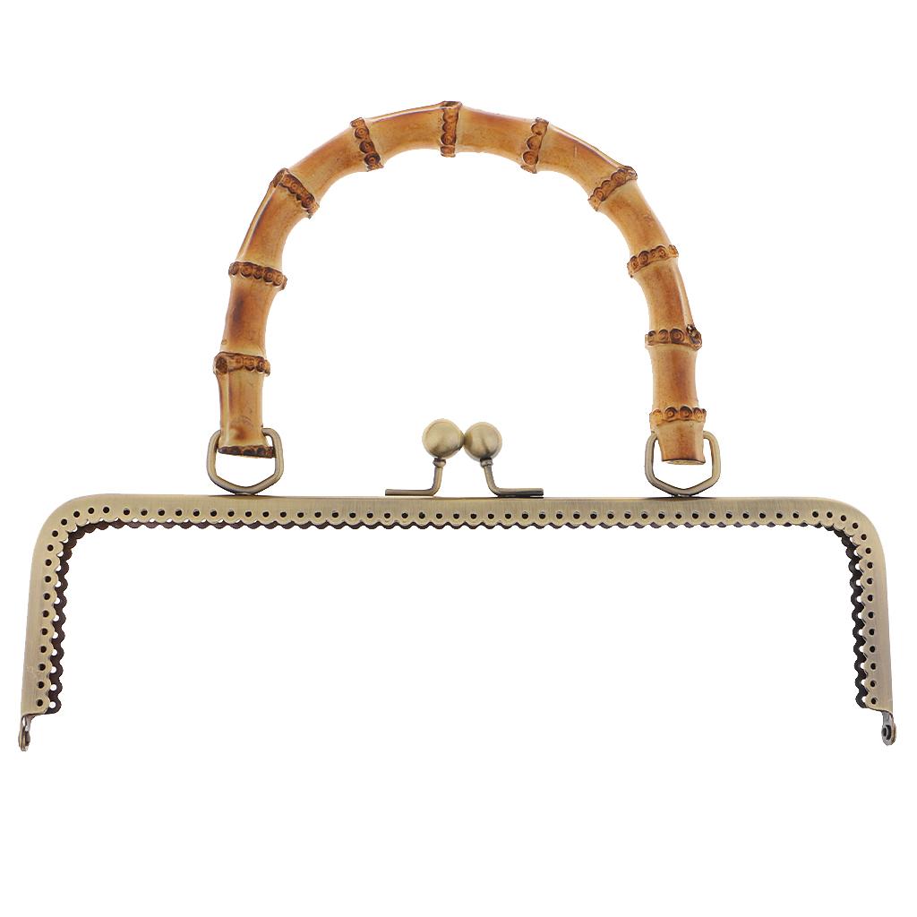 Bamboo Handle Metal Frame Kiss Clasp Lock For DIY Handbag Purse Bronze 25cm