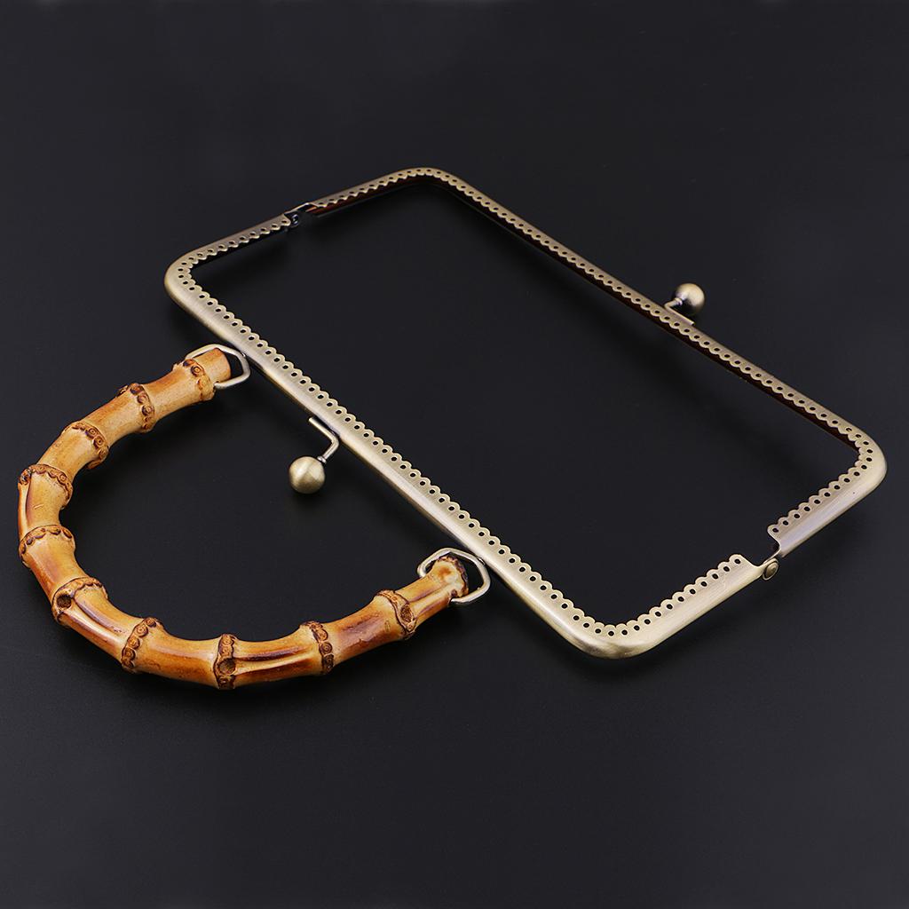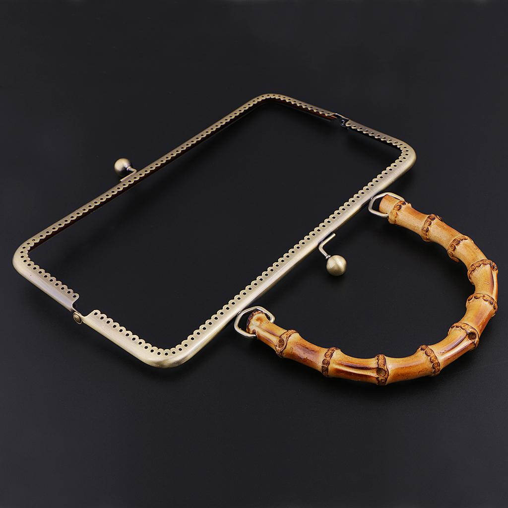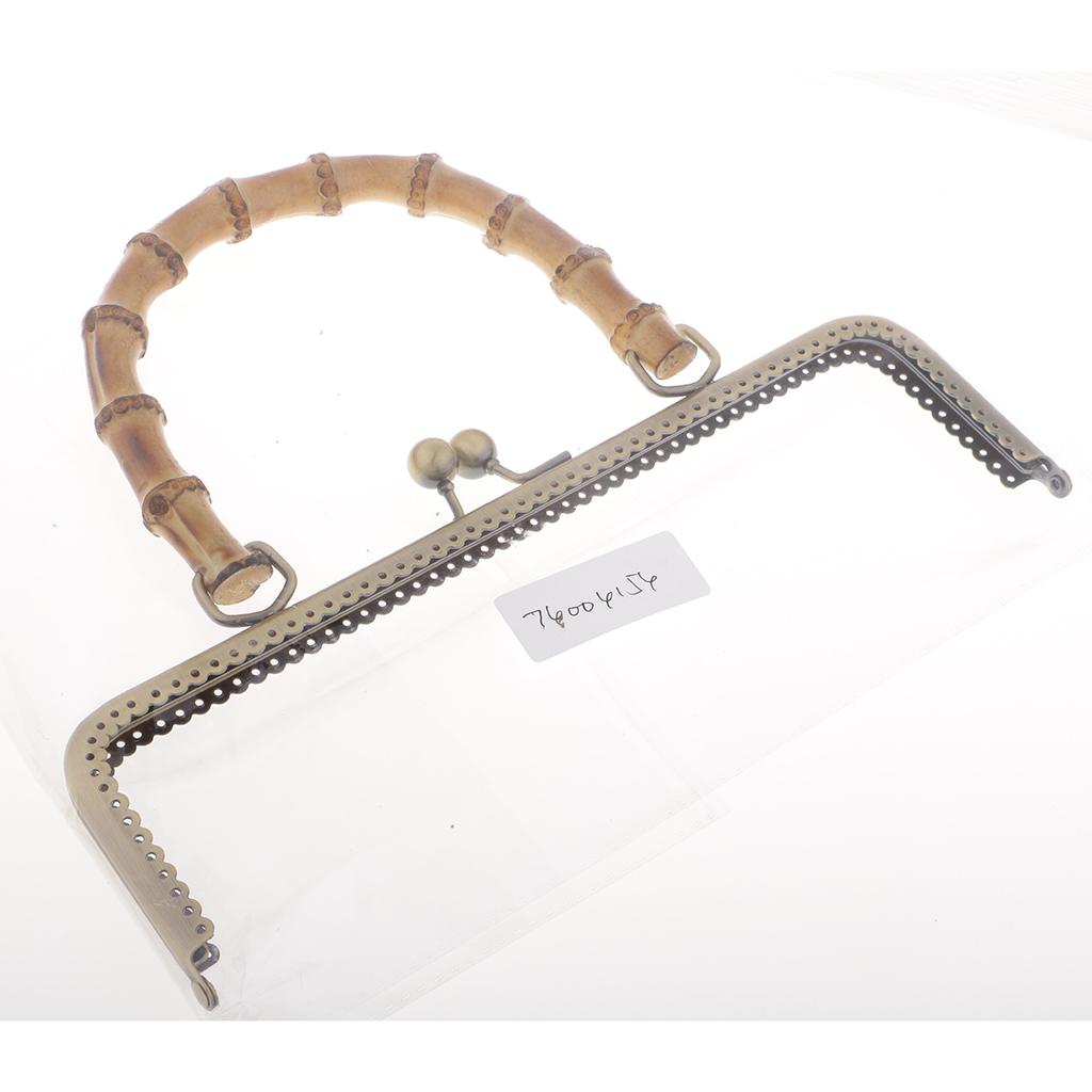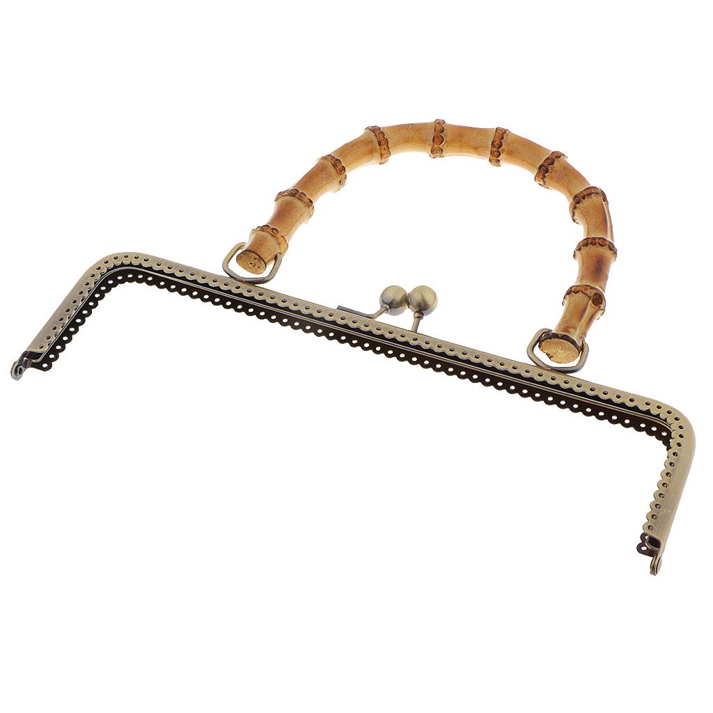 Bamboo Handle Metal Frame Kiss Clasp Lock For DIY Handbag Purse Bronze 25cm