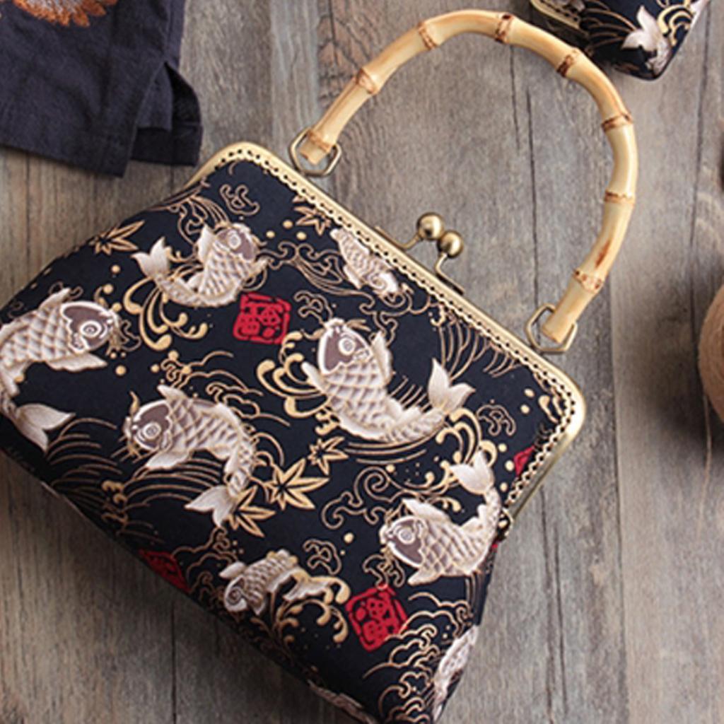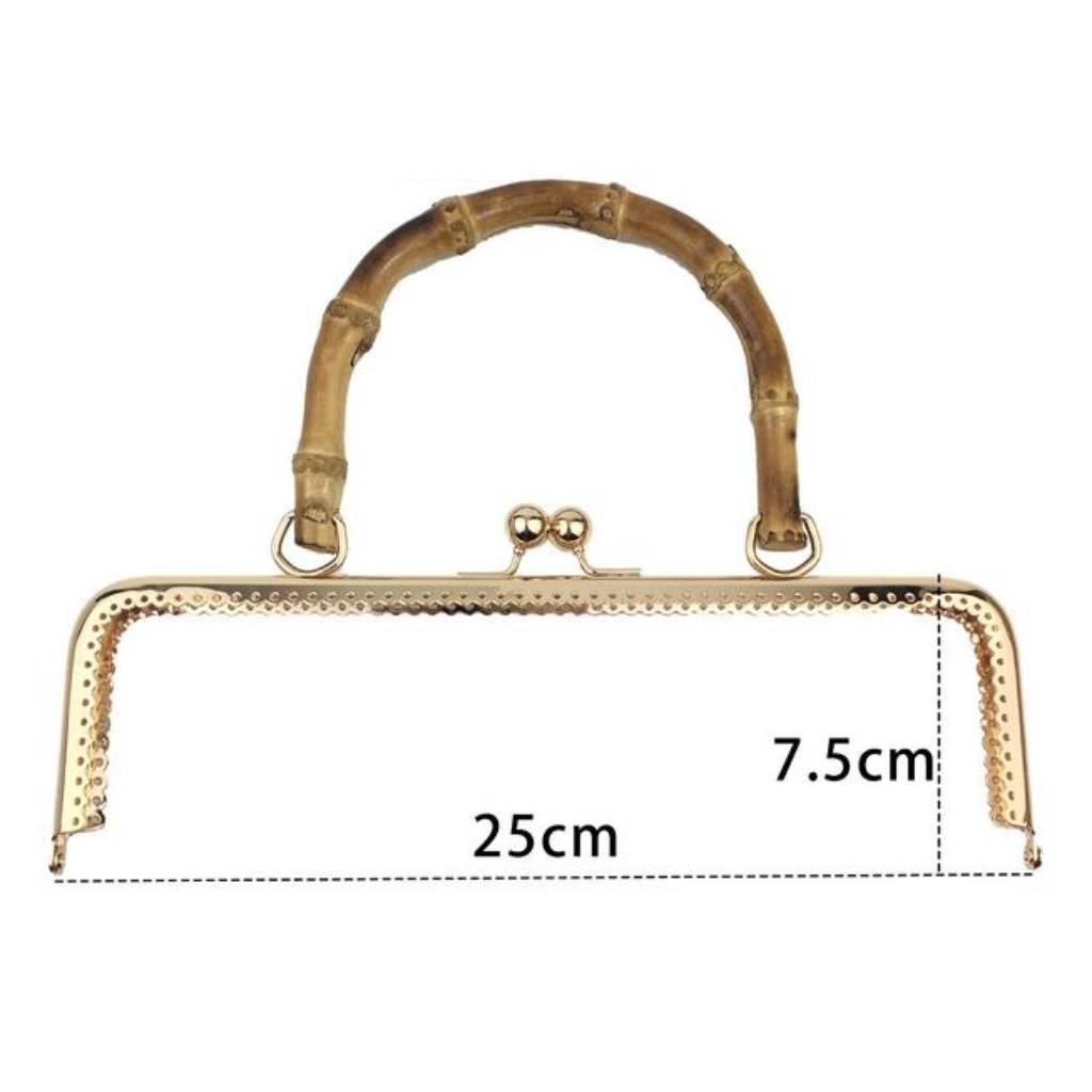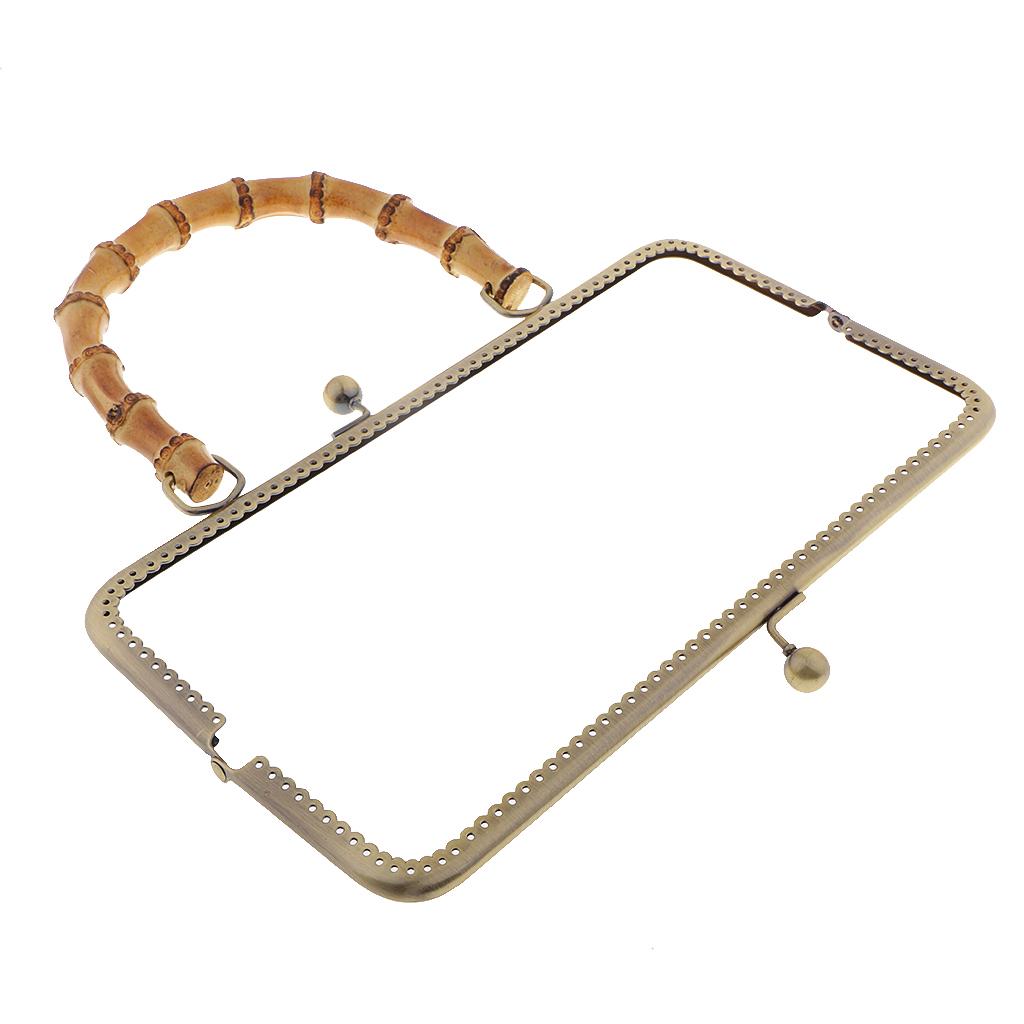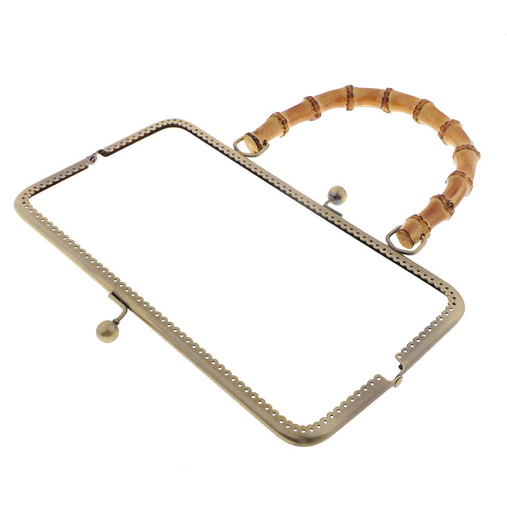 Bamboo Handle Metal Frame Kiss Clasp Lock For DIY Handbag Purse Bronze 25cm