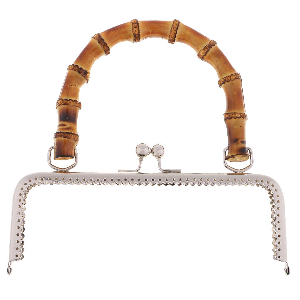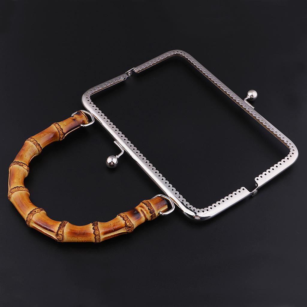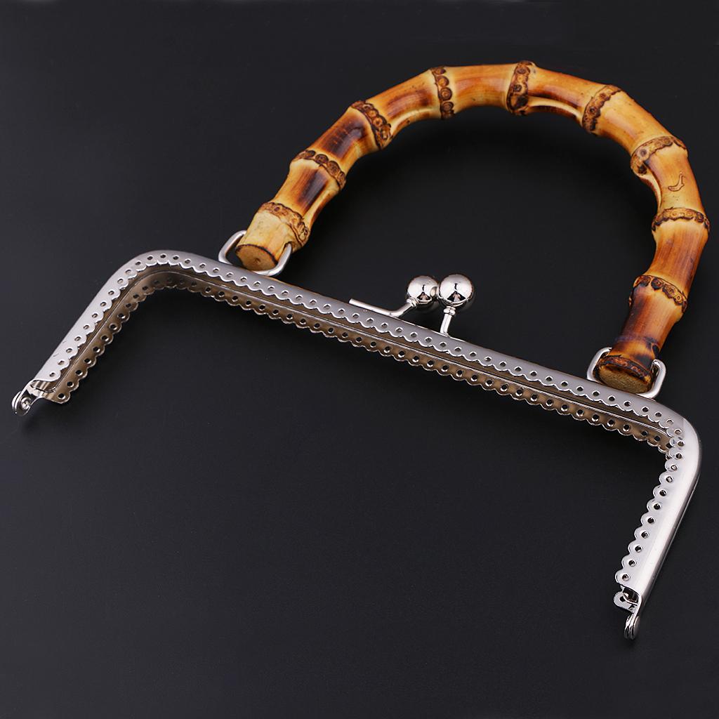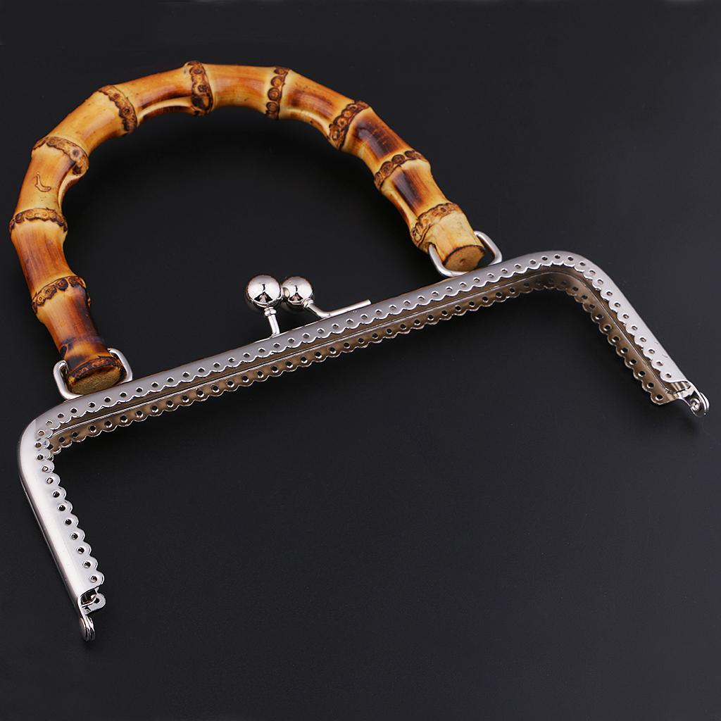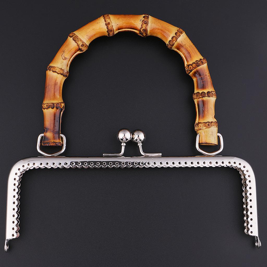 Bamboo Handle Metal Frame Kiss Clasp Lock For DIY Handbag Purse Silver 20cm