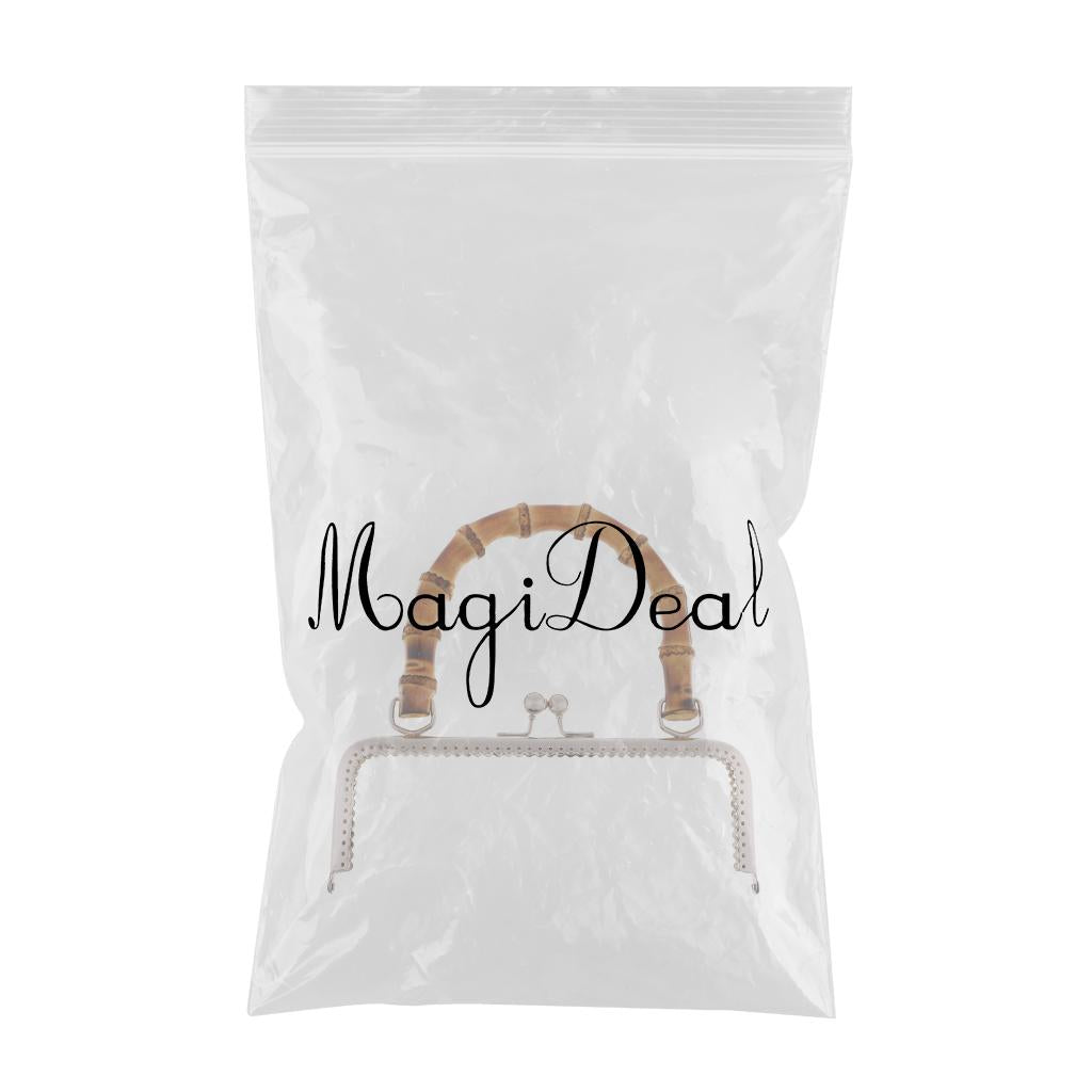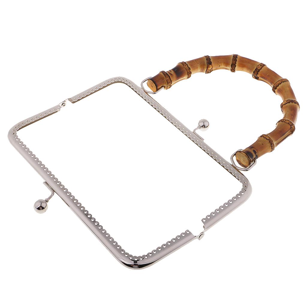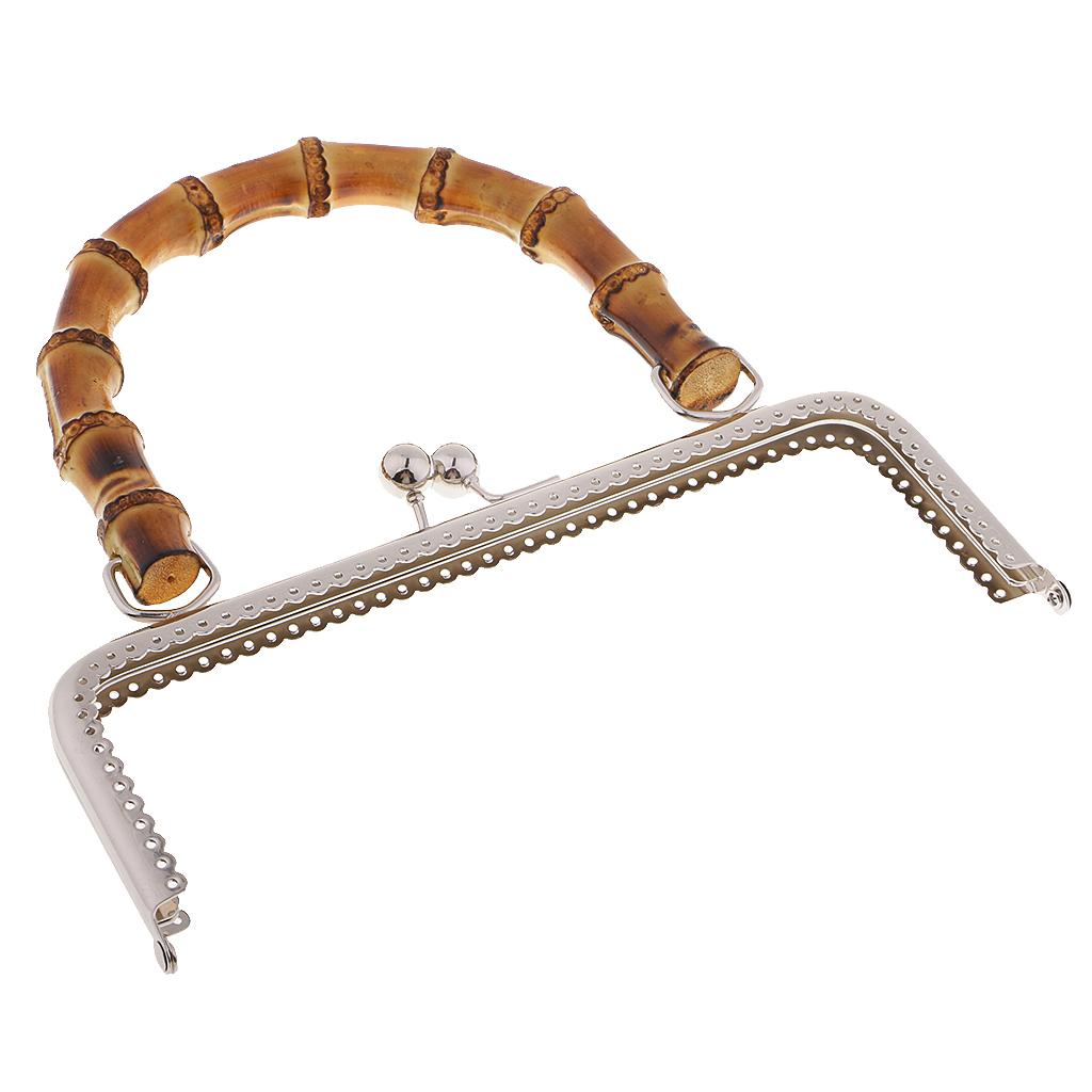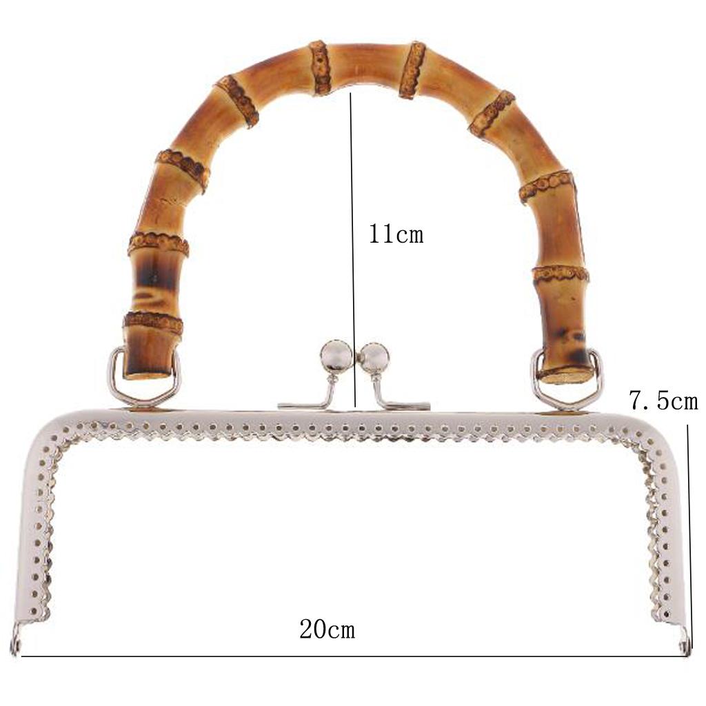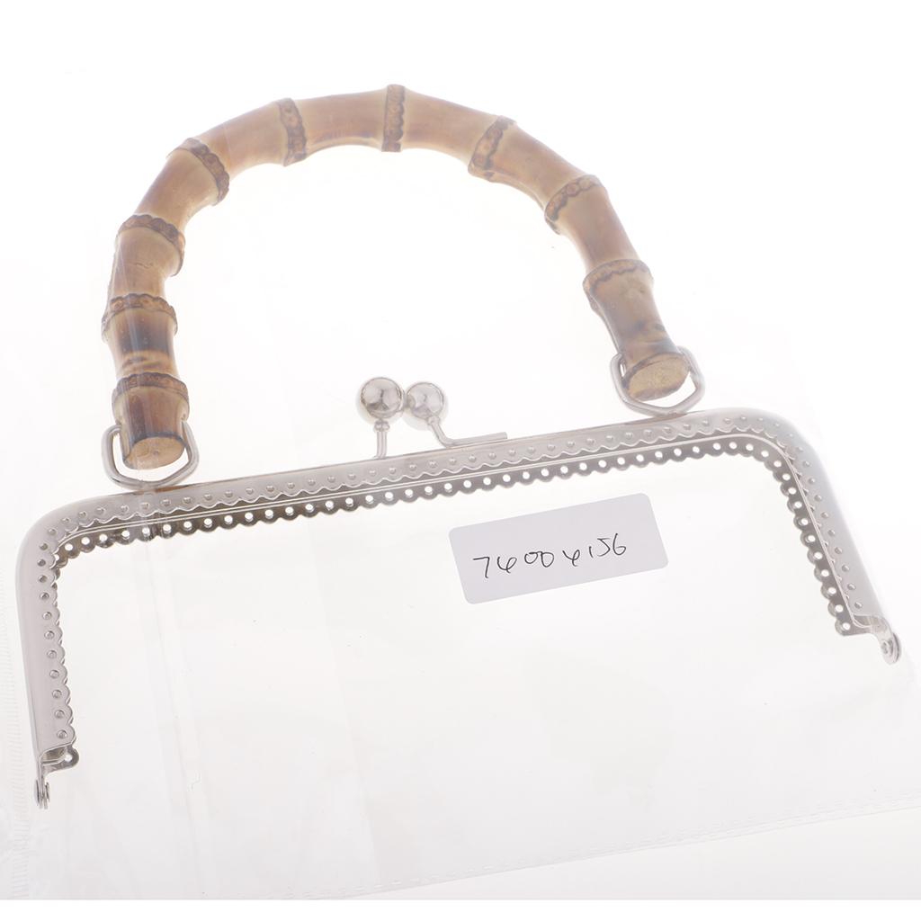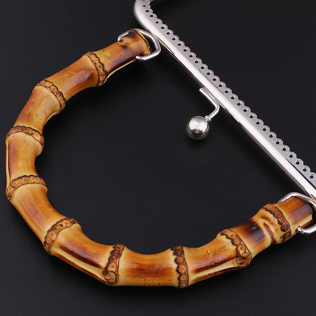 Bamboo Handle Metal Frame Kiss Clasp Lock For DIY Handbag Purse Silver 20cm