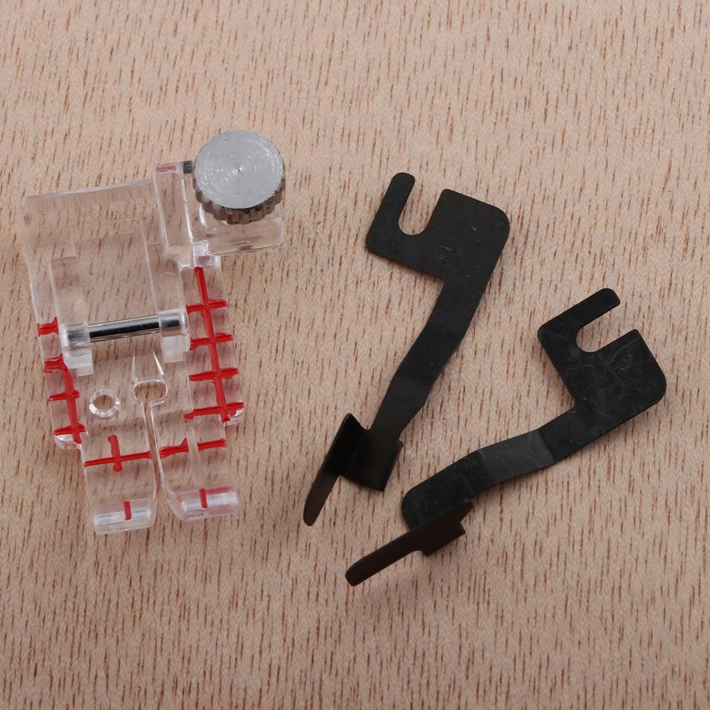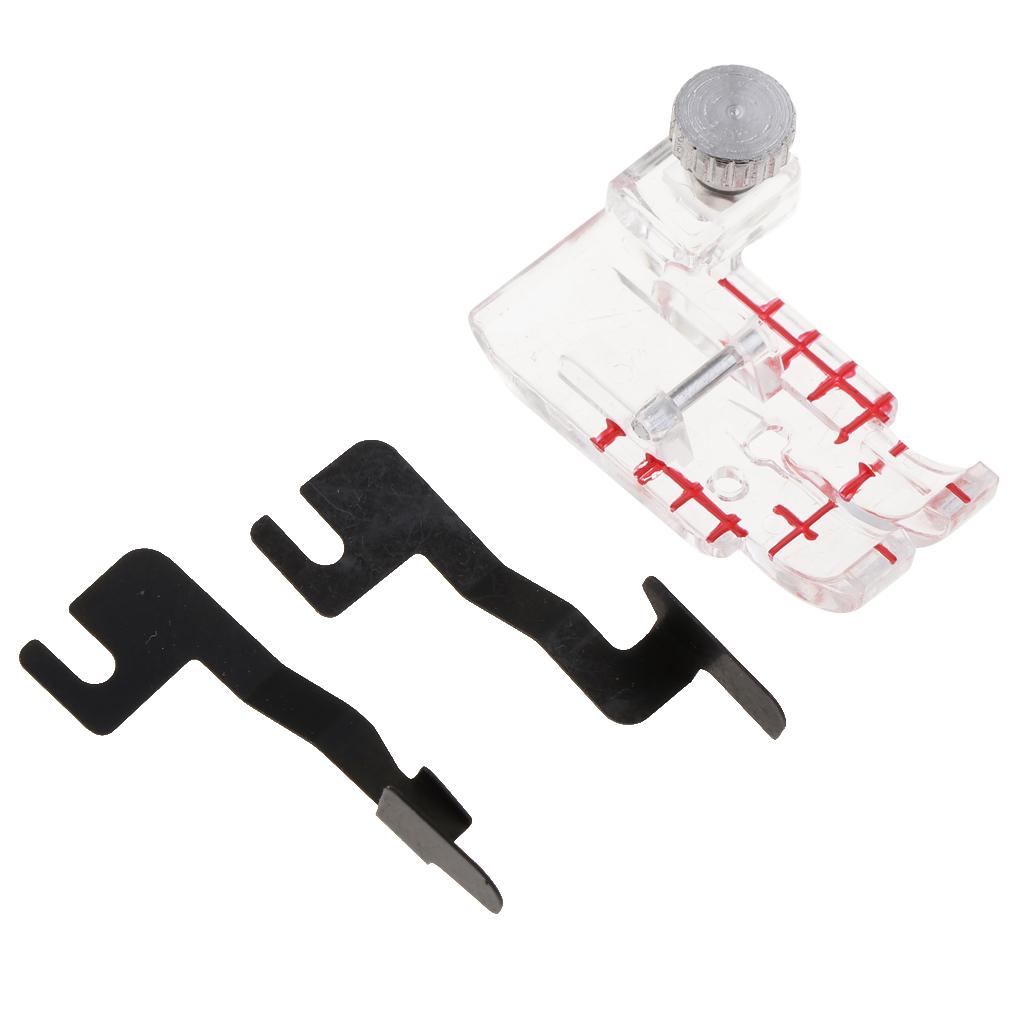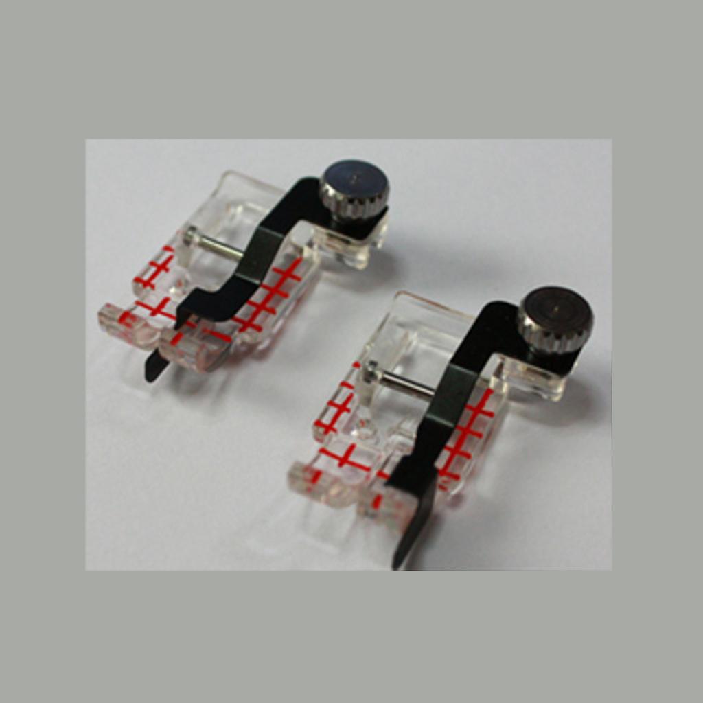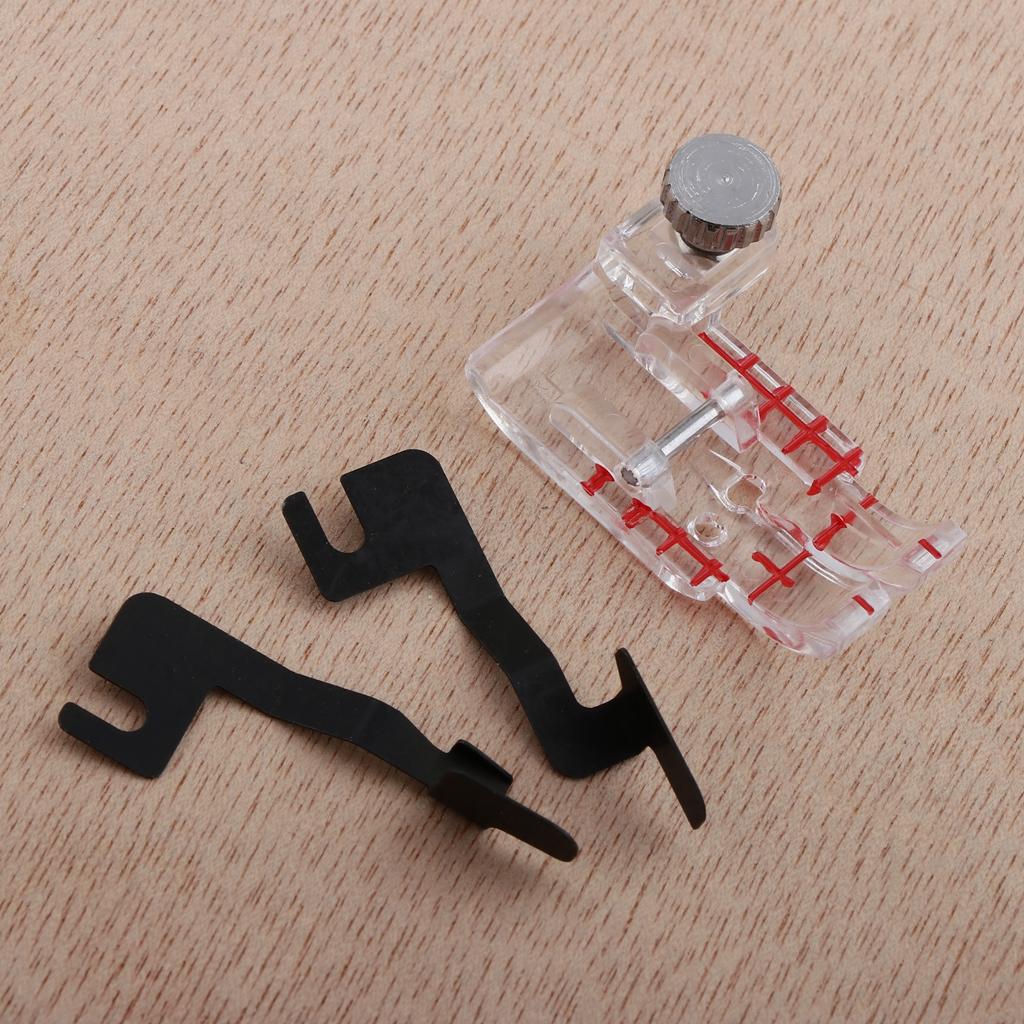 Markings on the front edge of the foot correspond with needles for perfect stitch alignment.