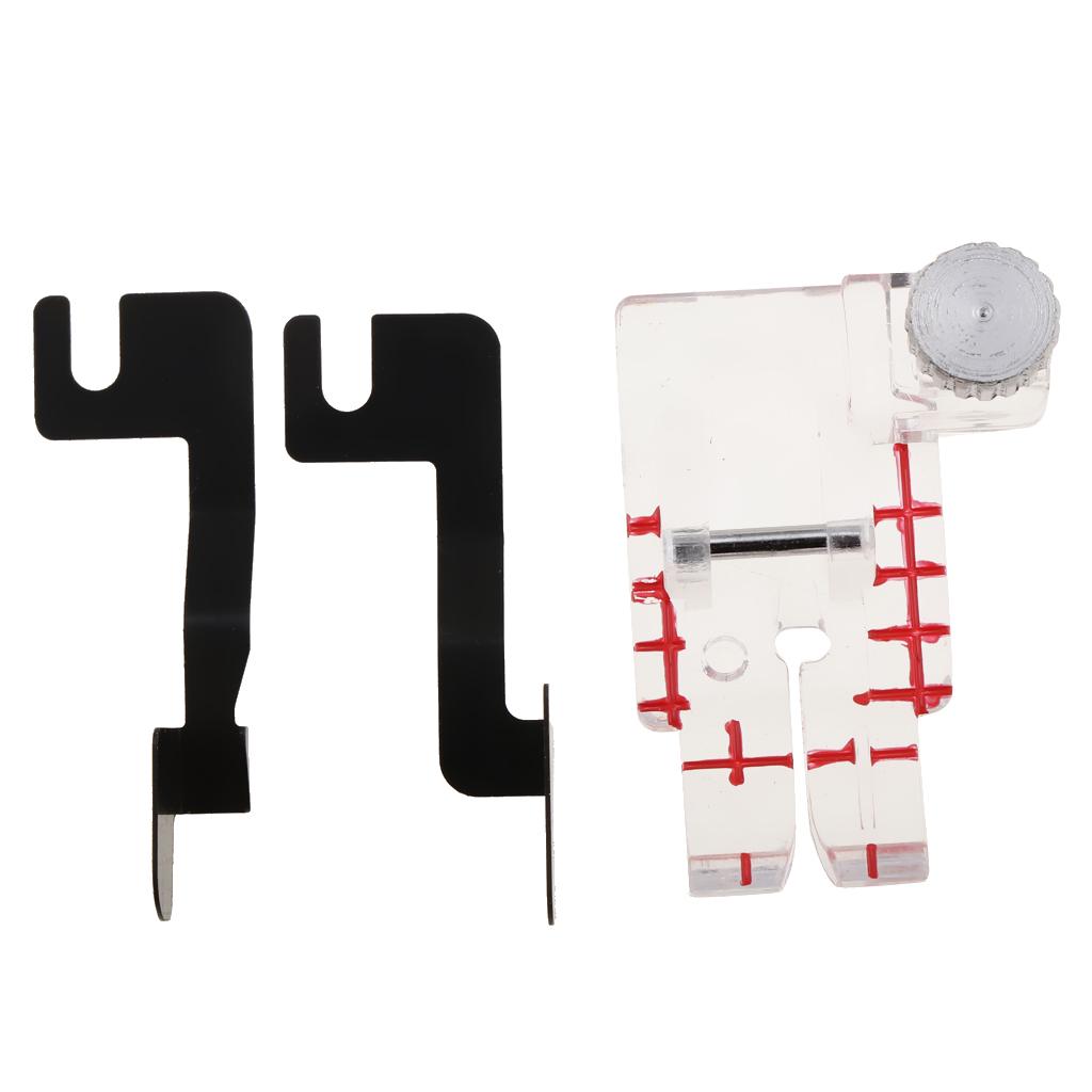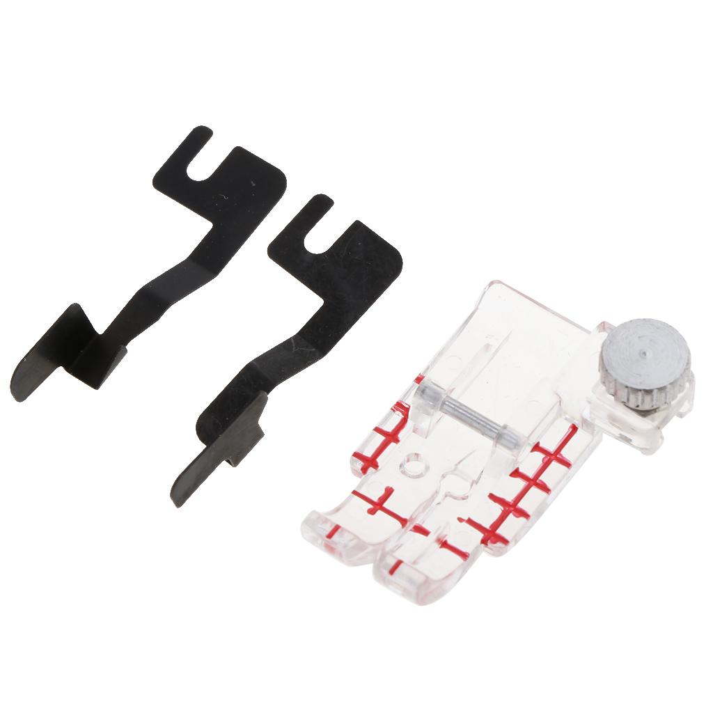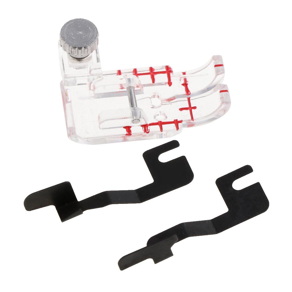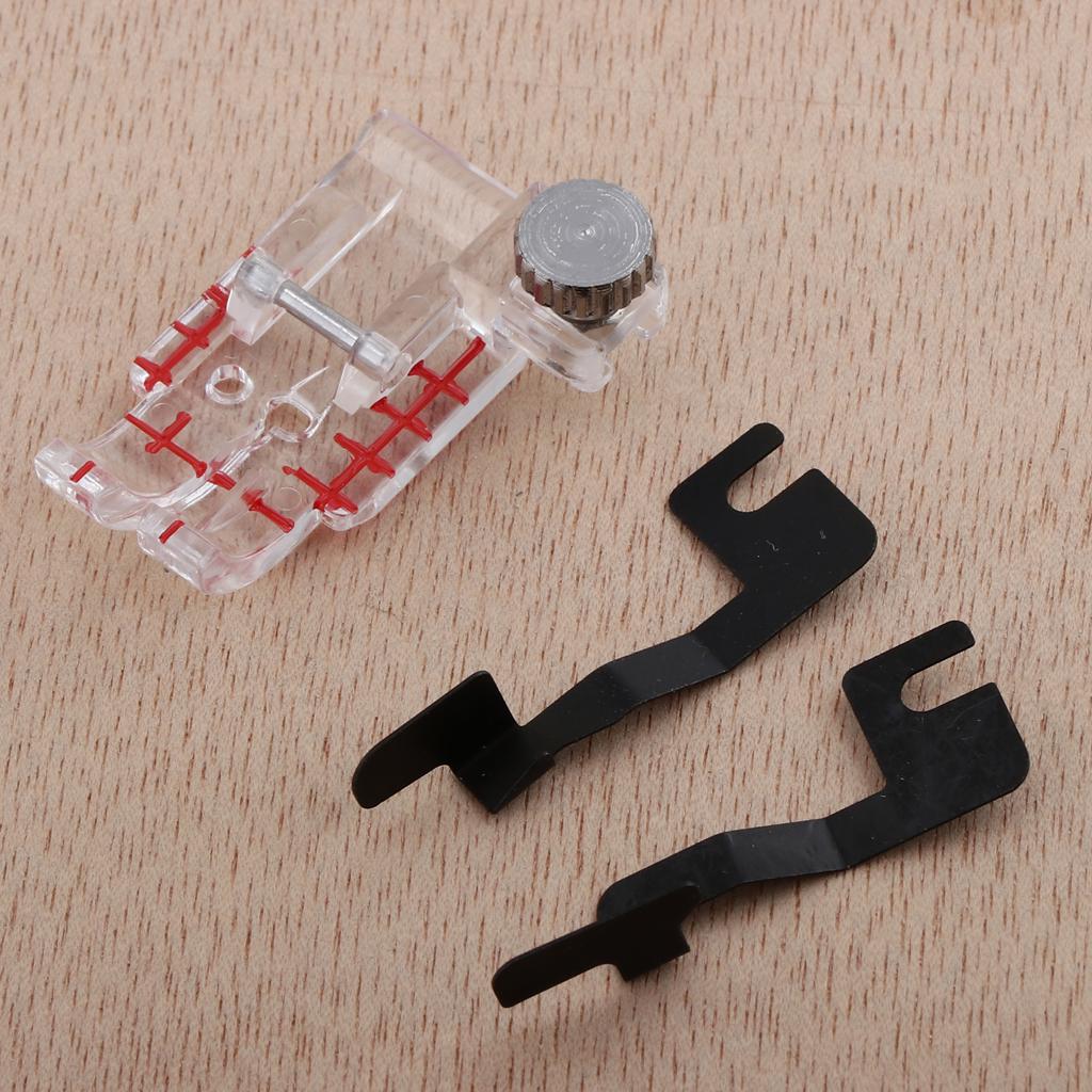 Markings on the front edge of the foot correspond with needles for perfect stitch alignment.