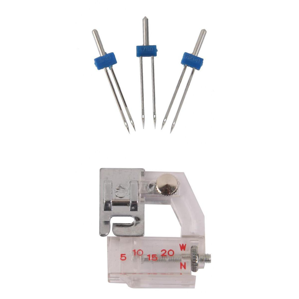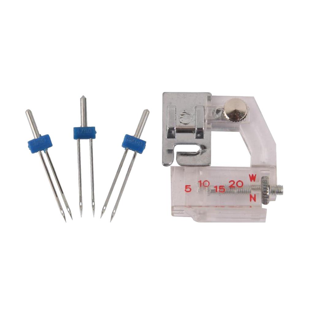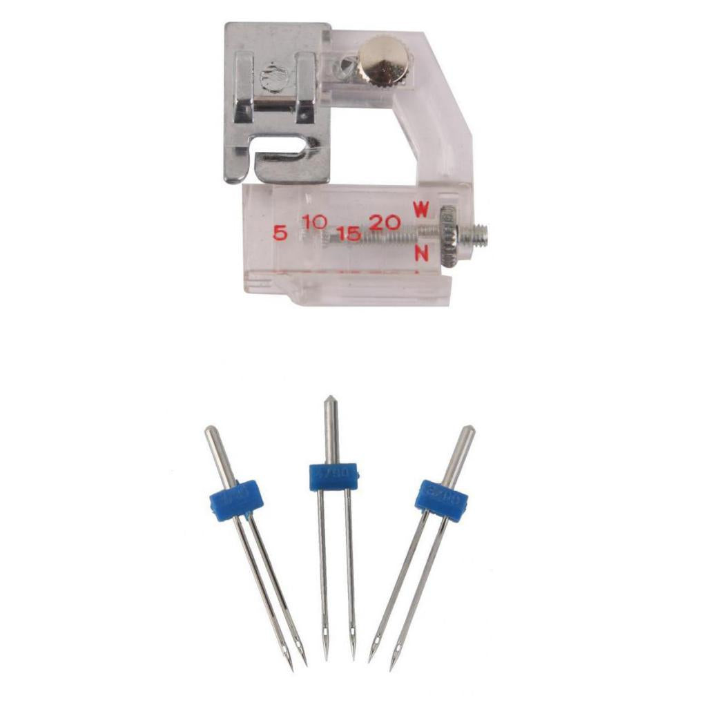 Double Twin Needle Pins 2/90 3/90 4/90 & Ajustable Binding Snap-on Bias Binder Presser Foot For Domestic Sewing Machines