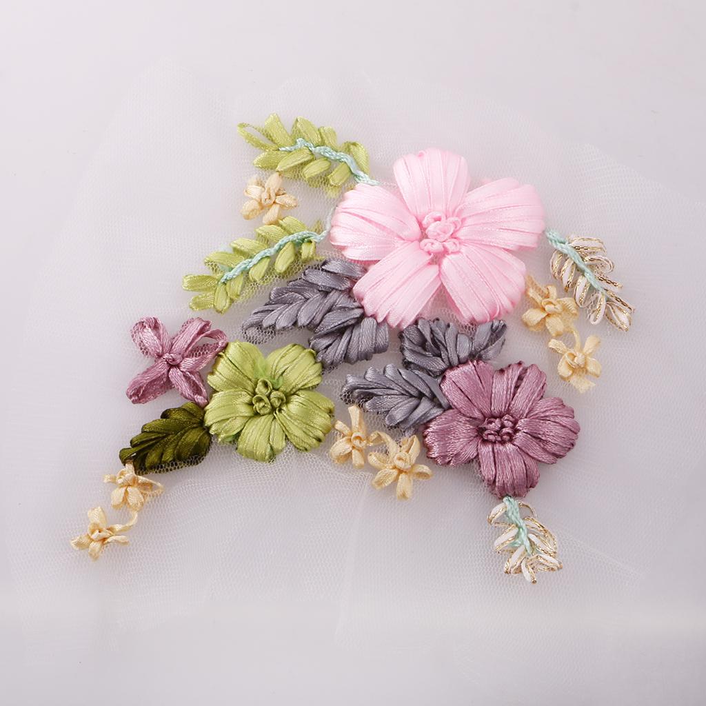 Elegant Ribbons Embroidery Flower Sewing Applique Embellishments for DIY Clothes Decoration #6