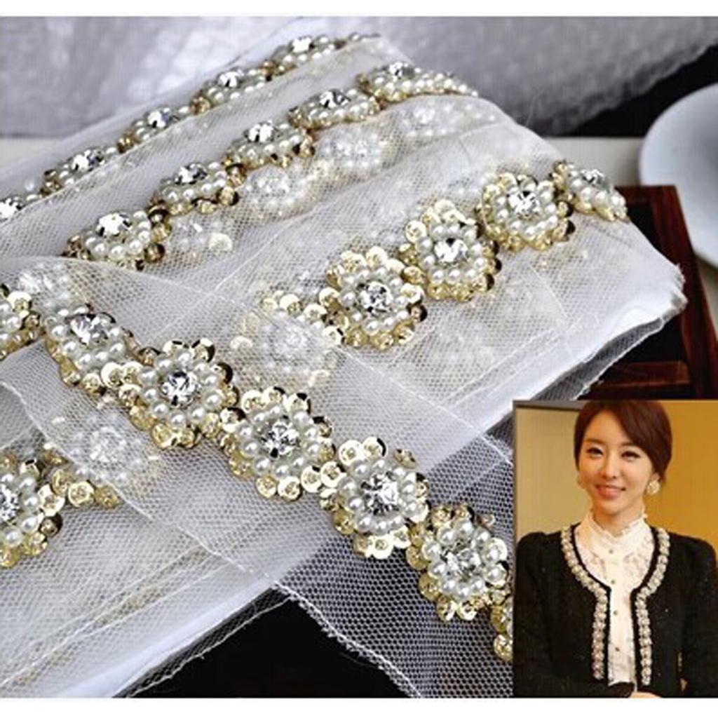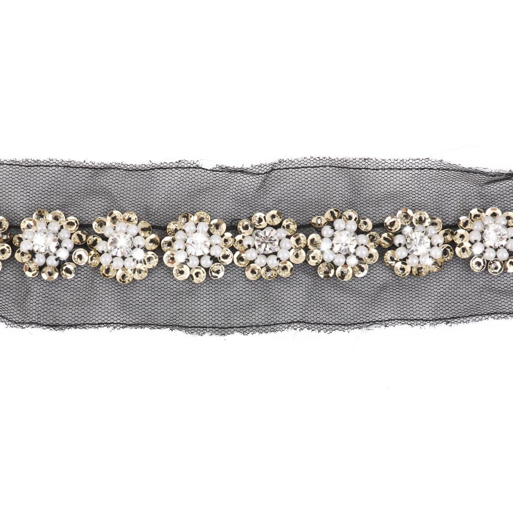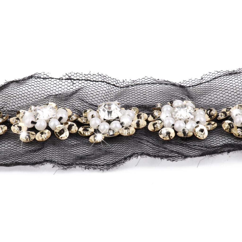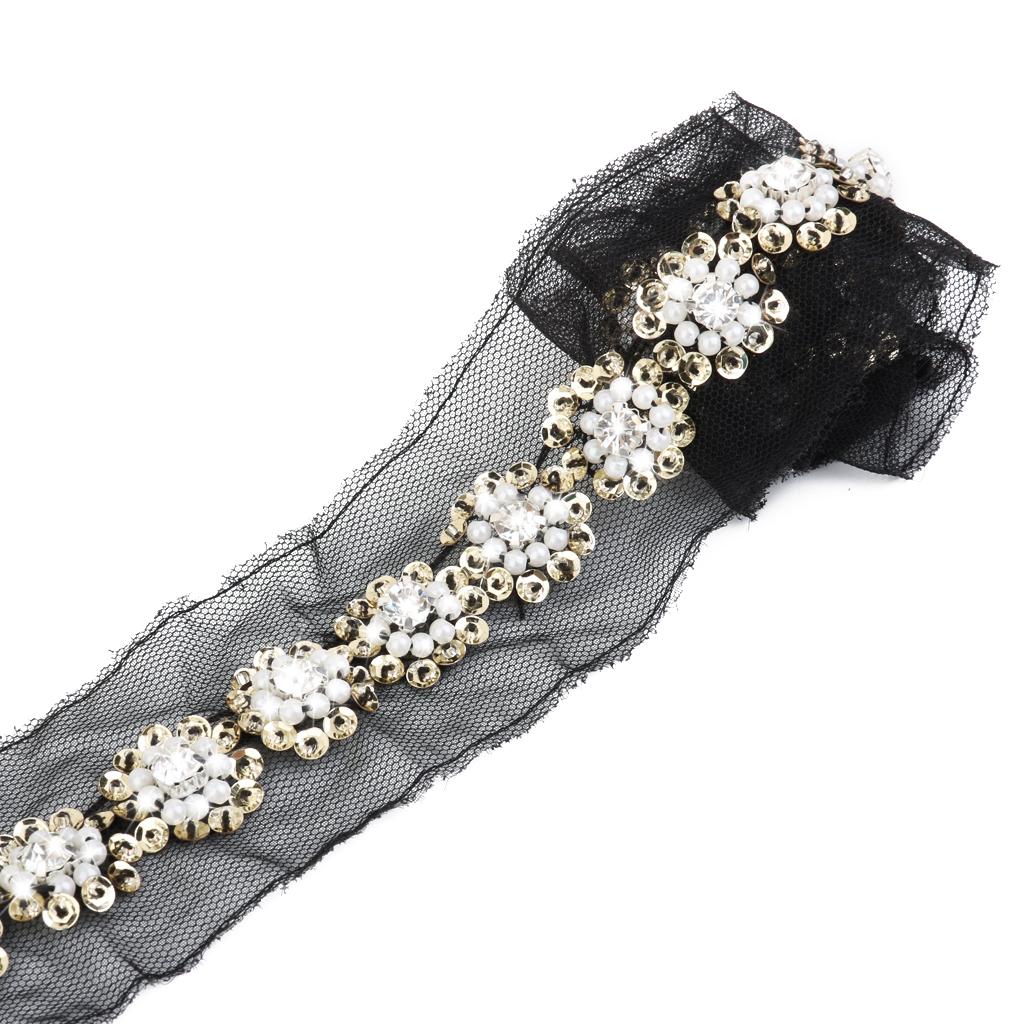 Fake Pearls Sequins Rhinestone Beads Lace Ribbon Trim Sewing Craft 1yd Black
