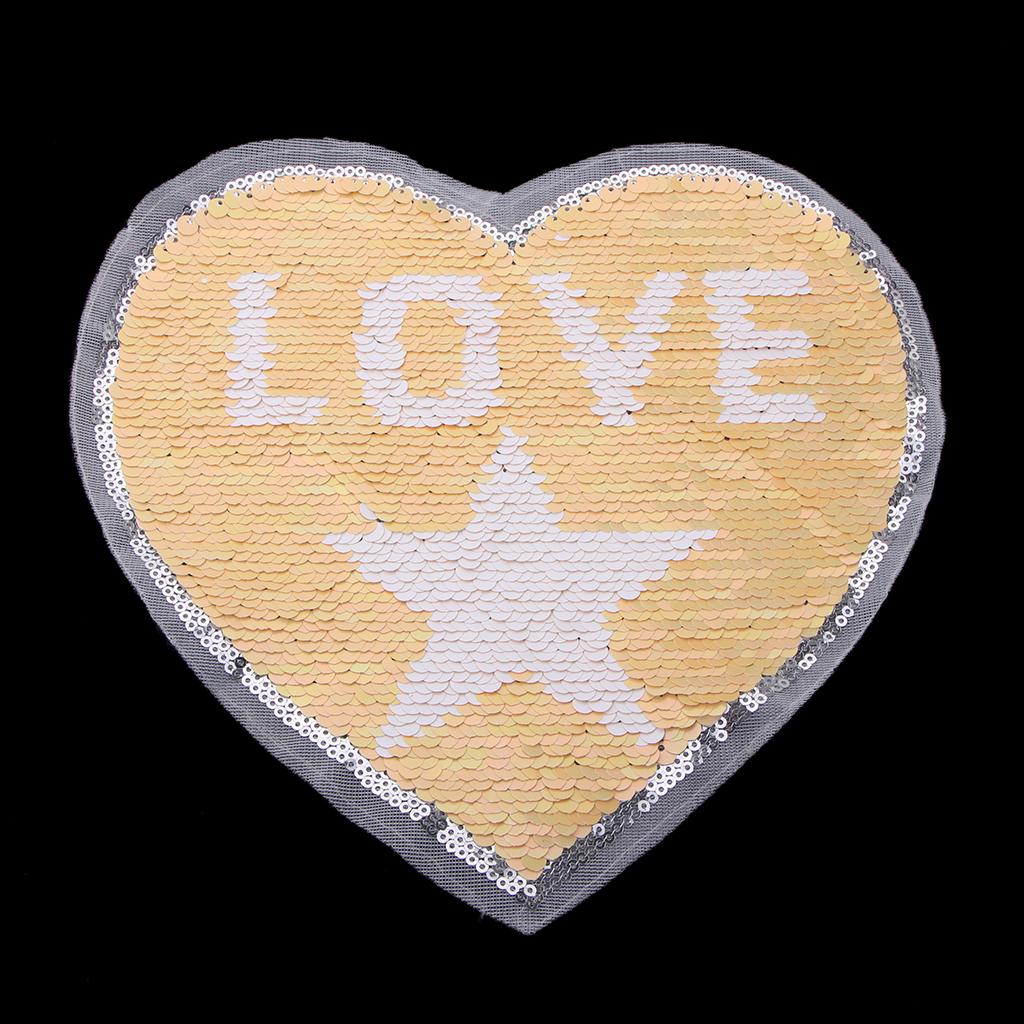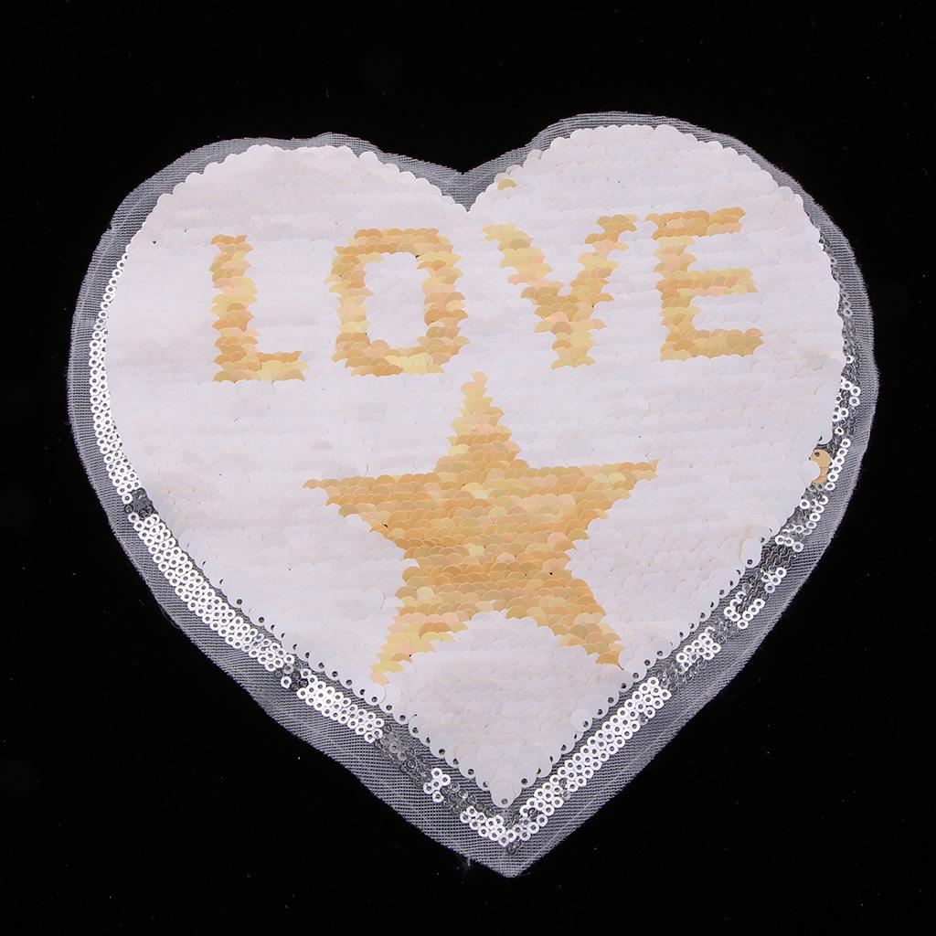 Love Heart Embroidery Sequin Patch Clothes Applique Sewing DIY Decoration