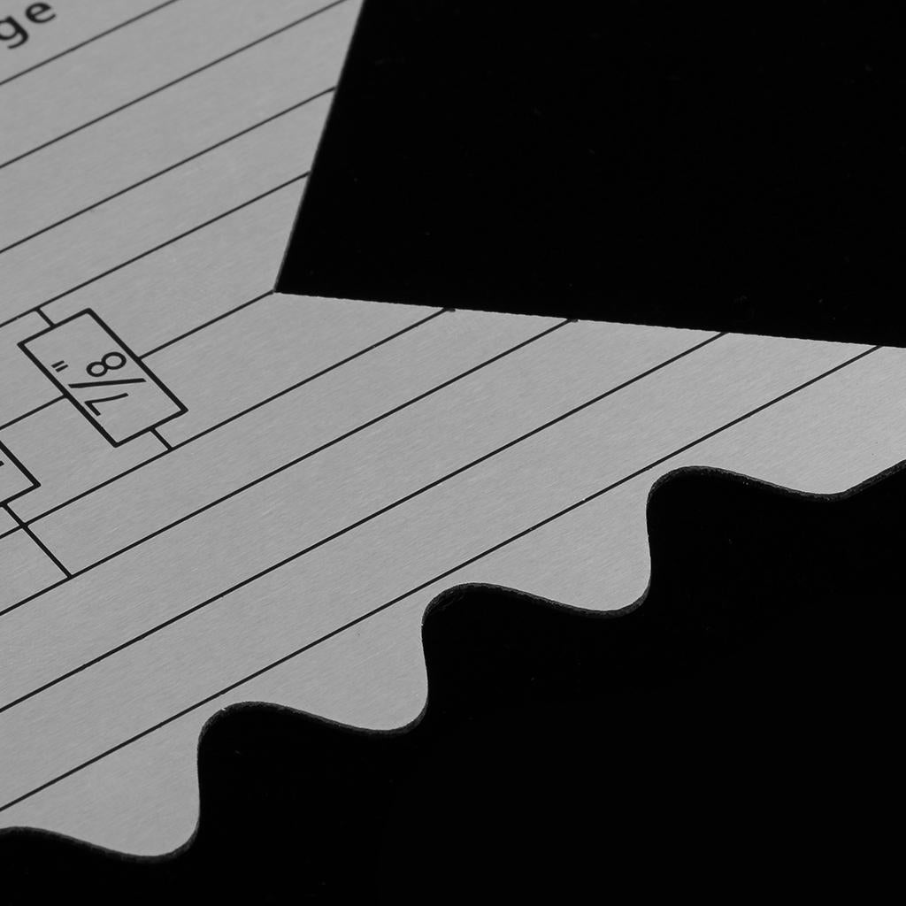 It has scale line, V shape angle, curved angle, which help you make different edge of ribbons.
