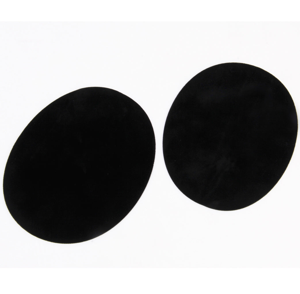 Pair of Oval Flocking Fabric Iron on Elbow Knee Patches Black