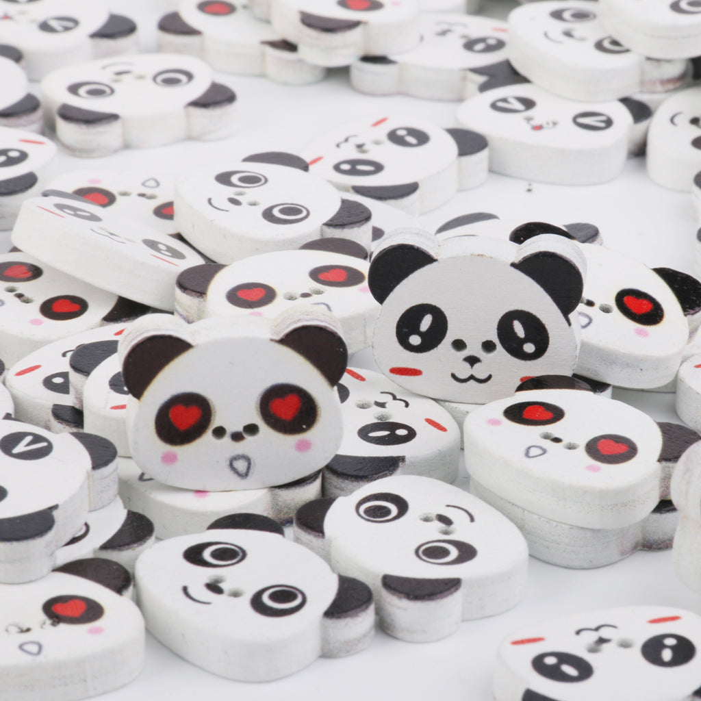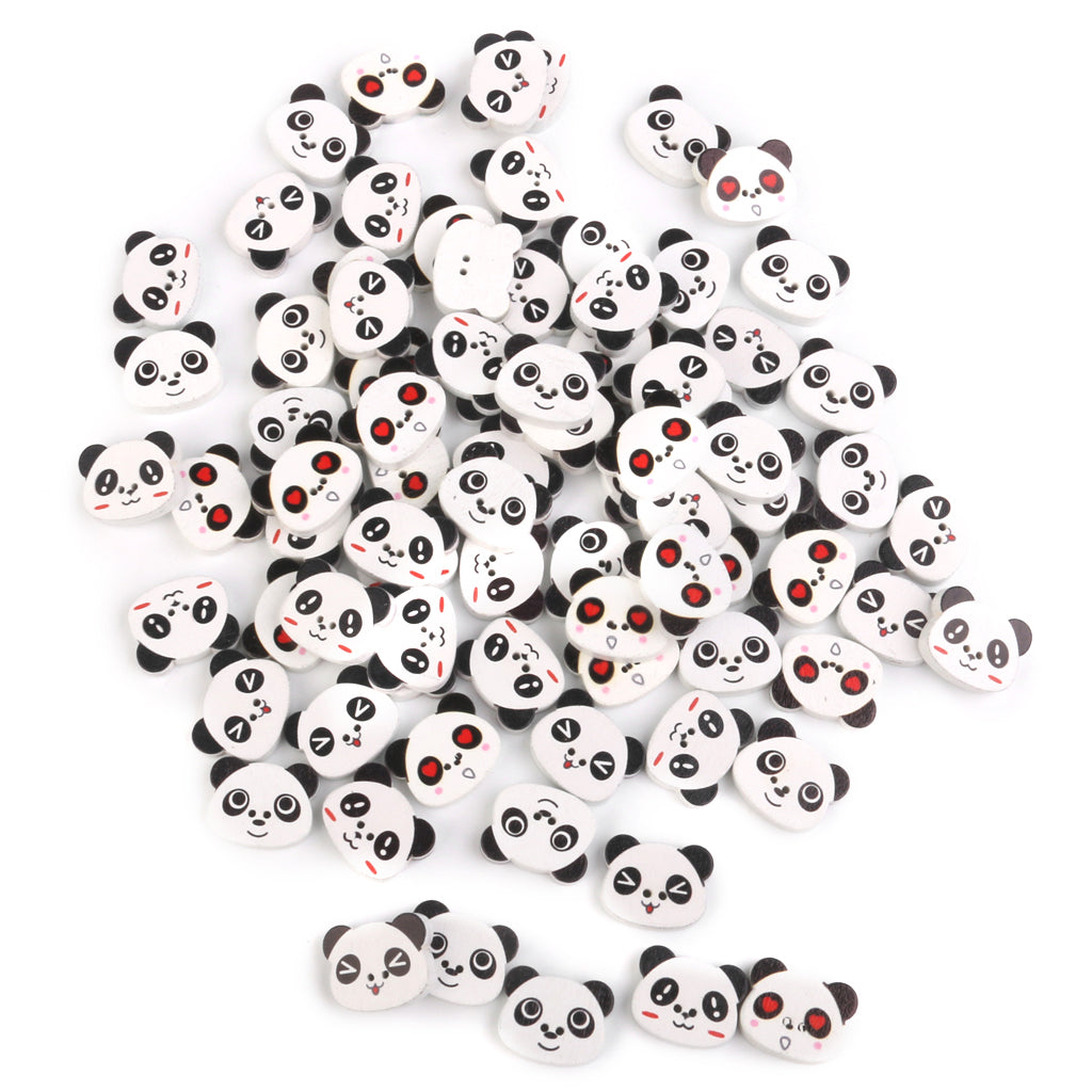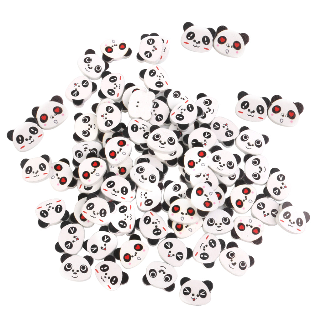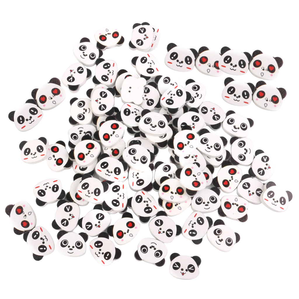 Panda Face Colored Drawing Wood Buttons for Sewing DIY Craft 100pcs White