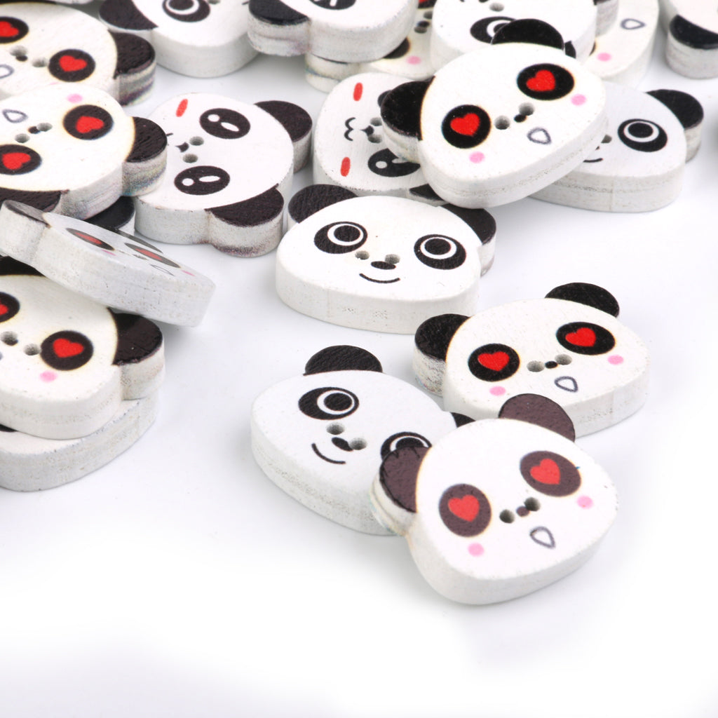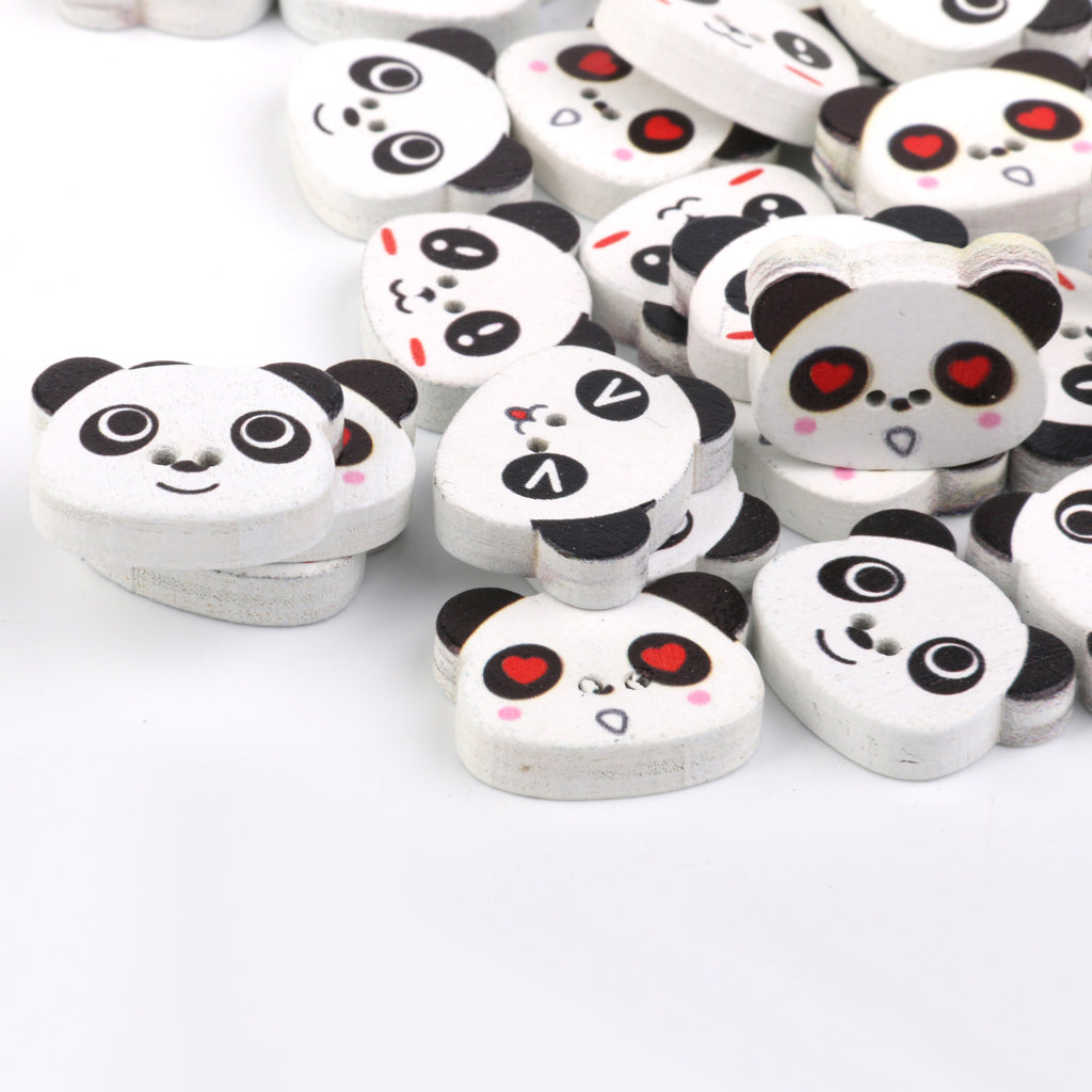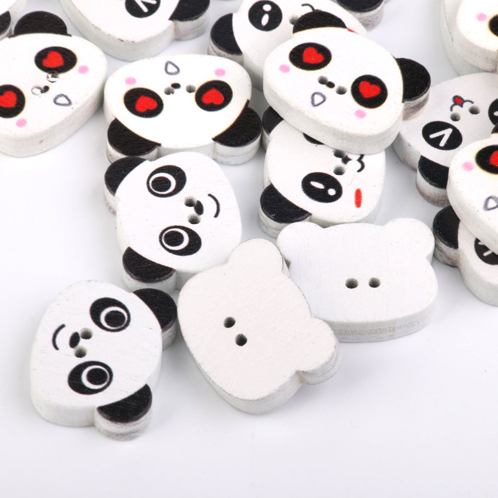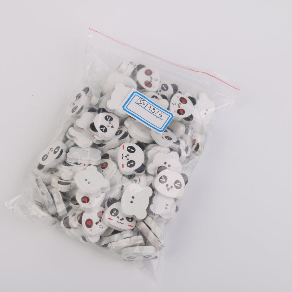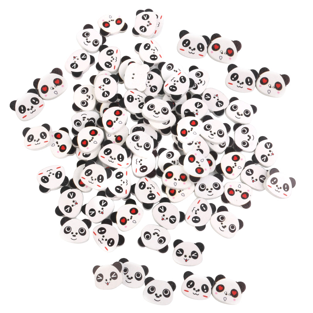 Panda Face Colored Drawing Wood Buttons for Sewing DIY Craft 100pcs White