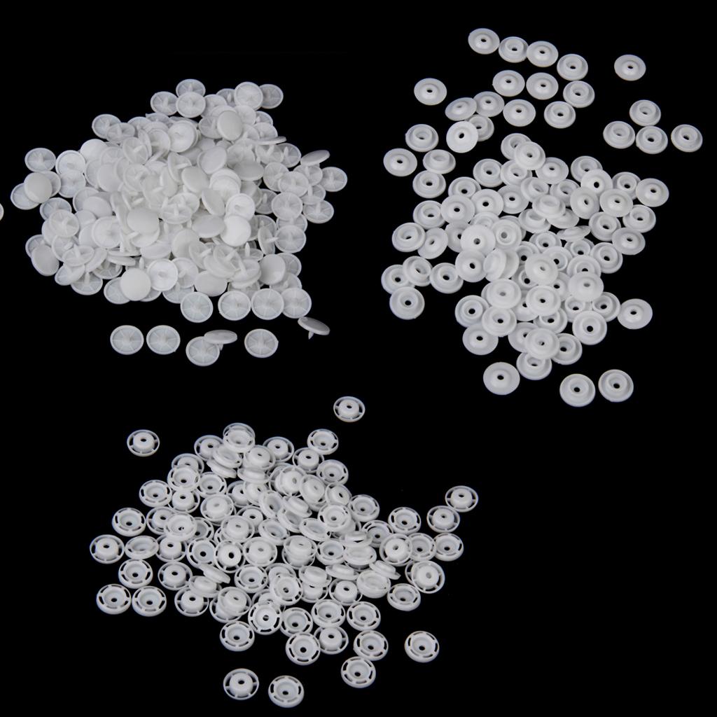 Resin Snap Buttons Fasteners Poppers T8 14.1mm Pack of Approx.100 Sets White