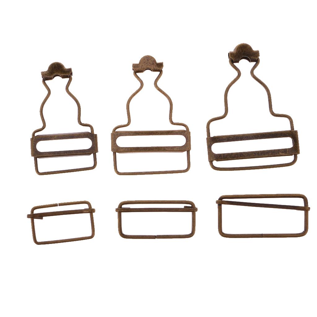 Set of 6 Dungaree Fasteners Clip/Brace Buckles for Suspenders 3.8cm Bronze