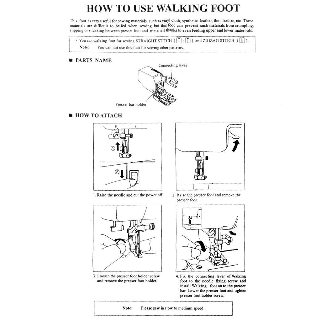 • The Even Feed foot enables you to sew hard to sew fabrics.