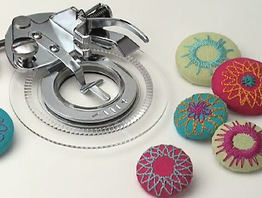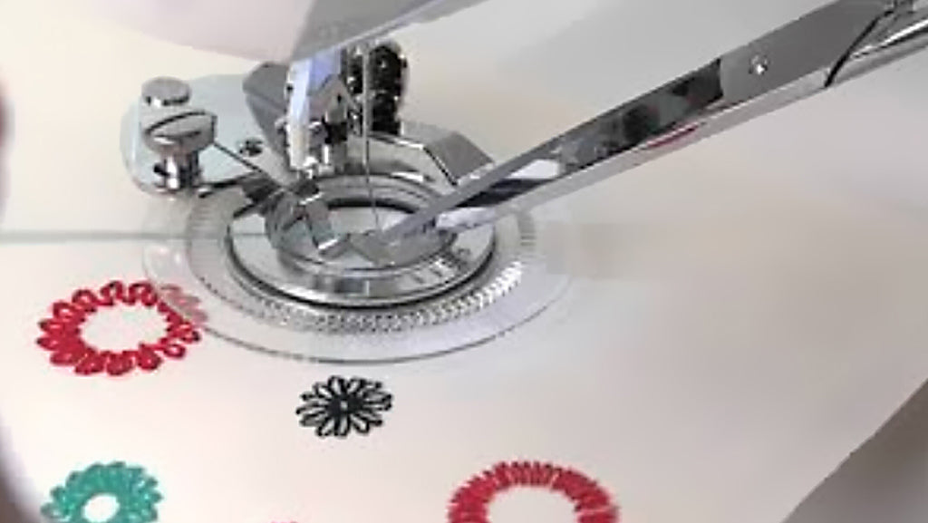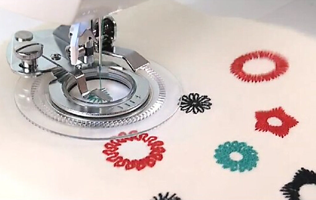 Create decorative circles and flower stitches without a hoop! Make flower designs automatically with this attachment.