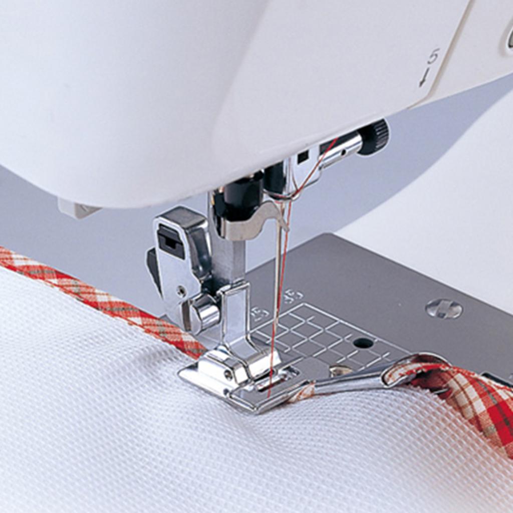 Just set the foot to the appropriate setting for your bias tape and you are ready to sew.
