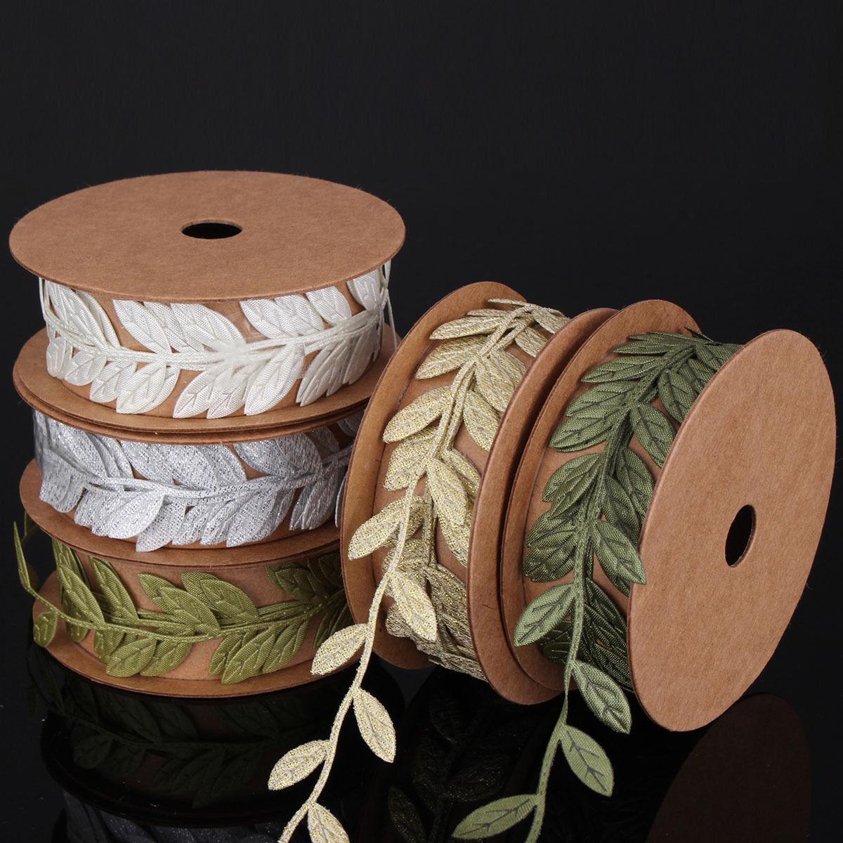 Vintage Satin Leaf Leaves Vine Garlands Ribbon Trim Sewing DIY Craft Beige
