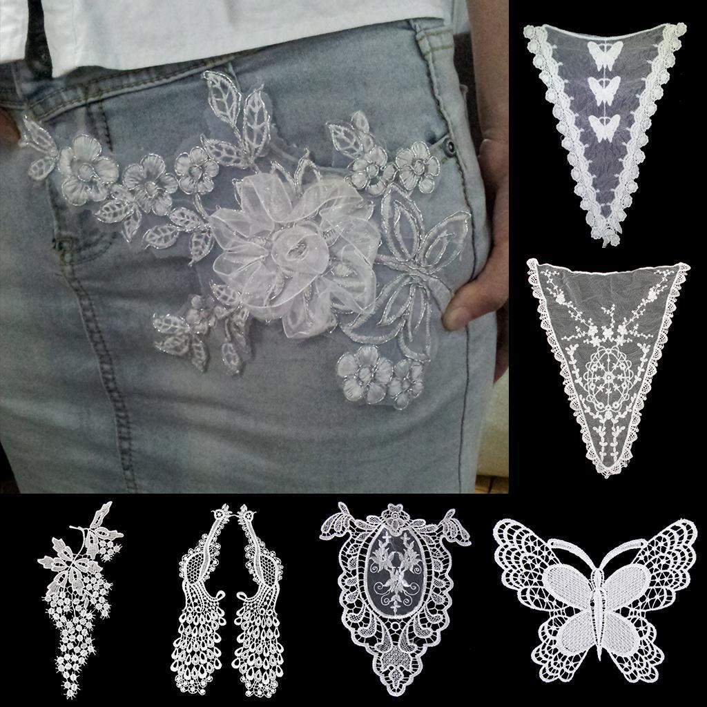 White Flower Lace Trim Venise Applique Sew On Collar Embroidered Craft DIY