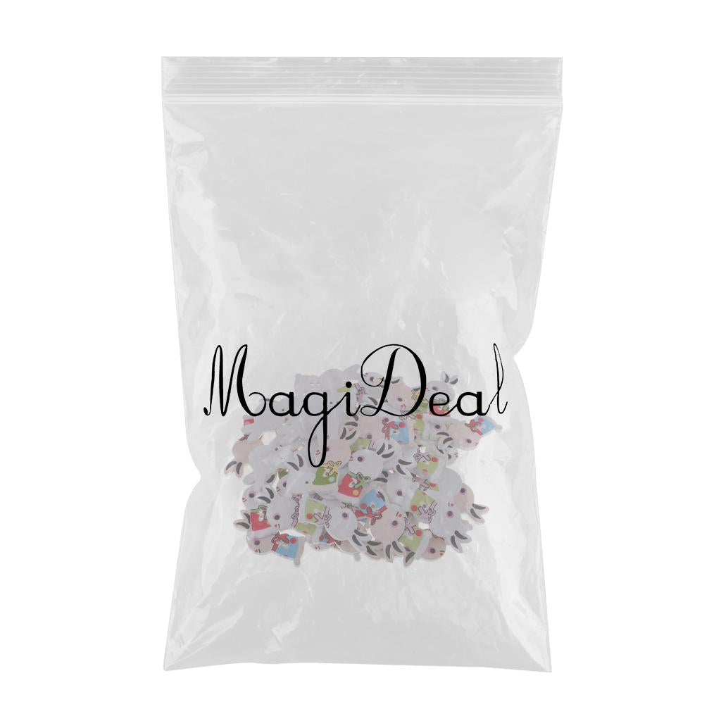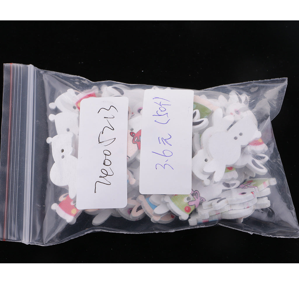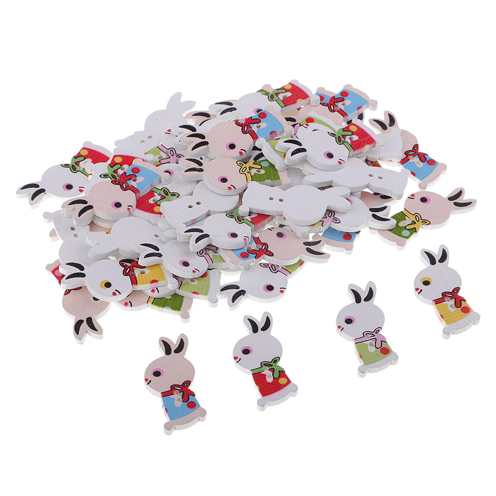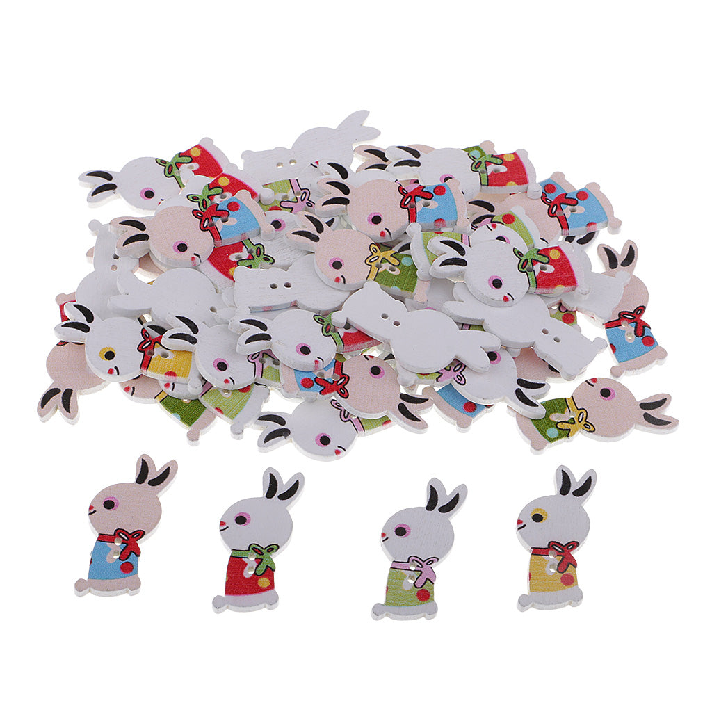 Material: Wood. 50pcs 2 hole wooden buttons, cartoon rabbit shape.