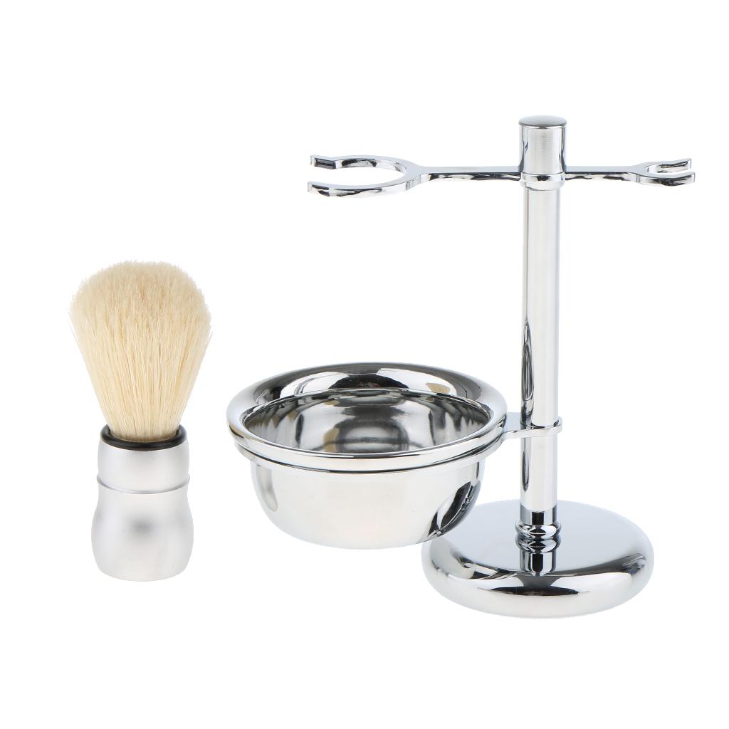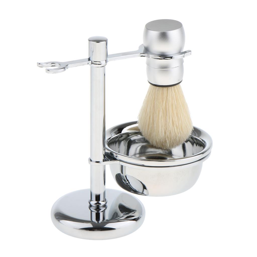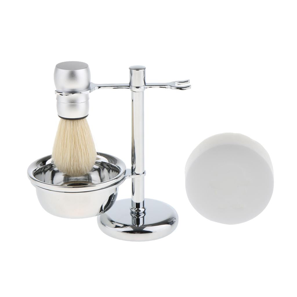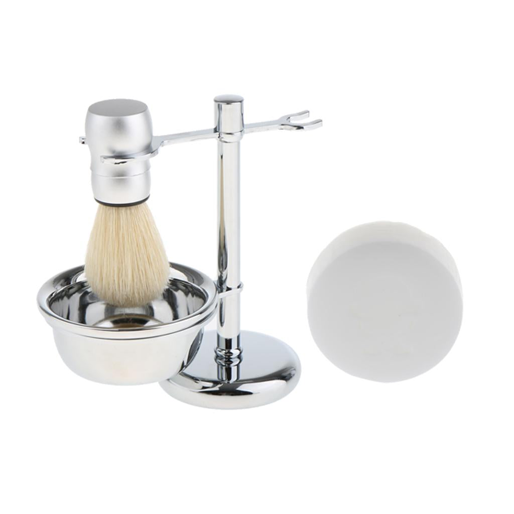 4 in 1 Men's Shaving Kit Soft Nylon Hair Brush + Stainless Steel Shaver Stand & Bowl/Mug + Soap