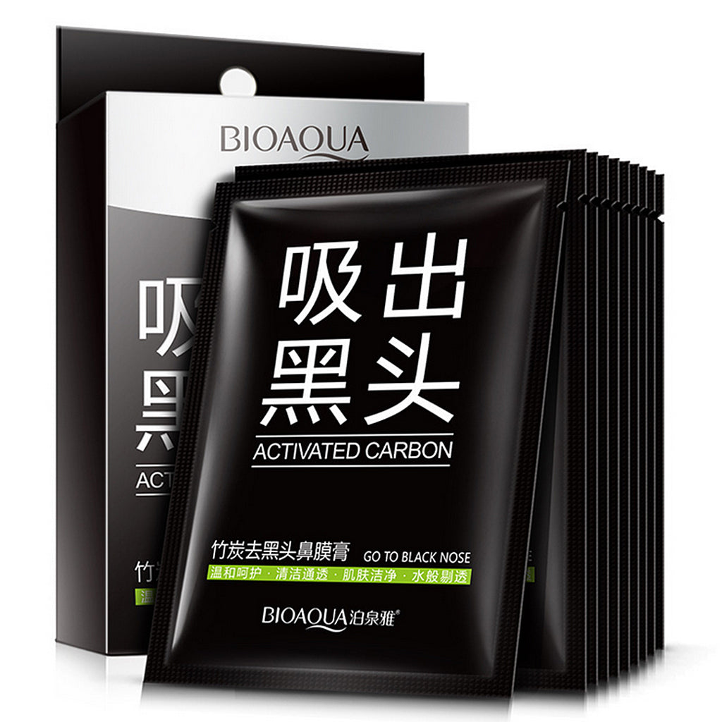 10pcs Natural Bamboo Charcoal Nose Blackhead Remover Strip T Zone Deep Cleansing Pore Stickers Black Mask
