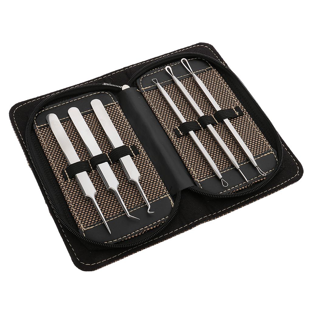 6 piece blackhead extractor tools which includes spoon extractor tips, loop extractor tips and a spade cleaner tip
