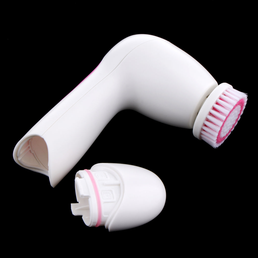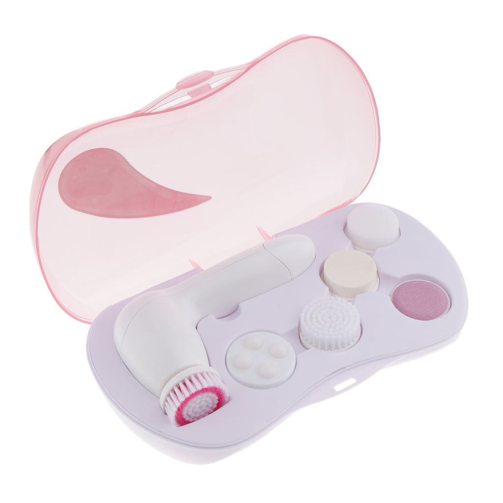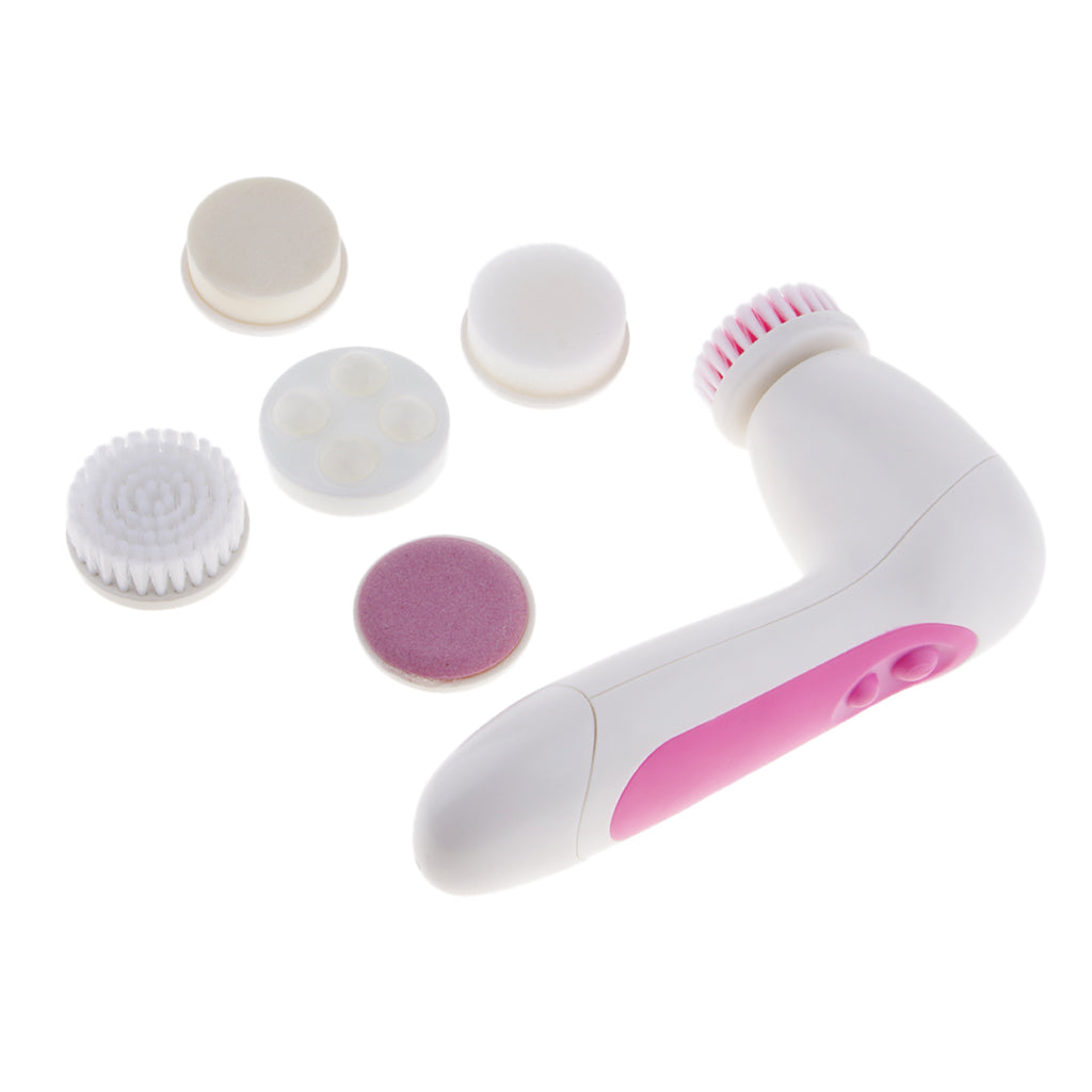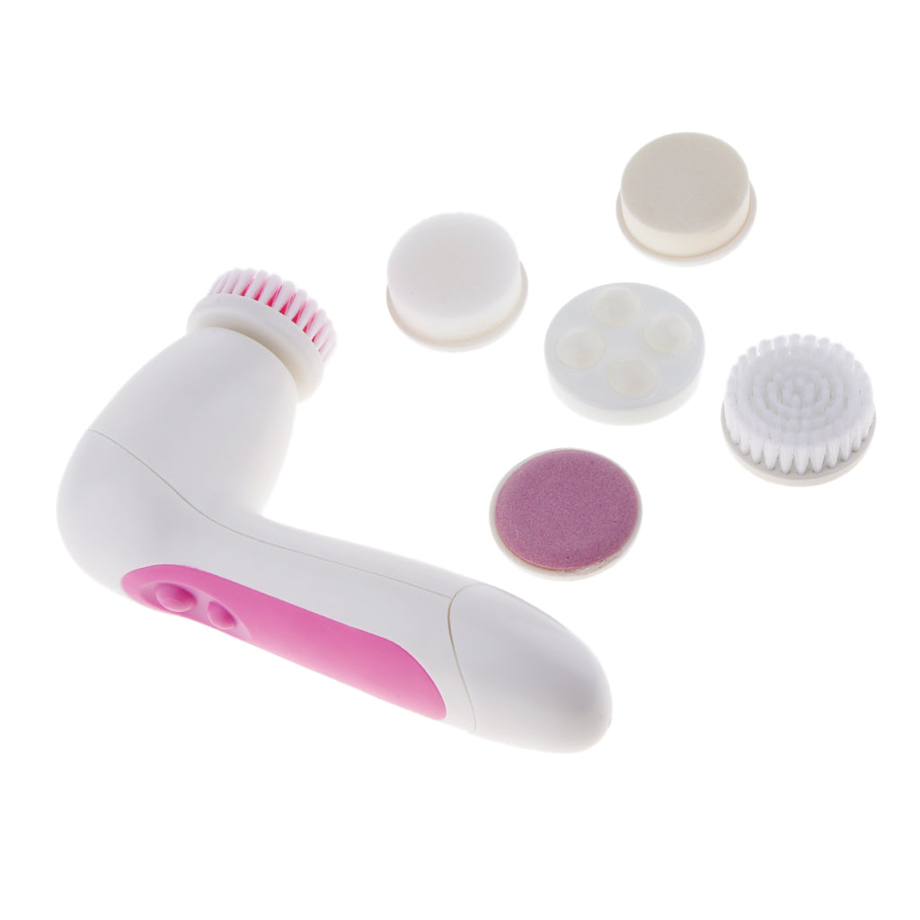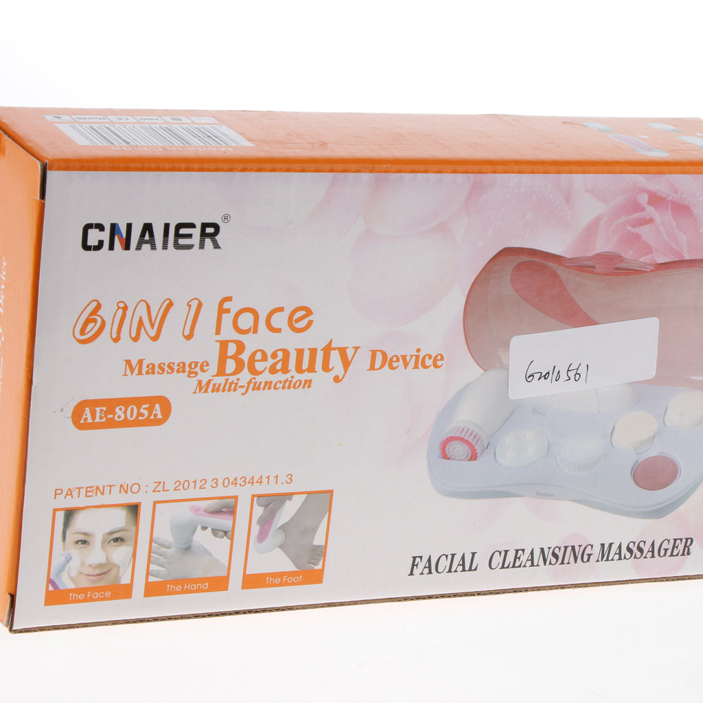 6 in 1 facial electric cleaning brush set comes with superfine brush, latex puff, sponge brush head and massager head.