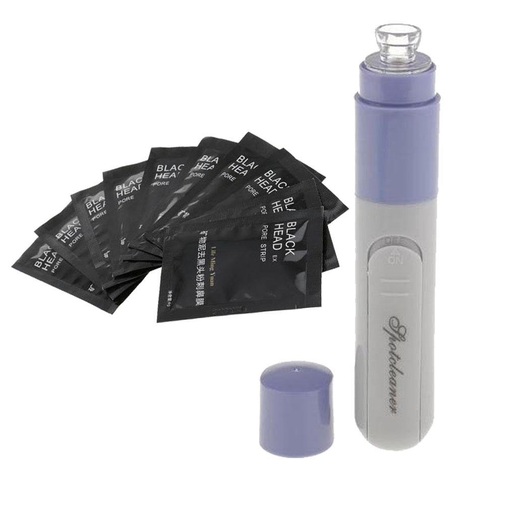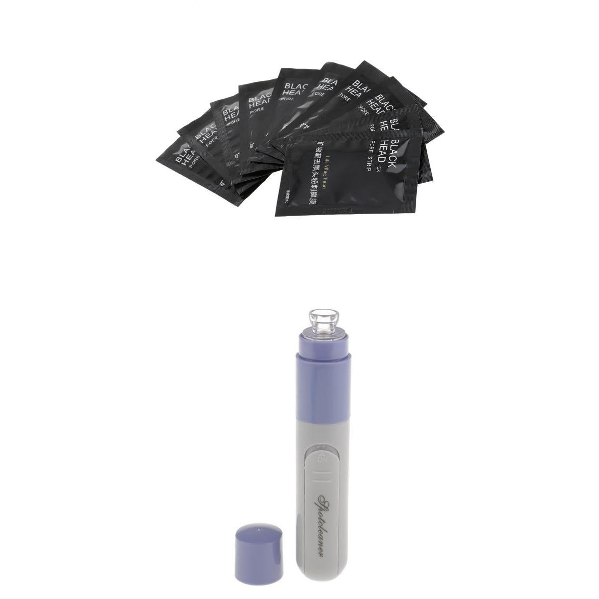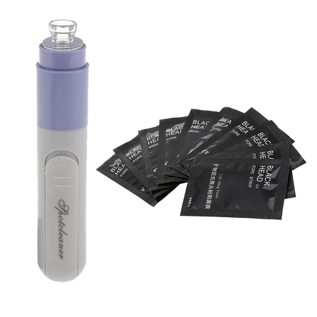Pro Blackhead Acne Zit Removal Kit - 10pcs Deep Pore Cleansing Purifying Black Mud Face Nose Mask Strips + Electric Face Skin Cleaning Tool Set