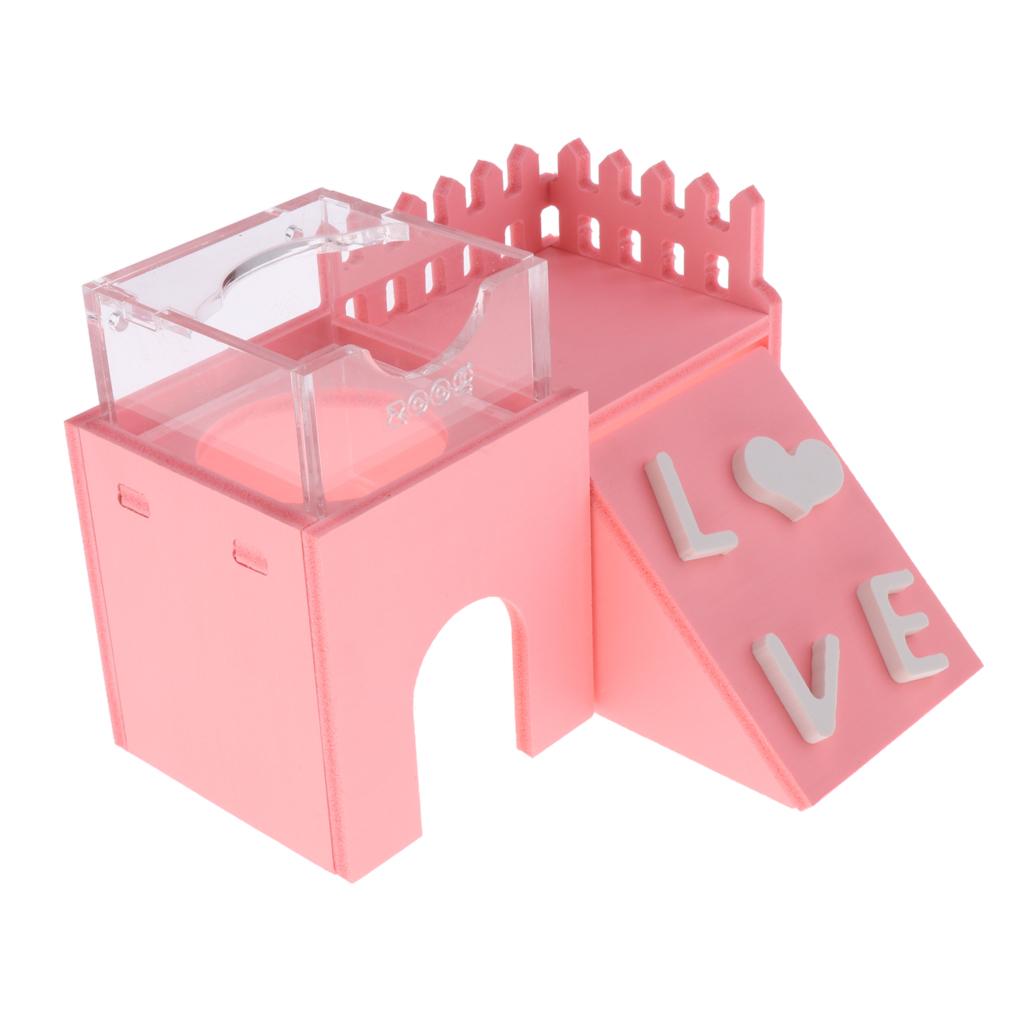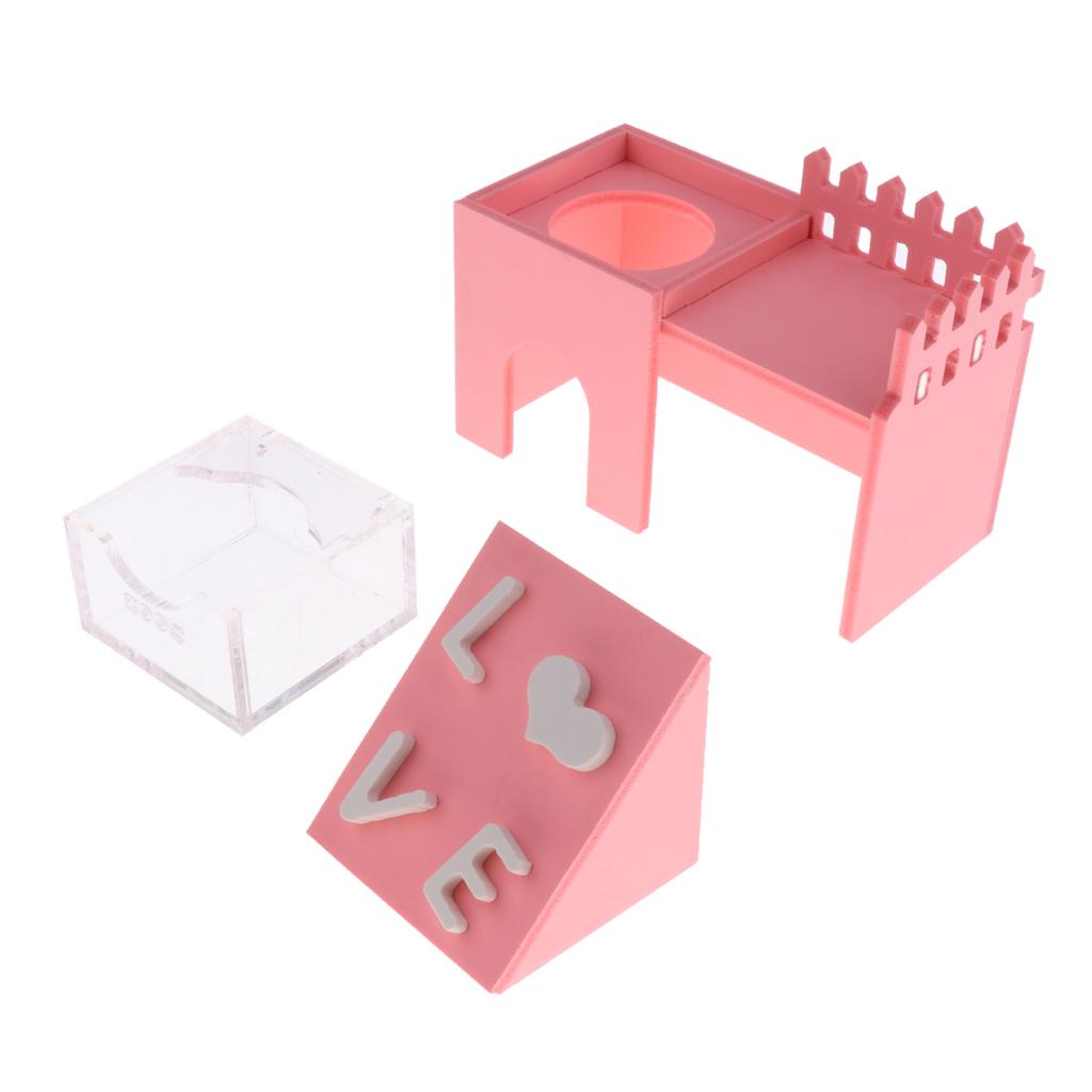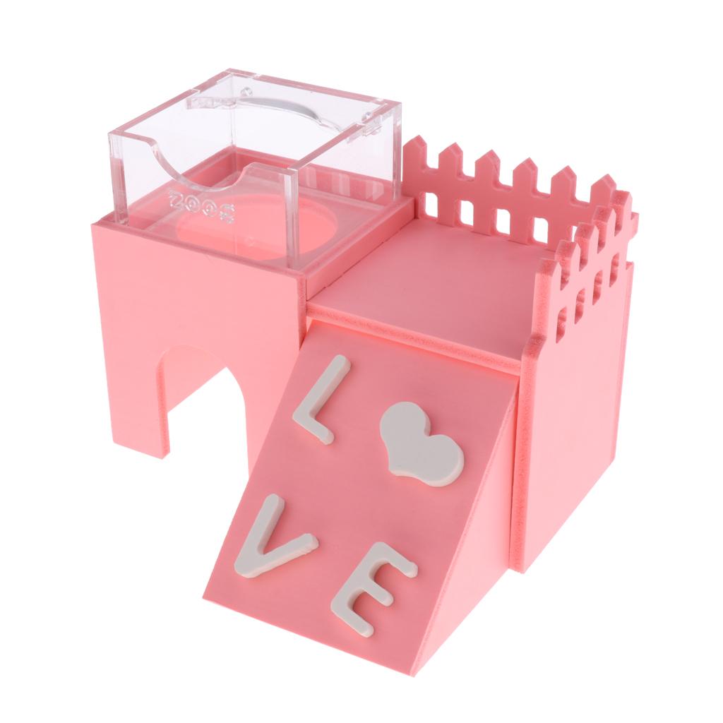 3 in 1 Hamster House Squirrel Sleeping Nest Bed Ladder Toy Feeder Bowl Pink