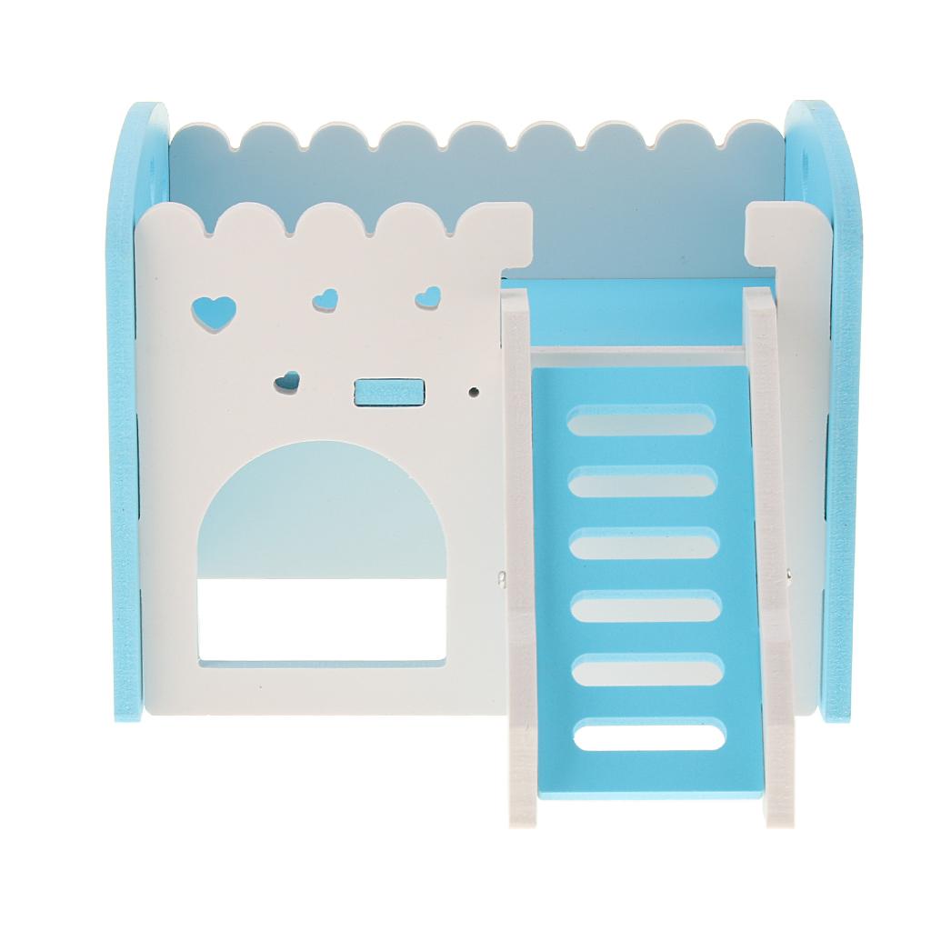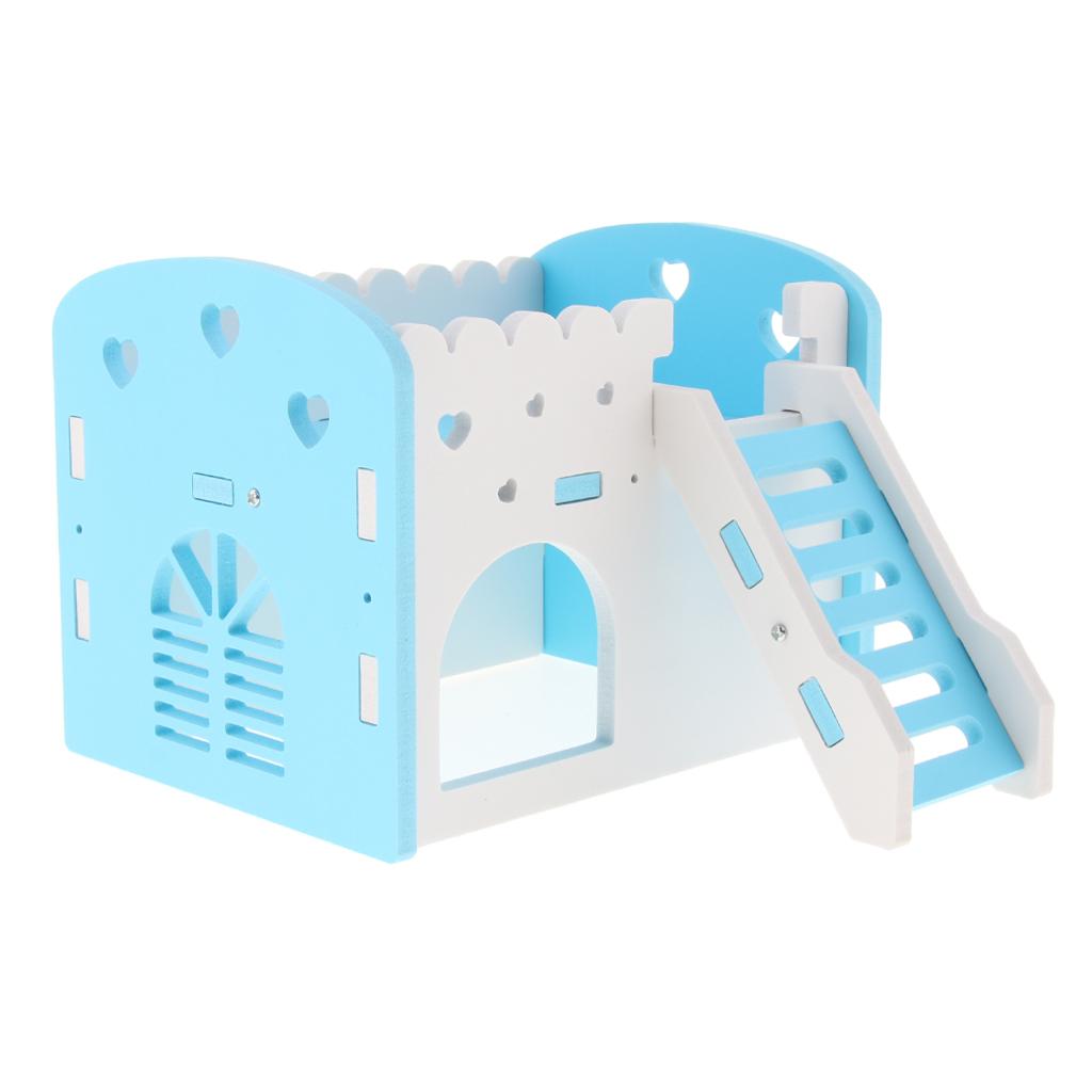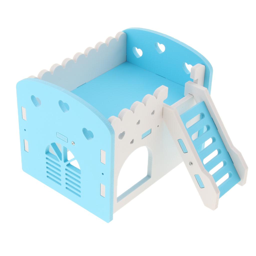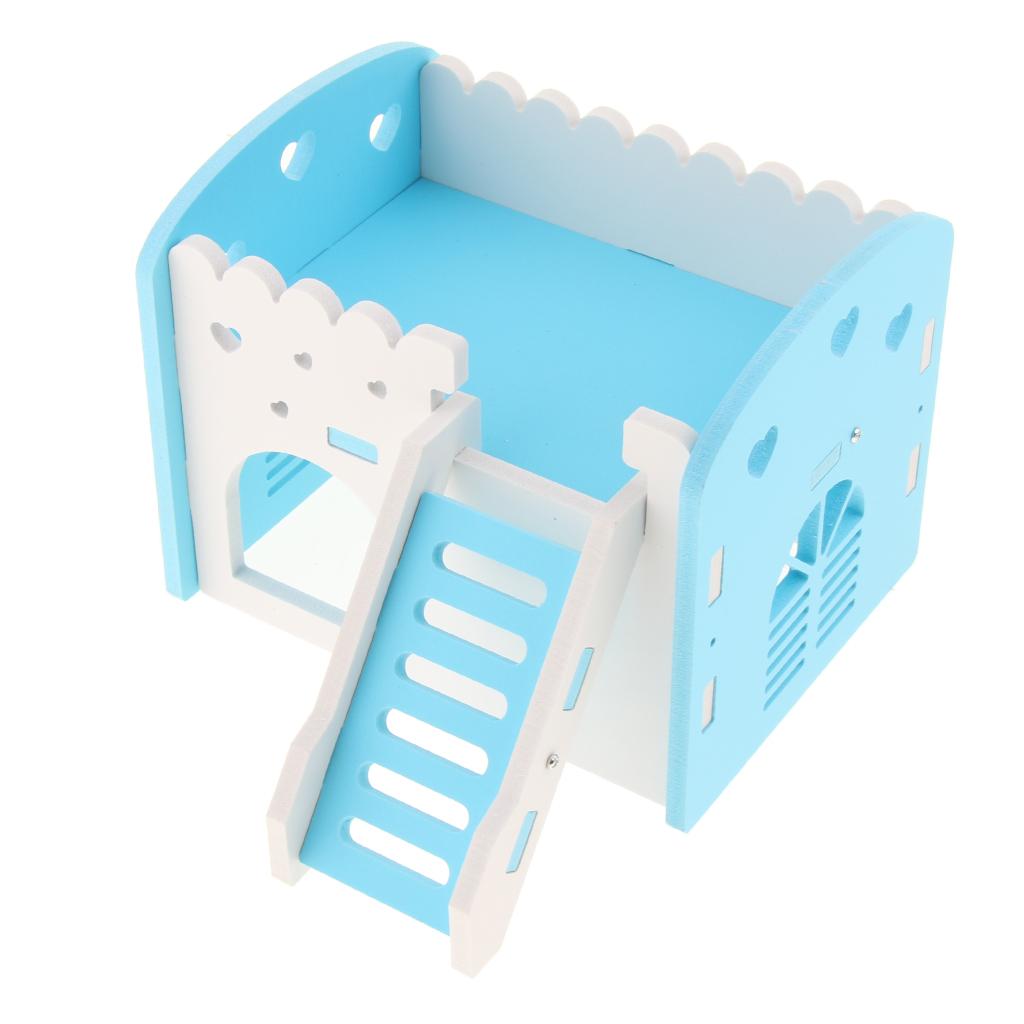 Small Animals Hamster House Cages Wooden Squirrel Villa Hut Play Toy blue