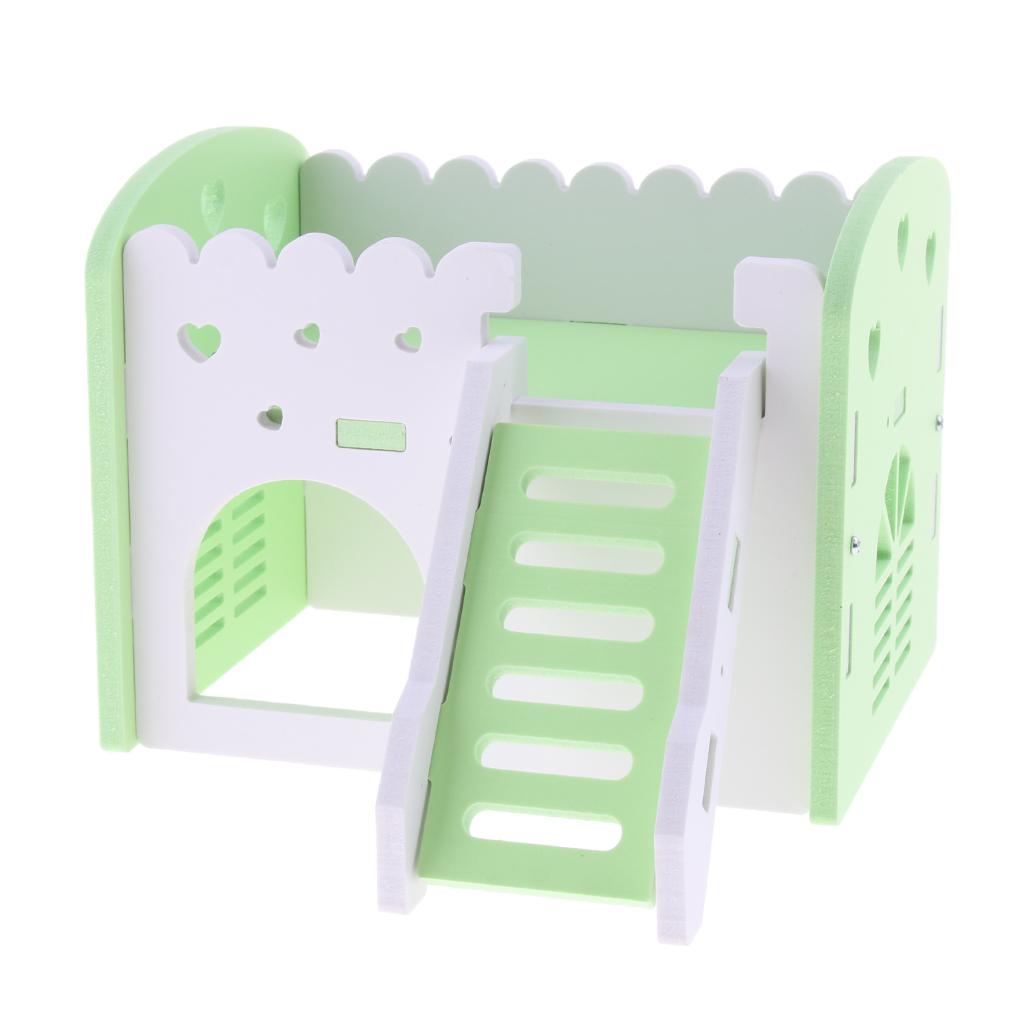 Small Animals Hamster House Cages Wooden Squirrel Villa Hut Play Toy green