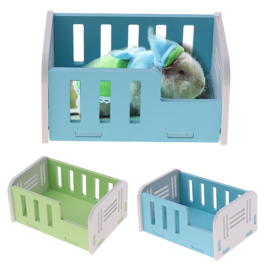 Wood Pet Hamster House Squirrel Bed Small Animals Habitat Cave Toy Blue