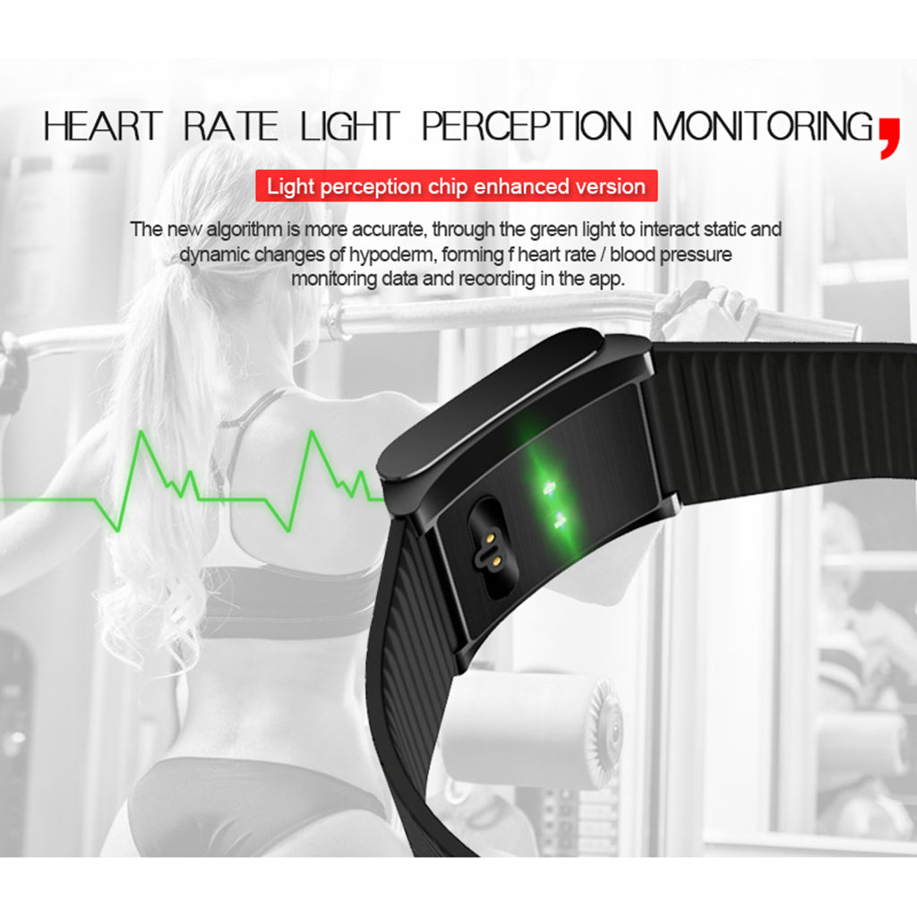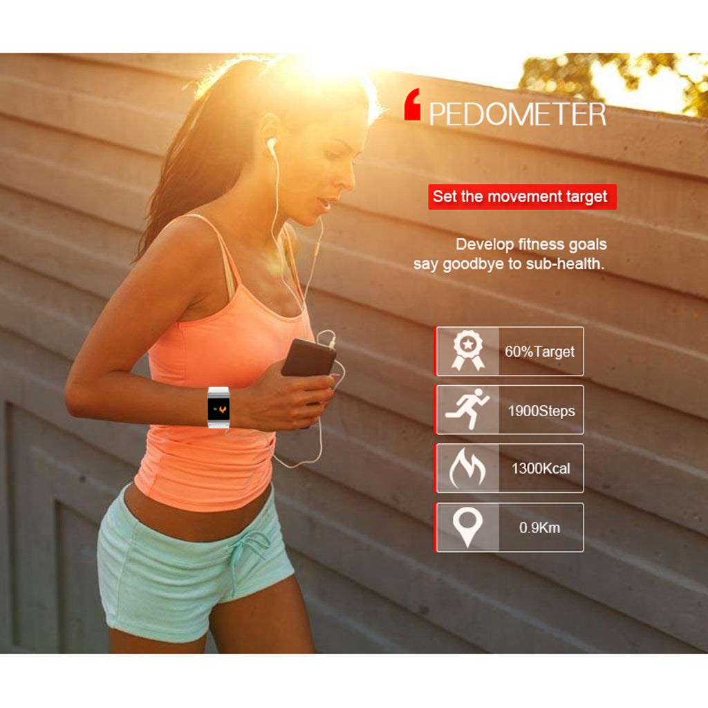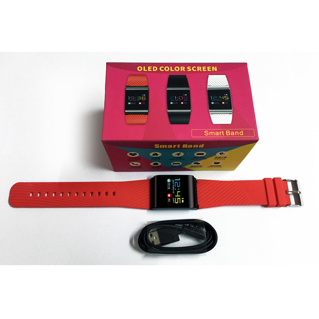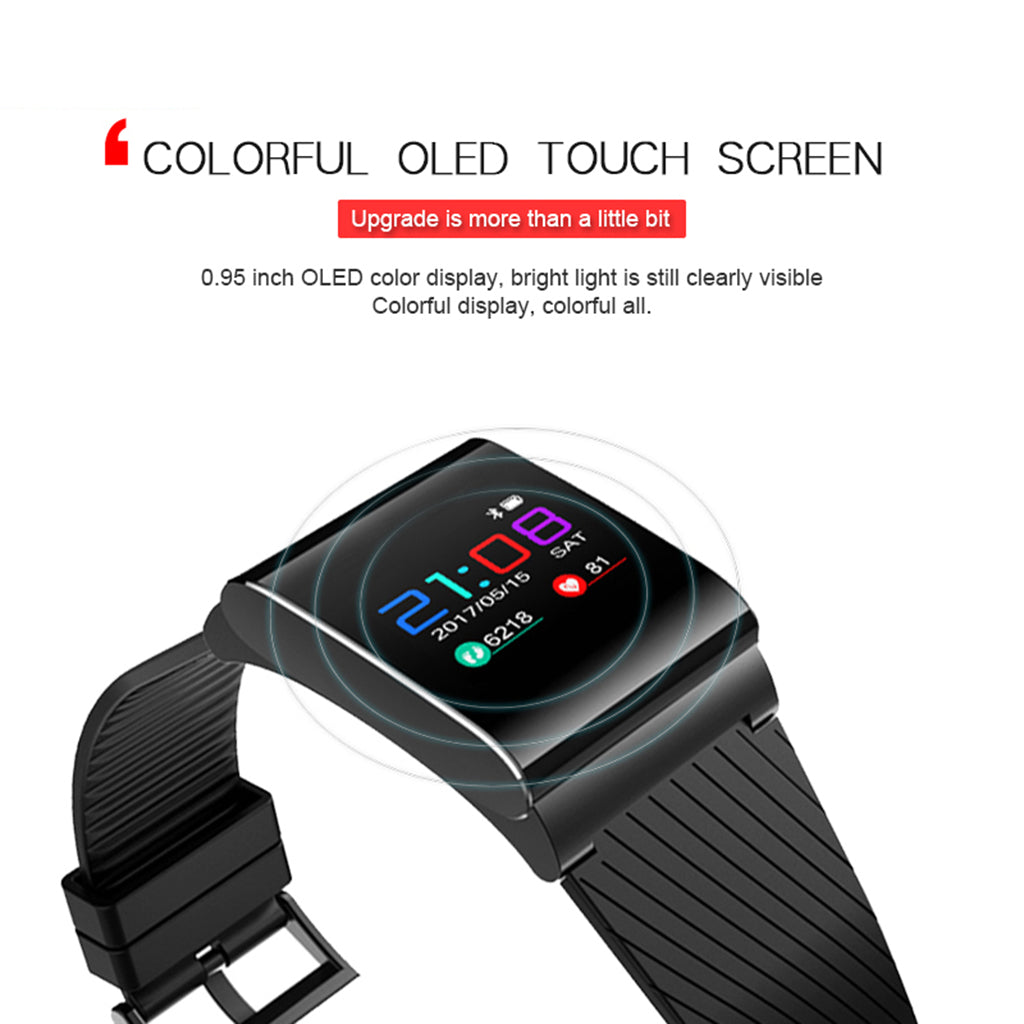 OLED color screen,can show you heart rate test, blood oxygen test, blood pressure monitoring, time display, step, calories, distance, heart rate, sleep time, switch machine display standard motor function.