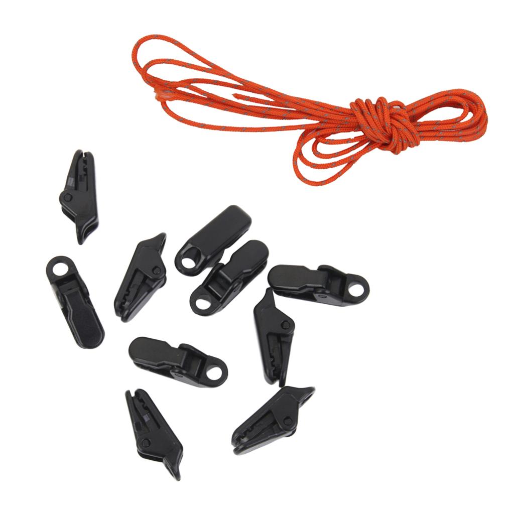 10 Pieces Tent Clamp + 20m Tent Guy Line Rope Set.