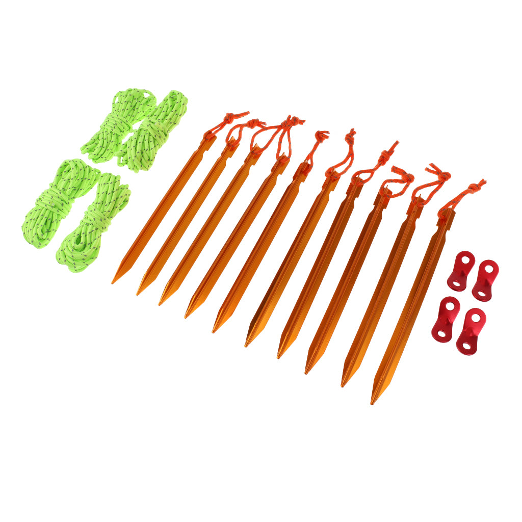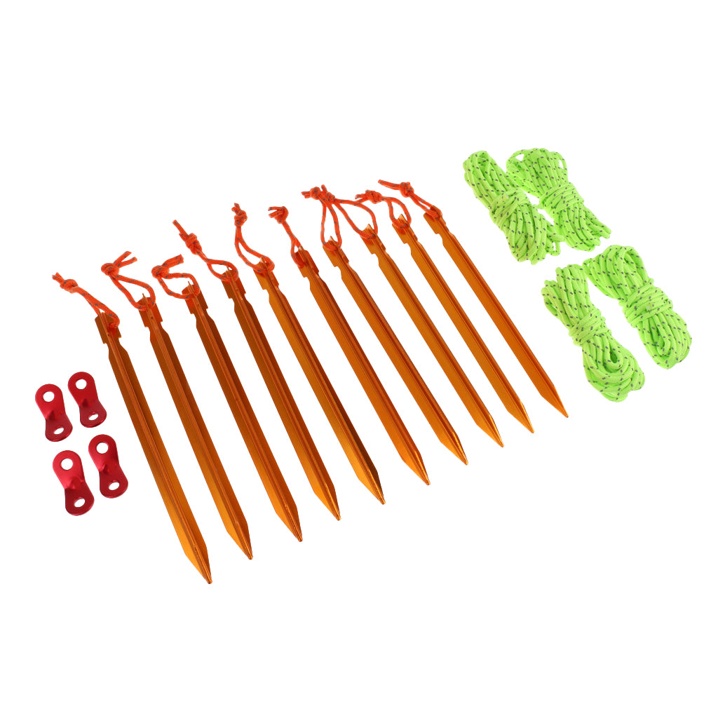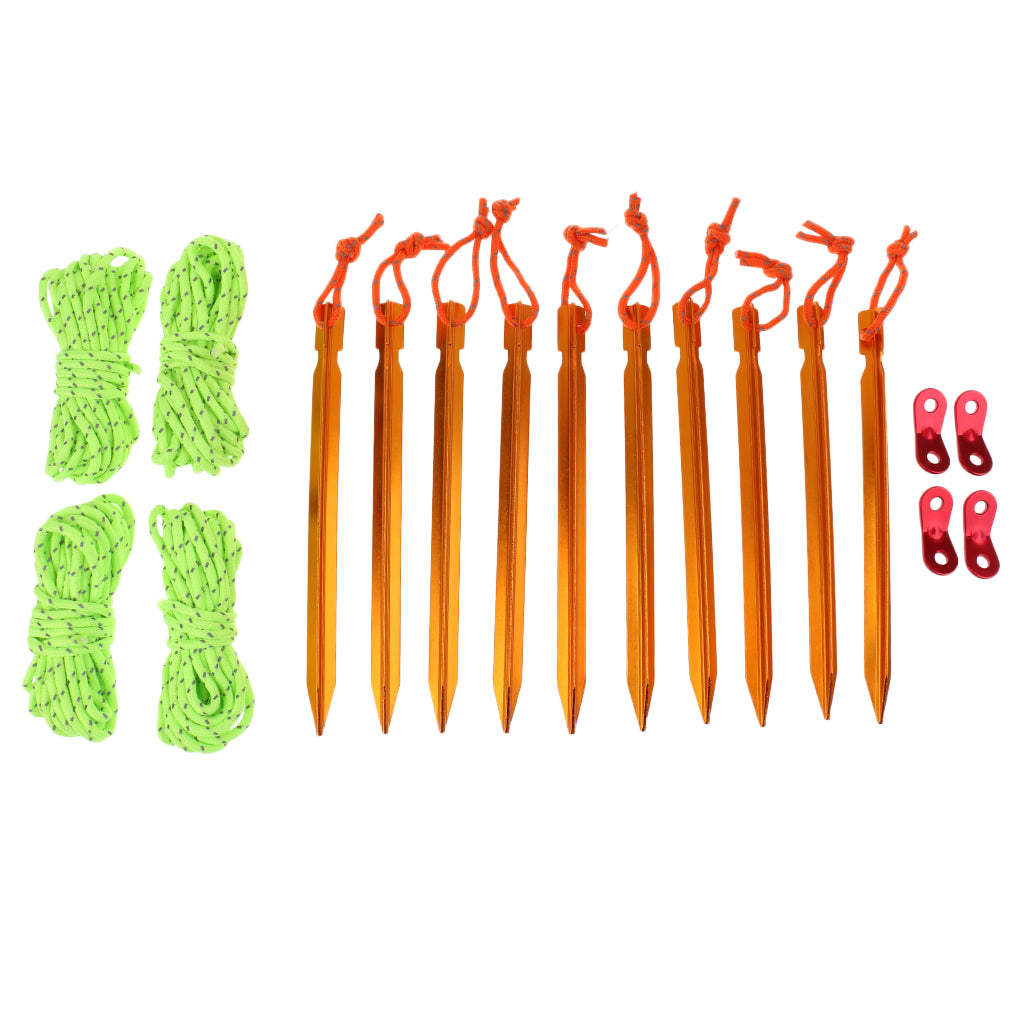 10 tent stakes and 4 guy lines fit into the included carry pouch, which is perfect for 1 to 2 tents on a hiking, backpacking, or camping trip.