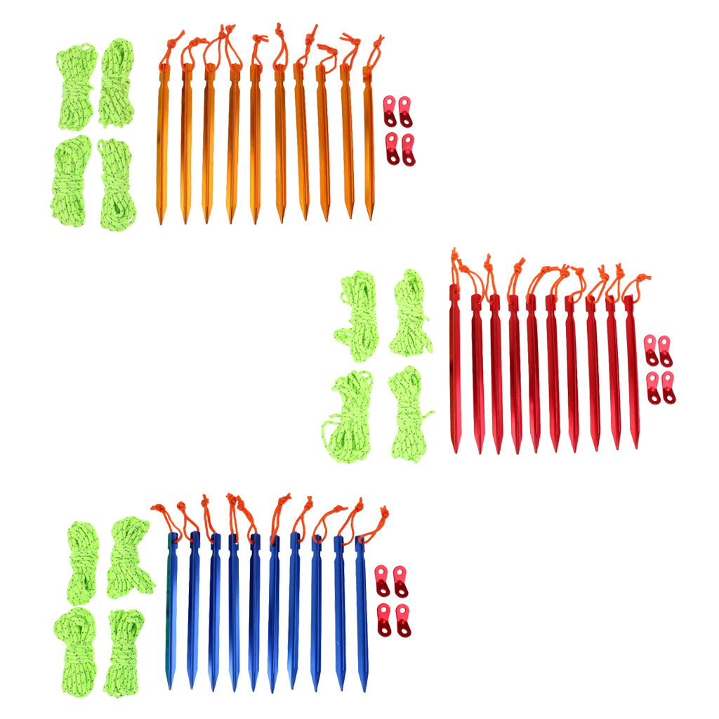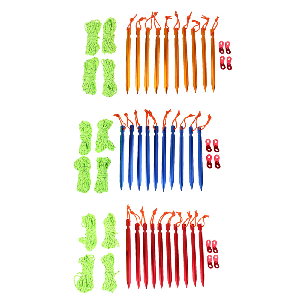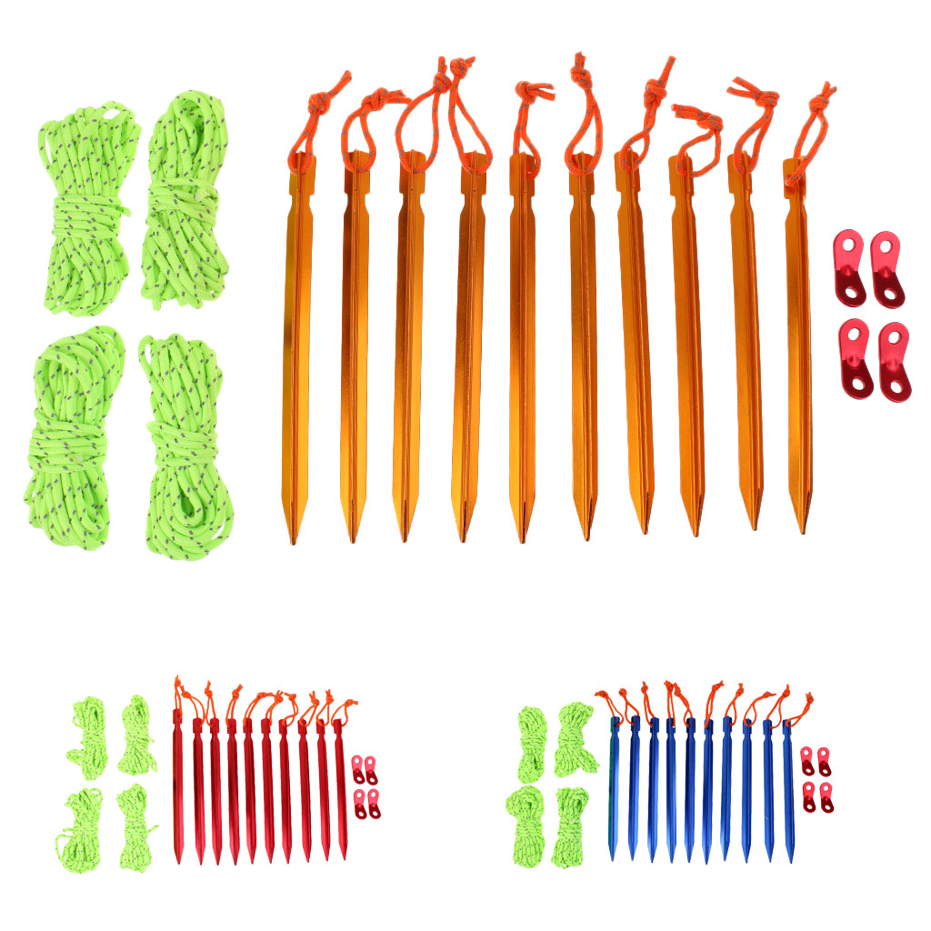 10 tent stakes and 4 guy lines fit into the included carry pouch, which is perfect for 1 to 2 tents on a hiking, backpacking, or camping trip.