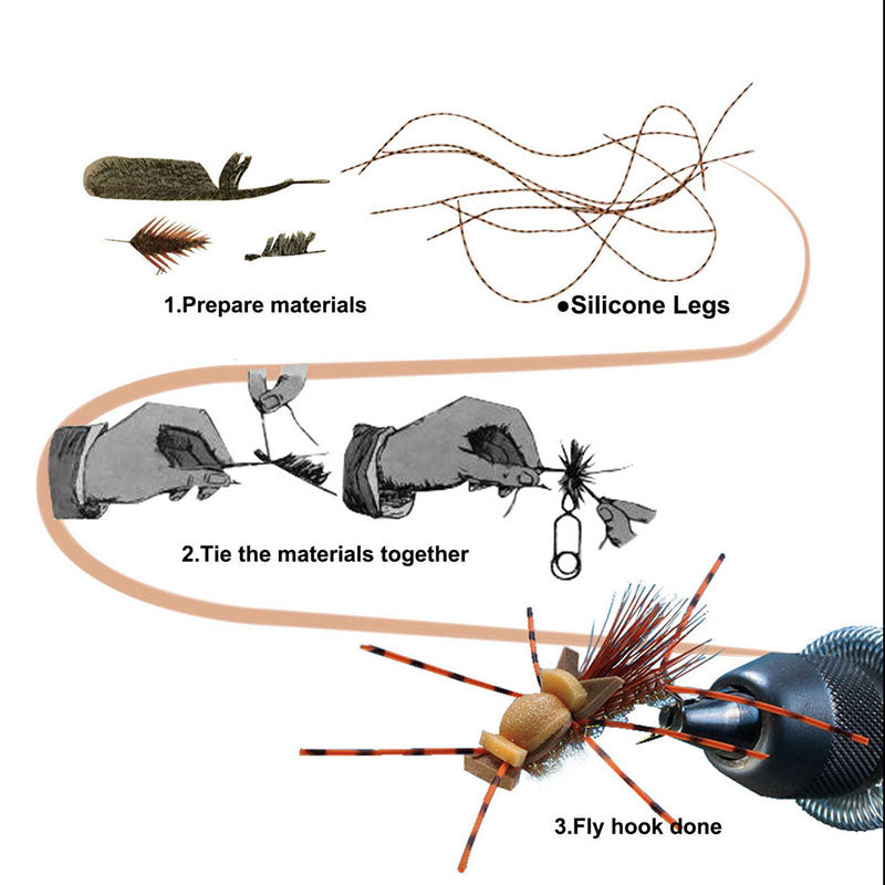 Flutter legs work on small dries, nymphs and mini-streamer patterns. Silicone so they don't get brittle in the sun like rubber legs.